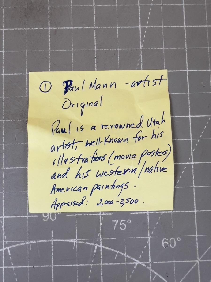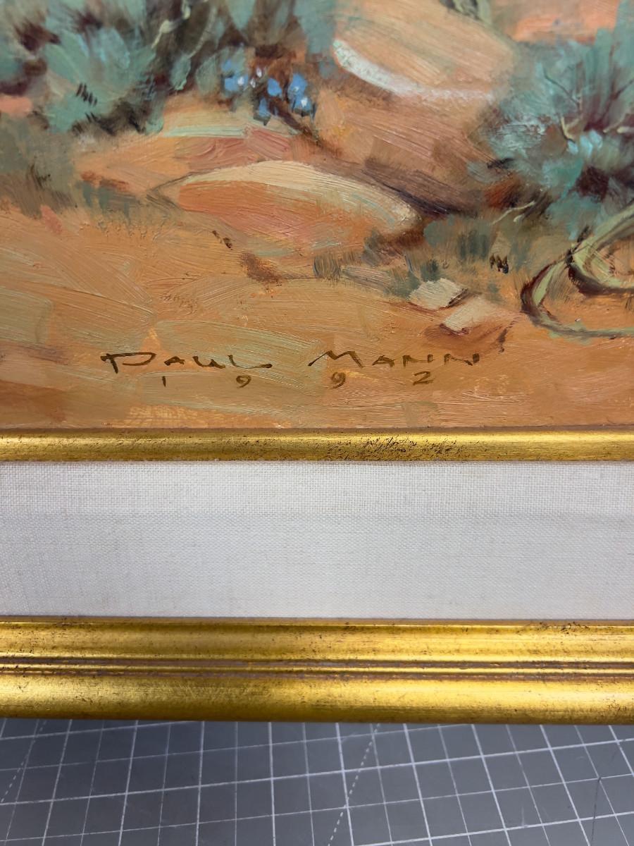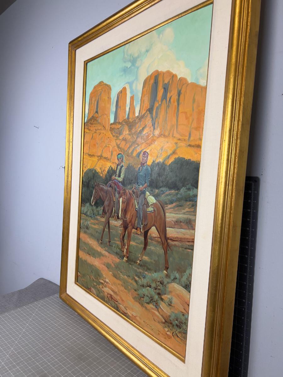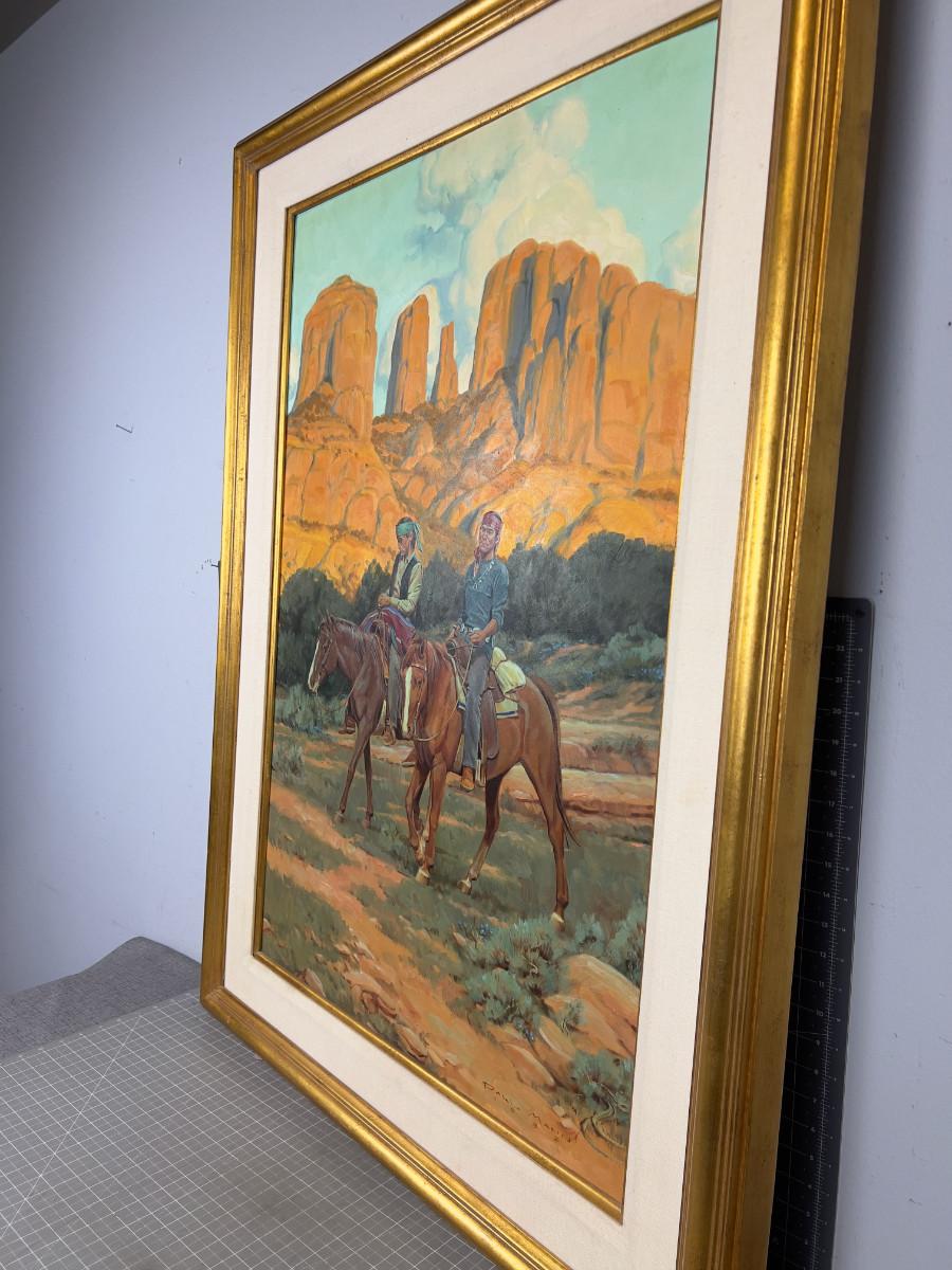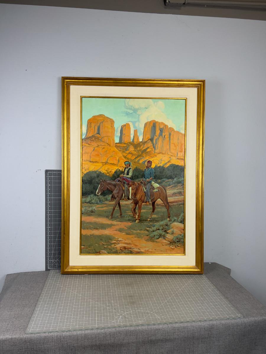 Original Oil Painting Southern Utah Navajo's on Horseback by Paul Mann. Oil on board 24" by 36". Excellent condition nicely framed. Check out the artists website https://www.paulmannartist.com/