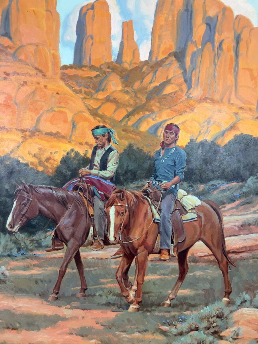 Original Oil Painting Southern Utah Navajo's on Horseback by Paul Mann
