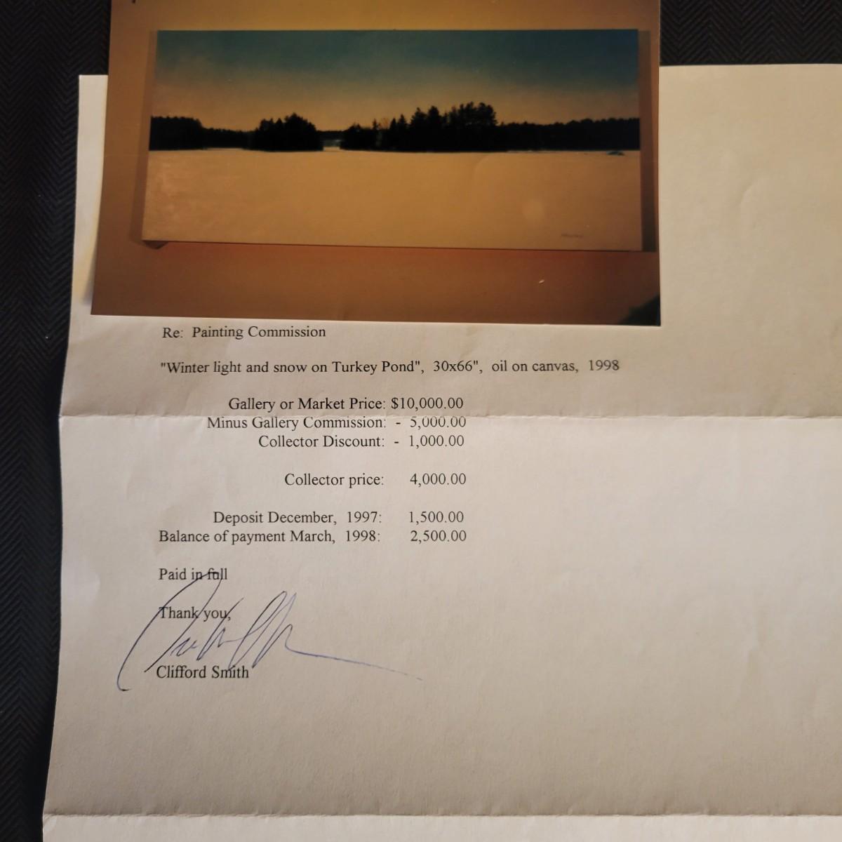 Original Oil "Winter Light and Snow on Turkey Pond" by Clifford Smith (LR-DW)