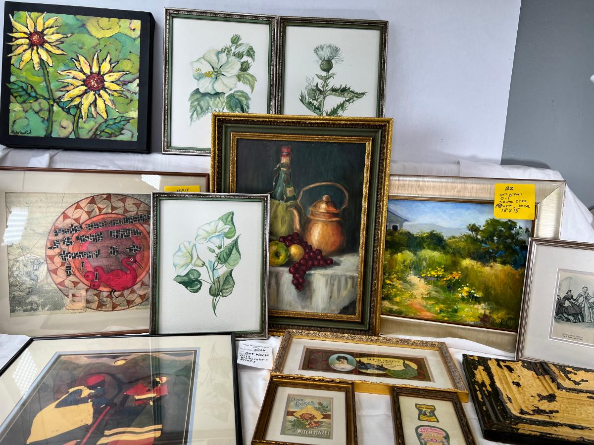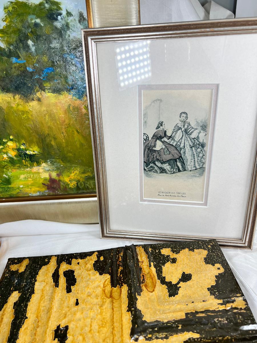 Otitingal paintings, signed prints, vintage reporcution magazine graphics.