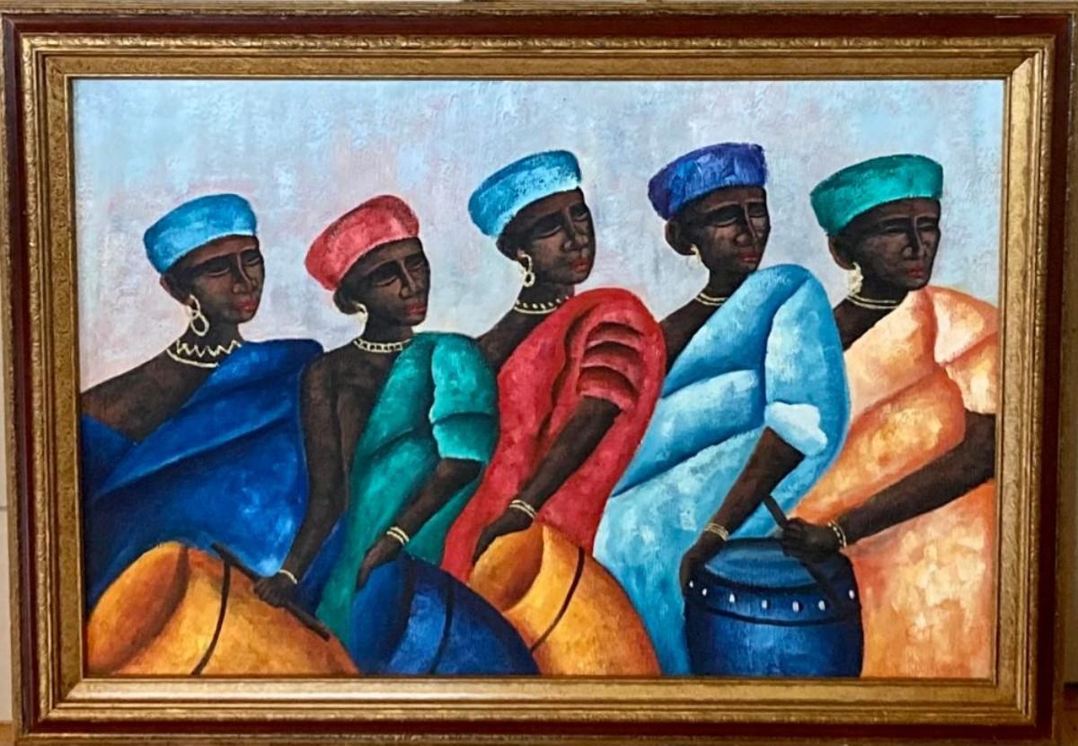 Measures 34" high x 36" wide. Signed Croft, possibly Nadirah Croft.