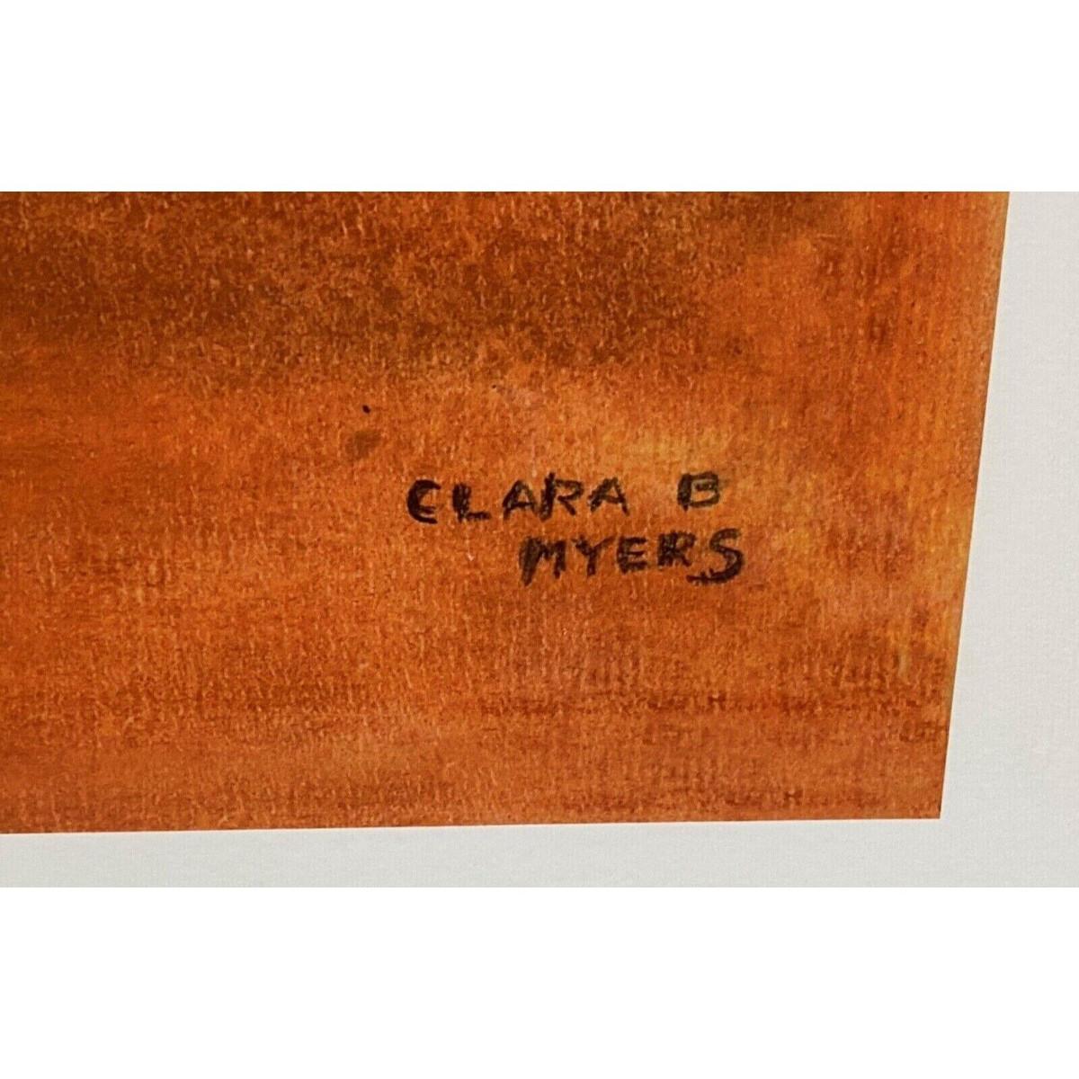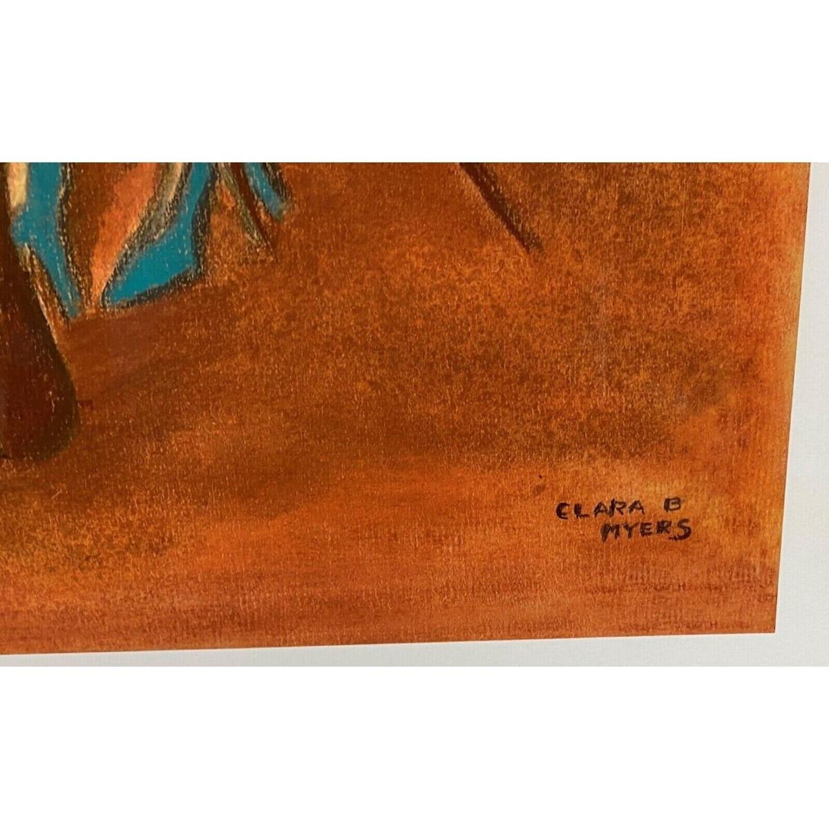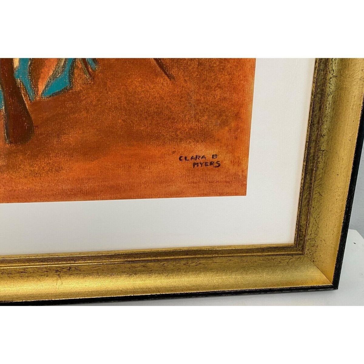 In excellent condition here is a colorful caricature signed by Clara B. Myers a fairly large piece, framed 30.5 x 15.5"...The original image is 23.75 z 18.5"...Pastels or gouache on canvas...No information found on the artist?