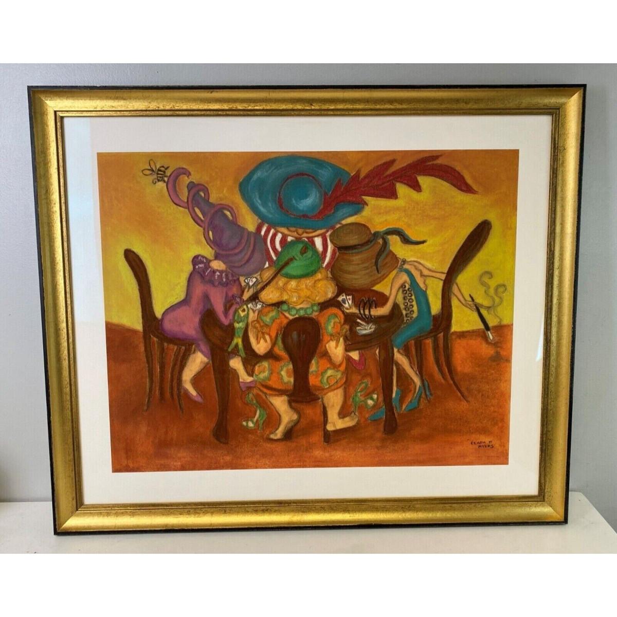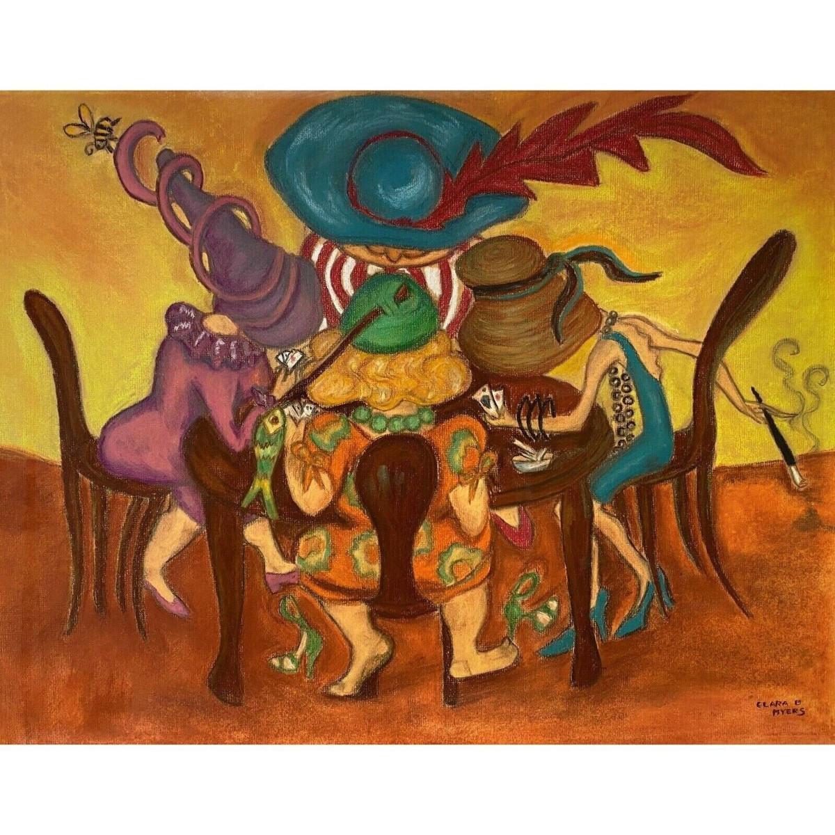 original painting CARICATURE CARD GAME SIGNED CLARA B MYERS