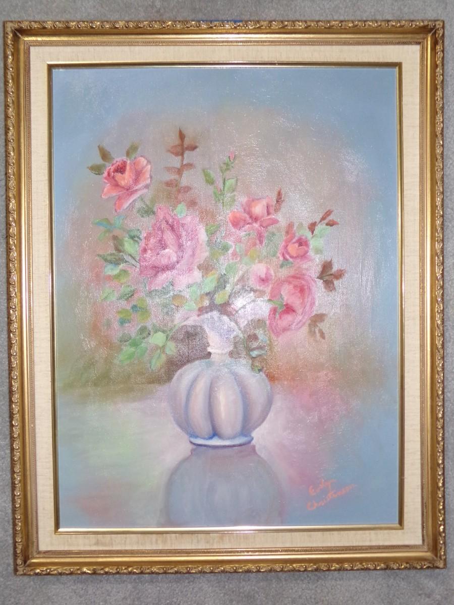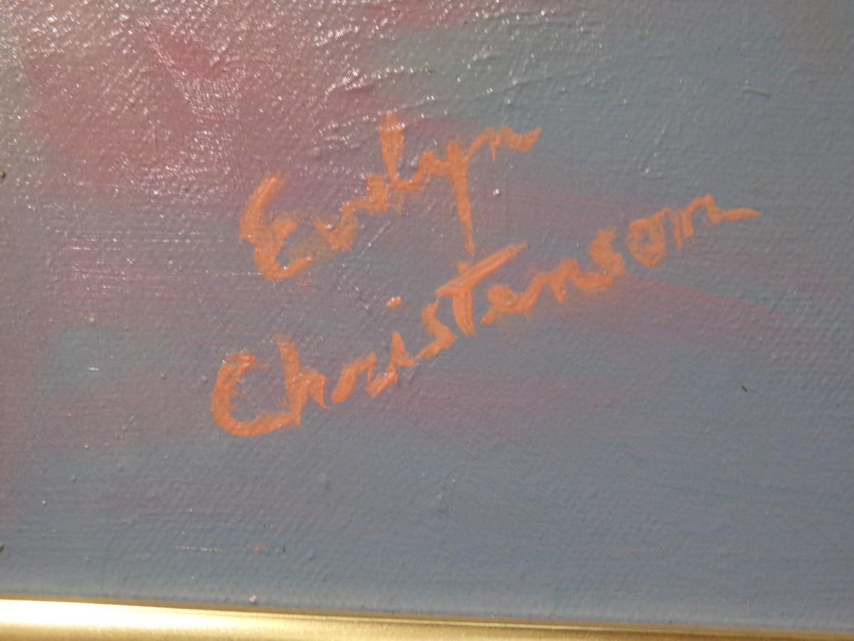 Original painting on canvas, custom gold framed, signed "Evelyn Christenson", about 28"x22" over all