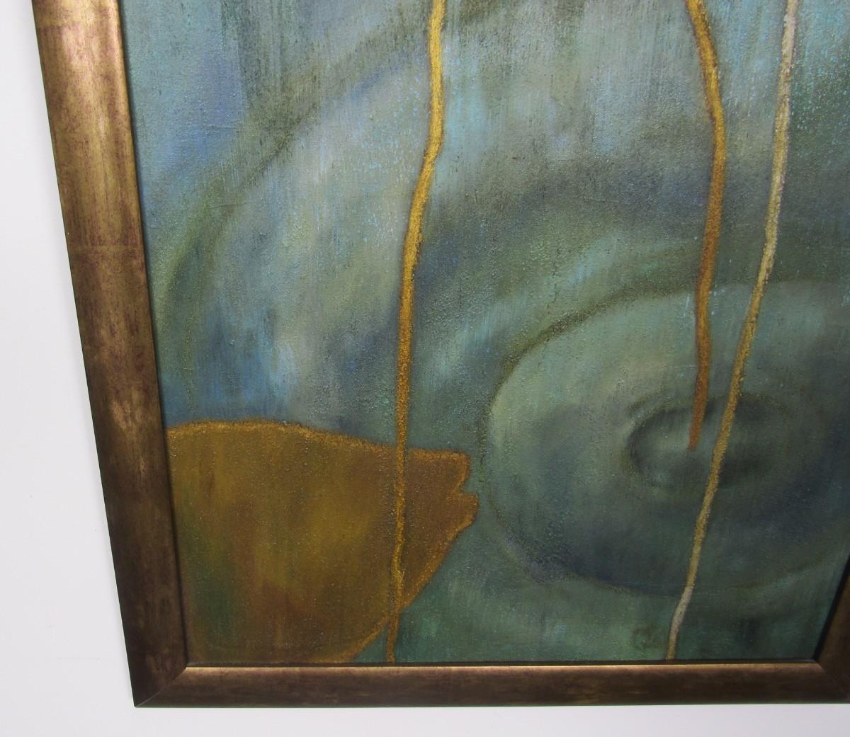 Original painting on canvas, signed by the artist on the back. Titled "Big Eye Misses the Moment". Excellent condition. Custom framed. 28" x 41". Canvas: 24" x 36".