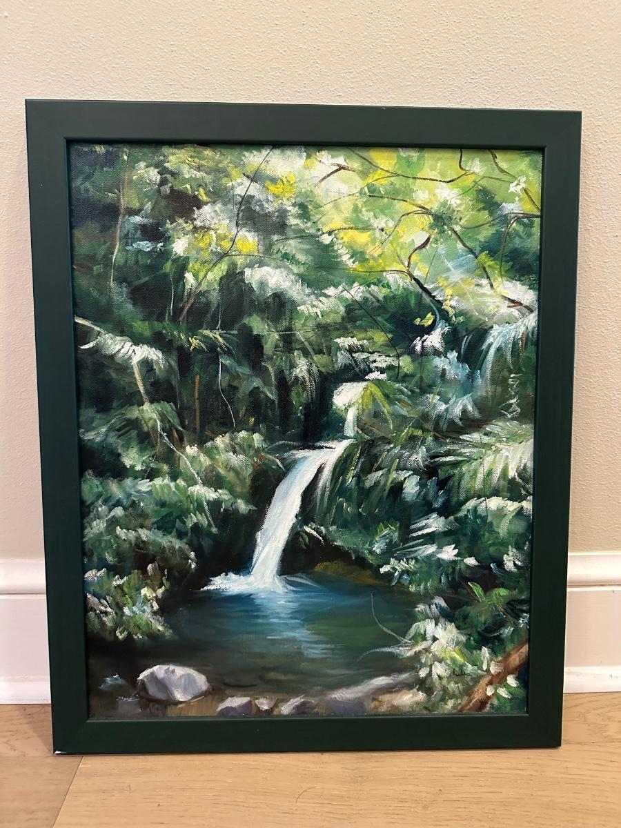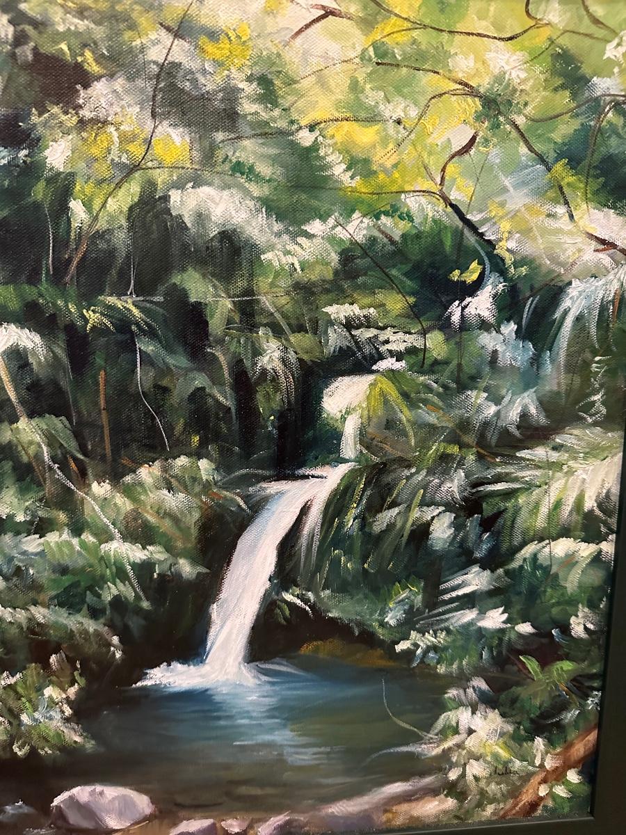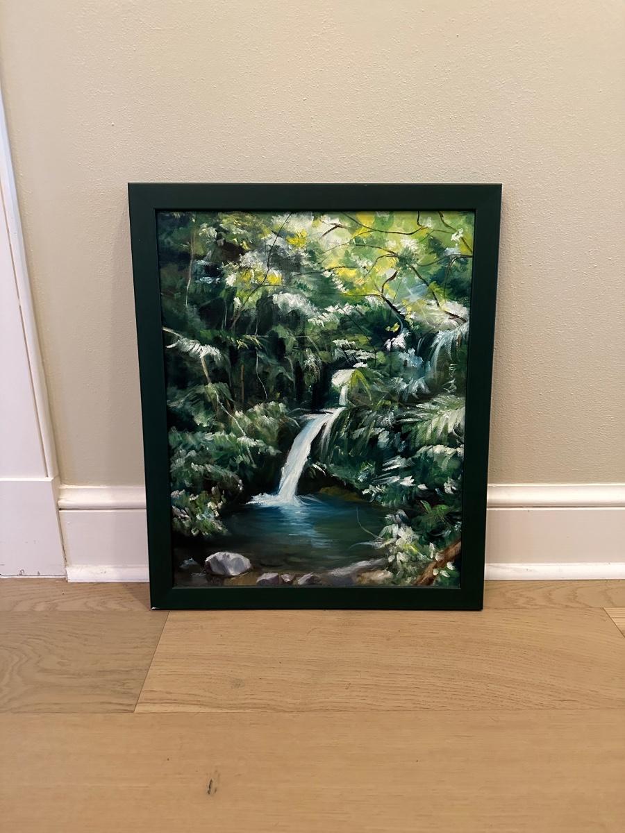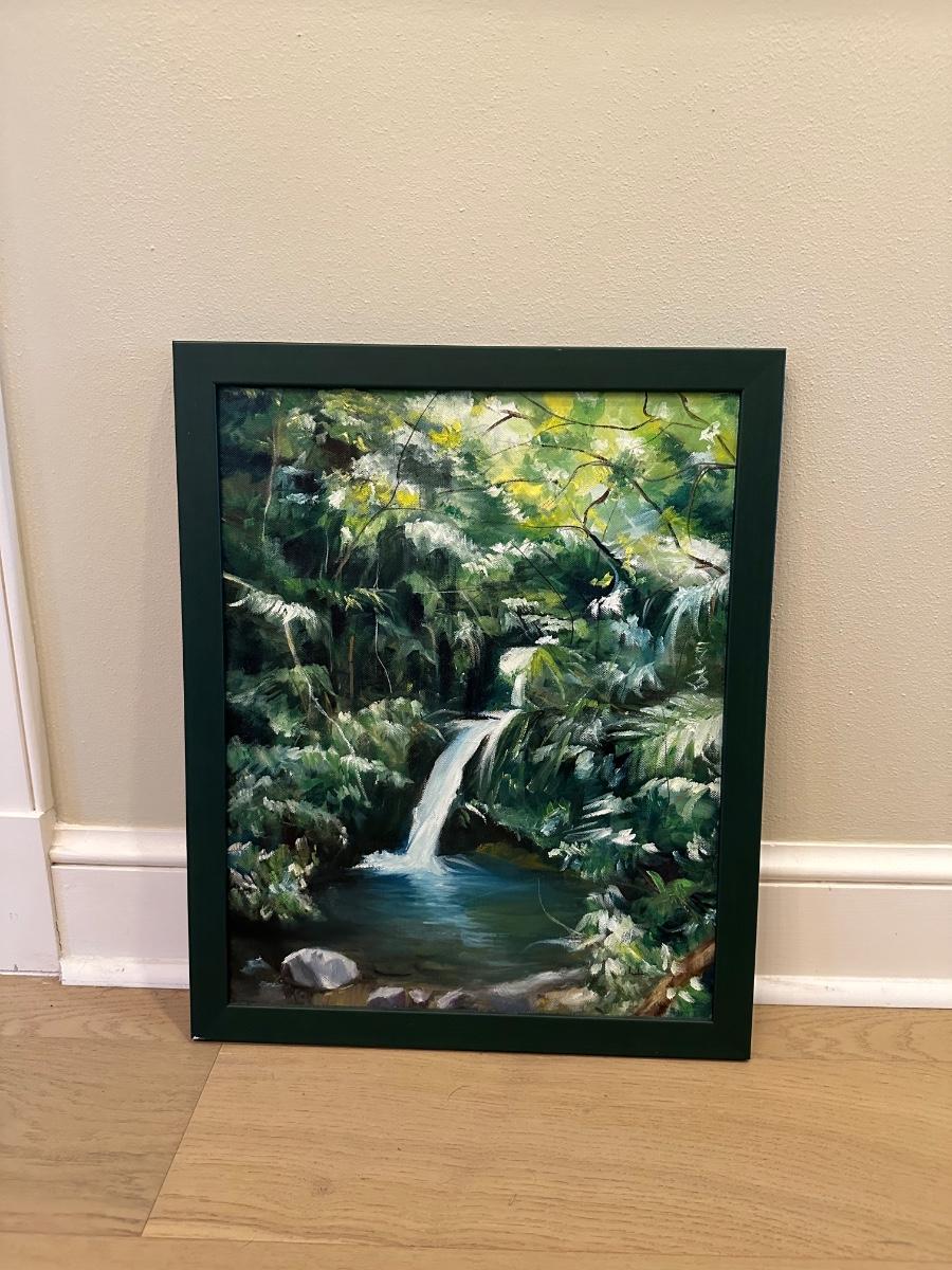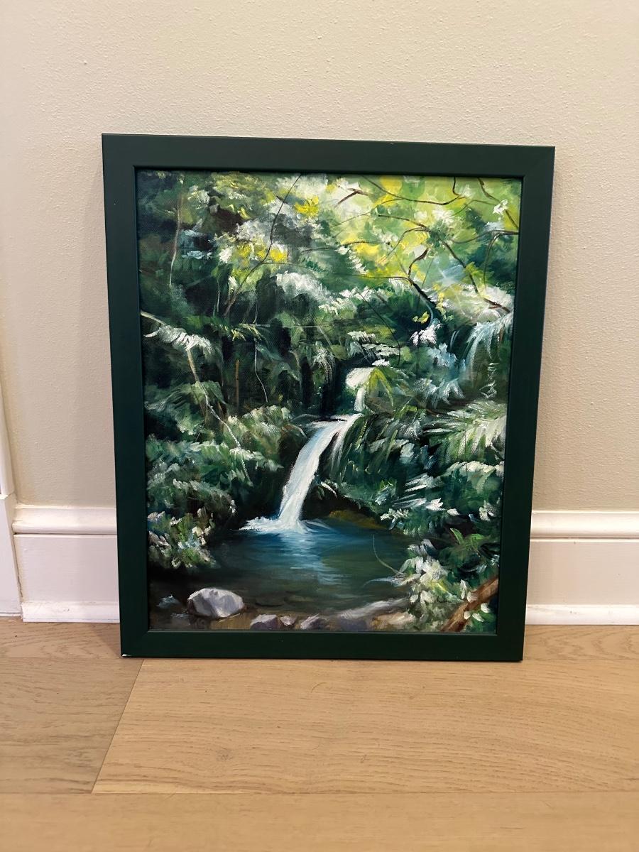 Original Framed Painting on Canvas of Waterfall Scene by Julia