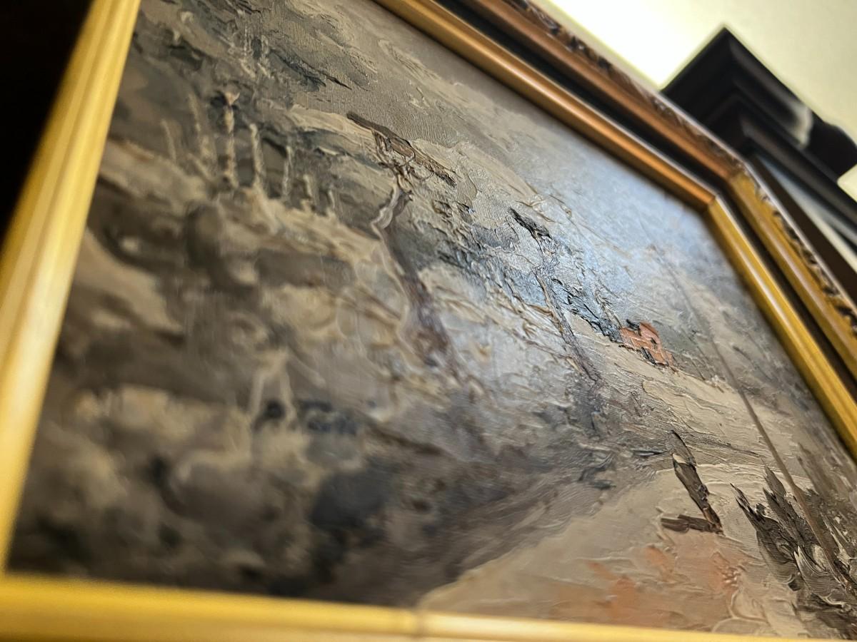 Original Signed Framed Painting Expressionist Scene of Figure Walking Down Road