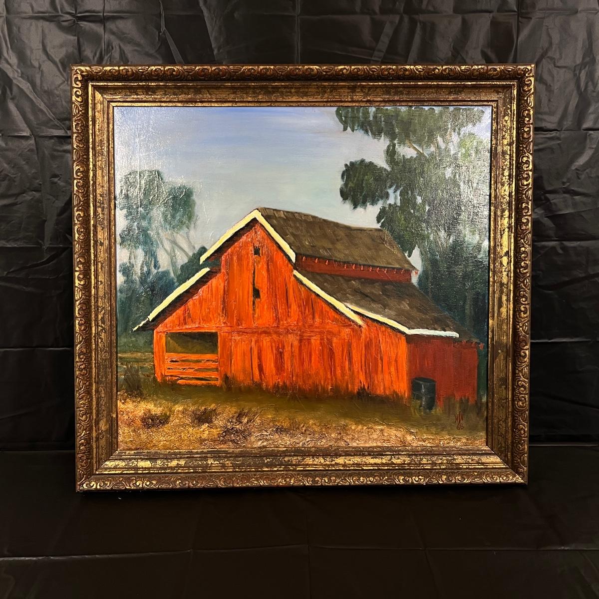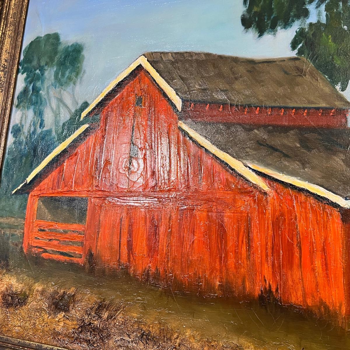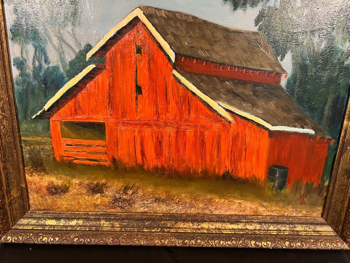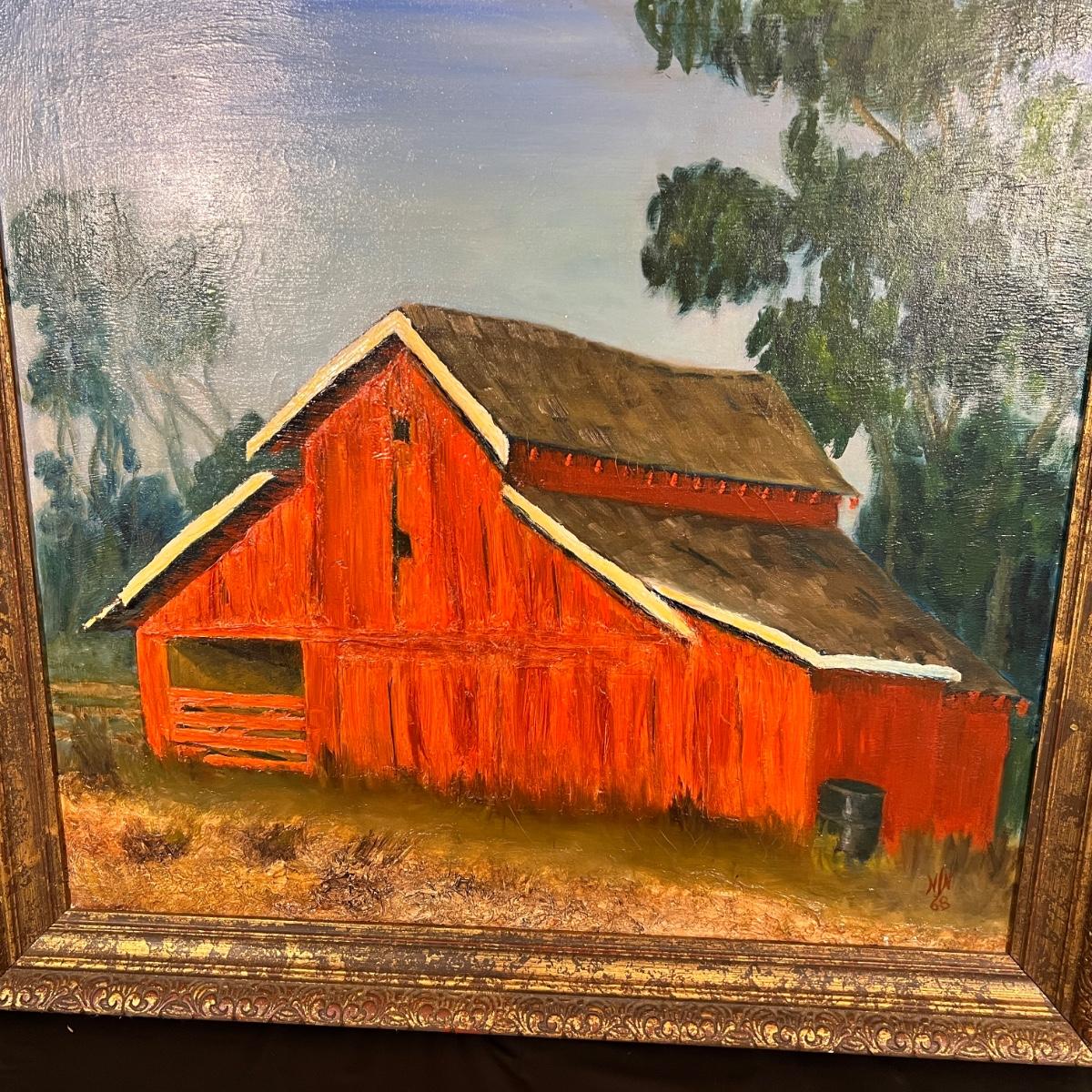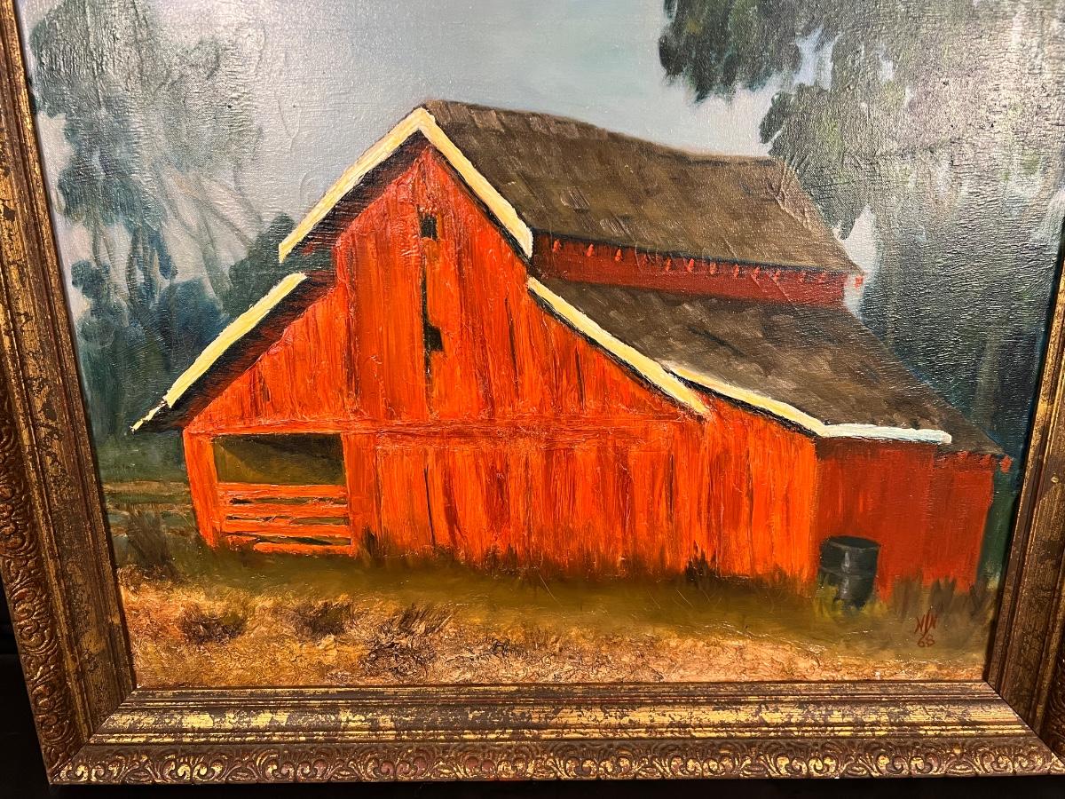 Original Signed Midcentury Painting of Red Barn