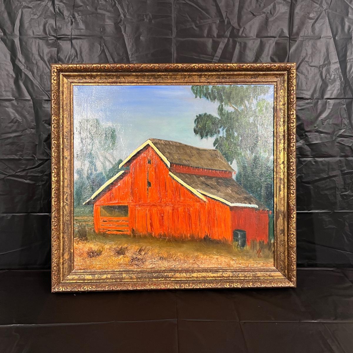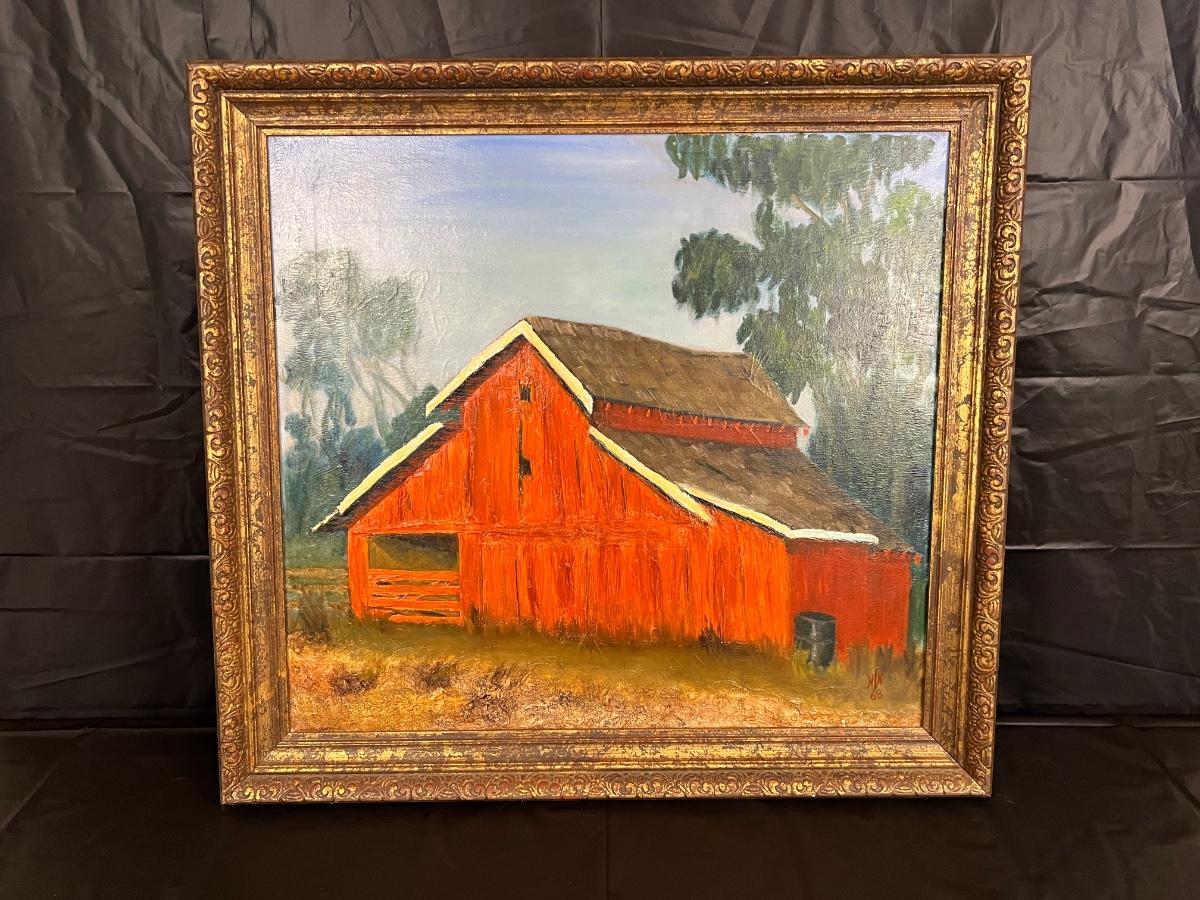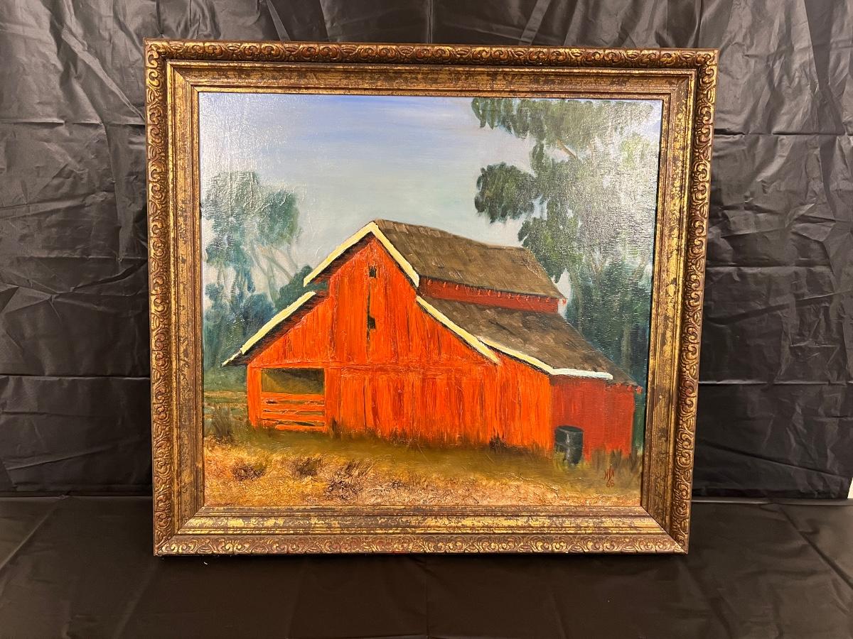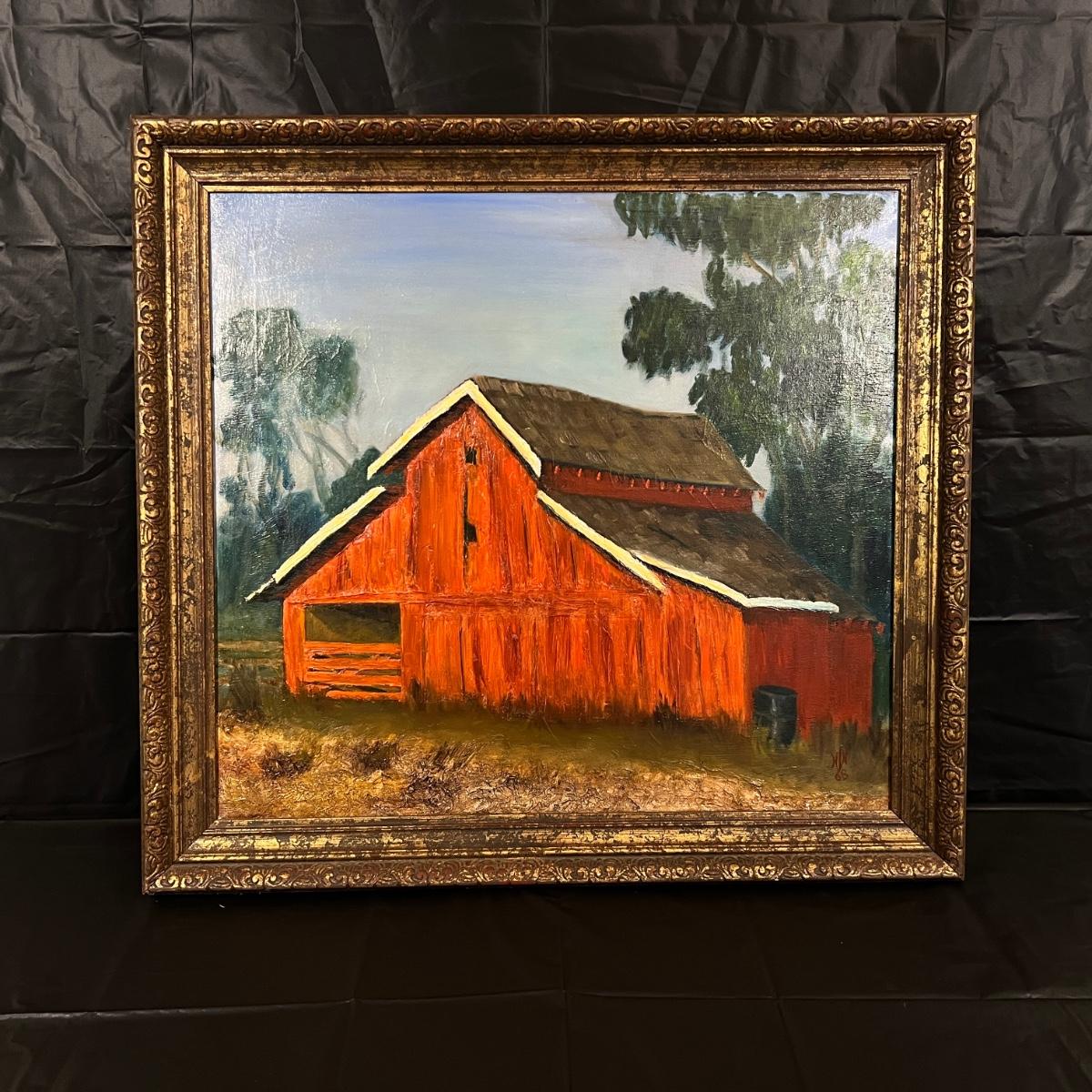 Original Signed Midcentury Painting of Red Barn