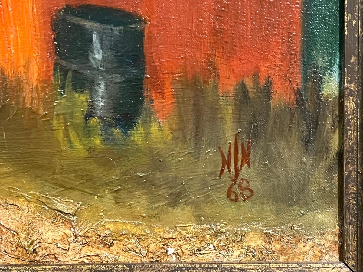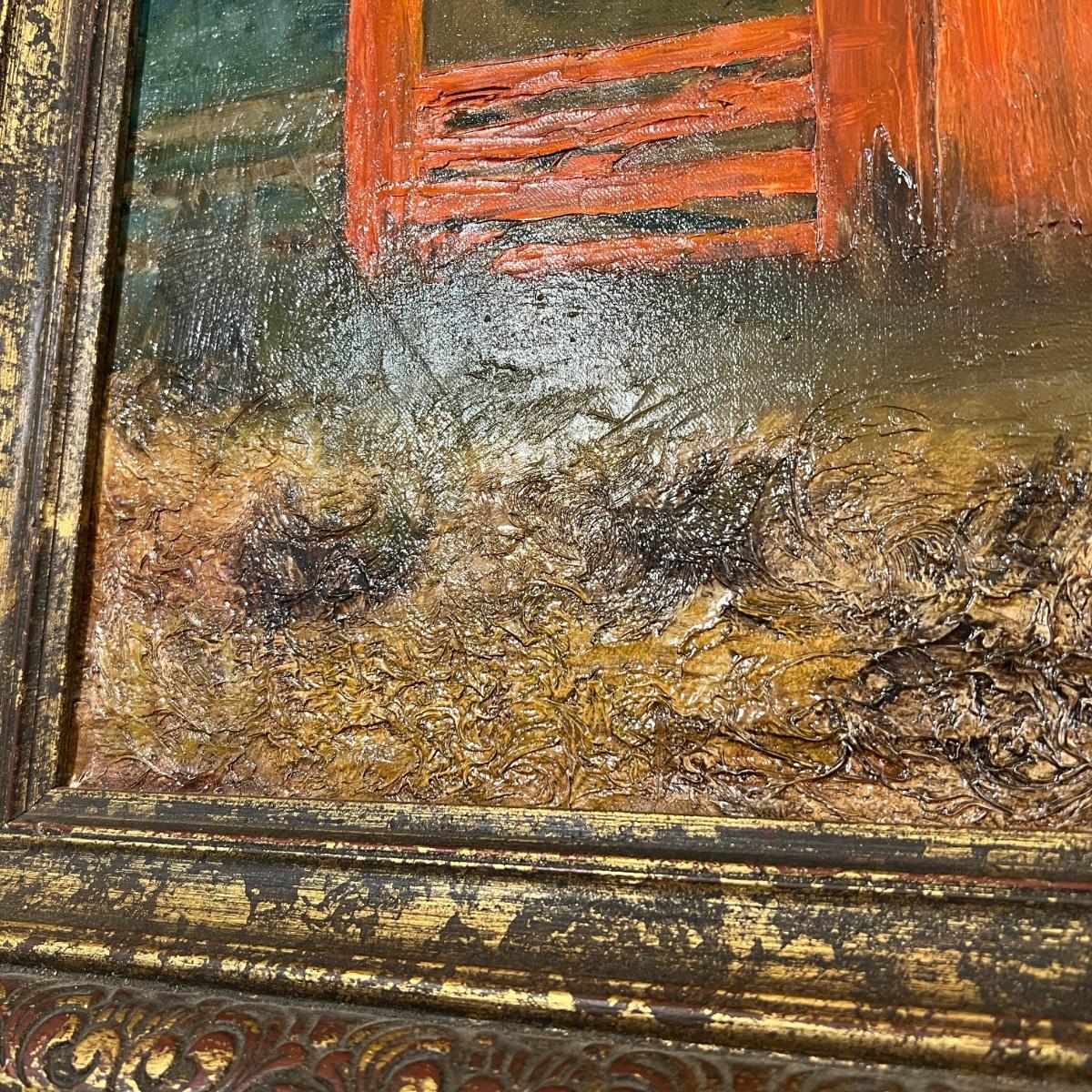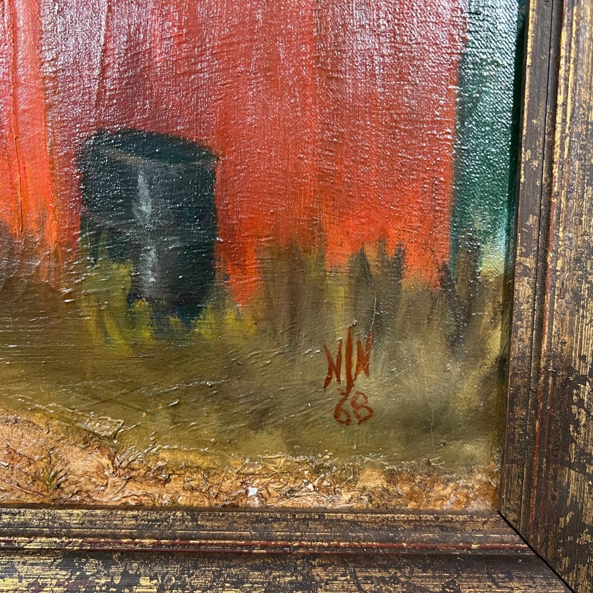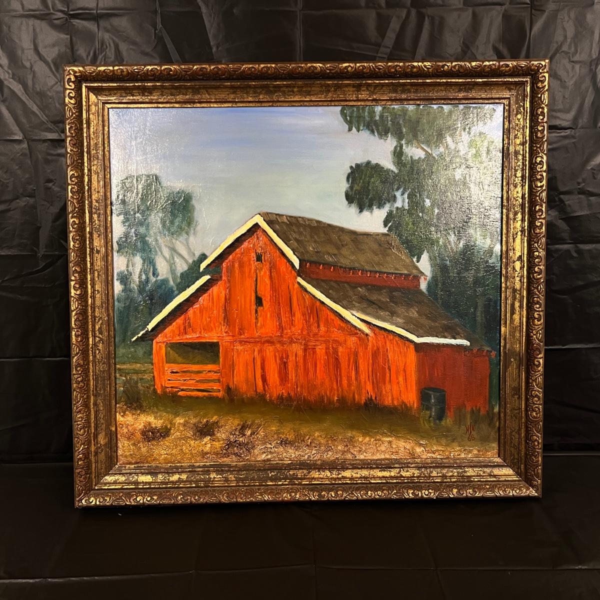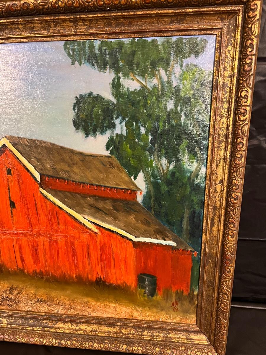 Original Signed Midcentury Painting of Red Barn