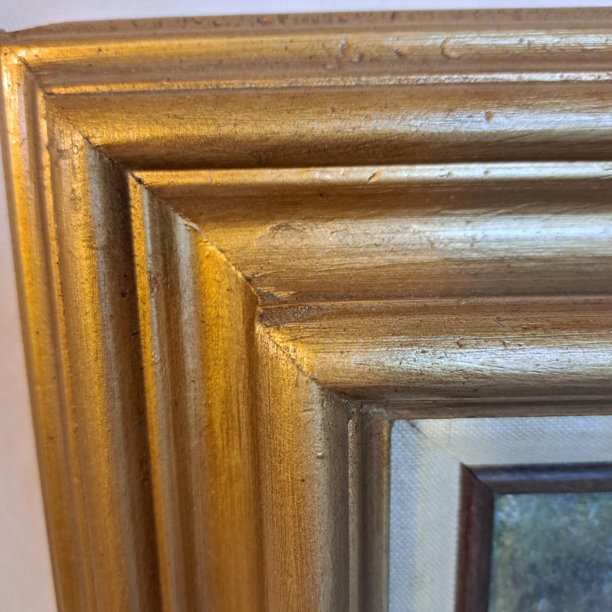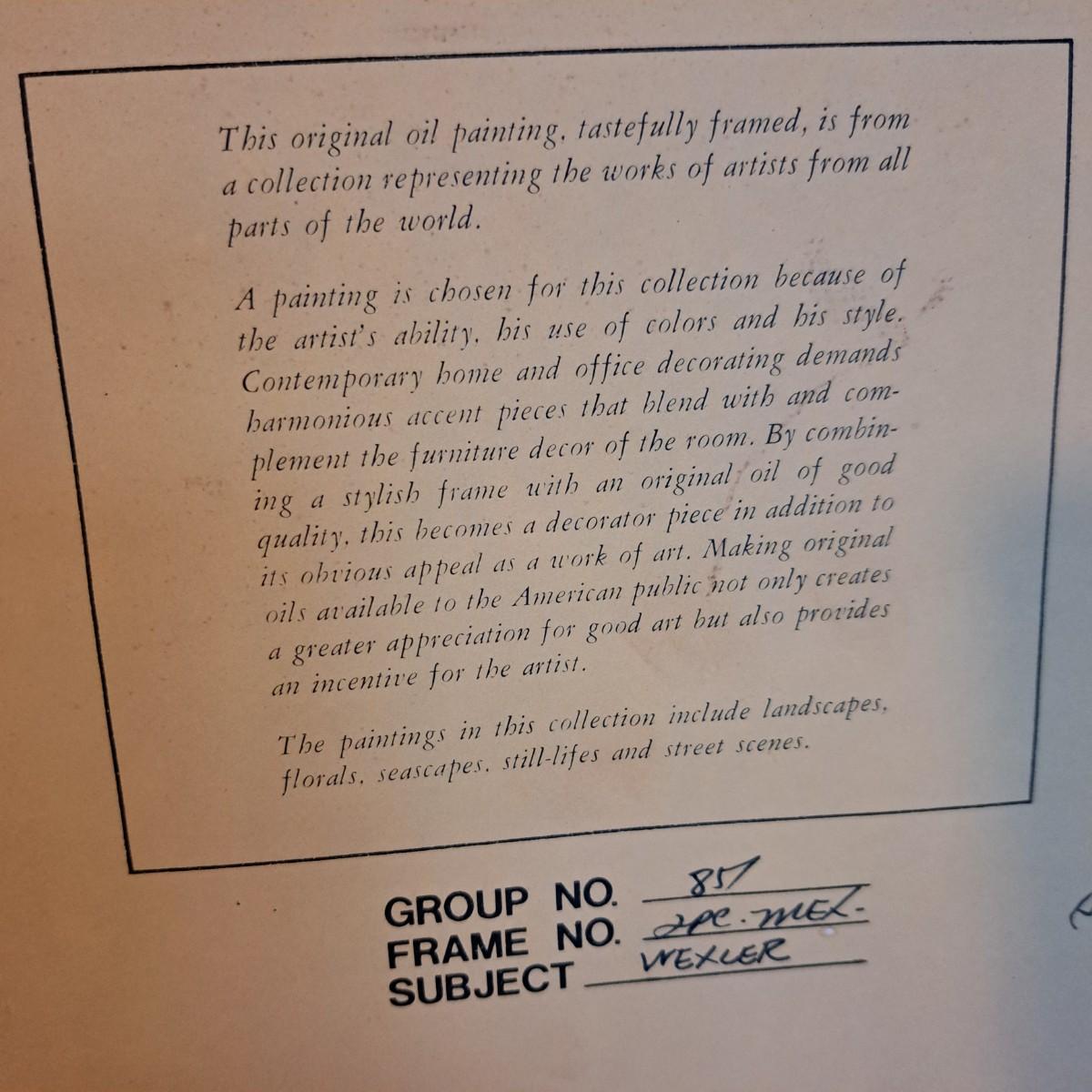 An original impressionistic landscape oil painting matted and set in a gilt gold frame (not under glass), 16" x 17.5," that appears to be painted by the American artist Owen Wexler (1942-2022). The painting itself measures approximately 8" x 10" and is signed "Wexler" in lower right corner. The back of painting has a description that reads it is "from a collection representing the works of artists from all parts of the world." Shipping Available. Shipping can be costly. We suggest contacting our preferred local shipping provider, Postage Express, with dimensions and getting an estimate before bidding: (828) 255-9250 or shipping@postageexpressnc.com.