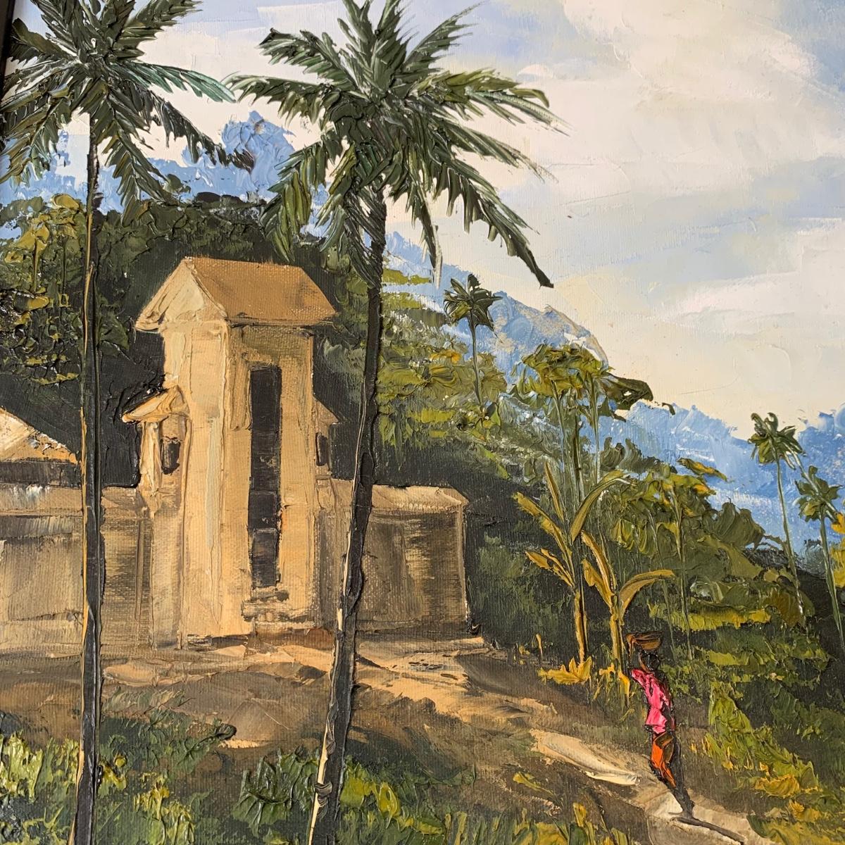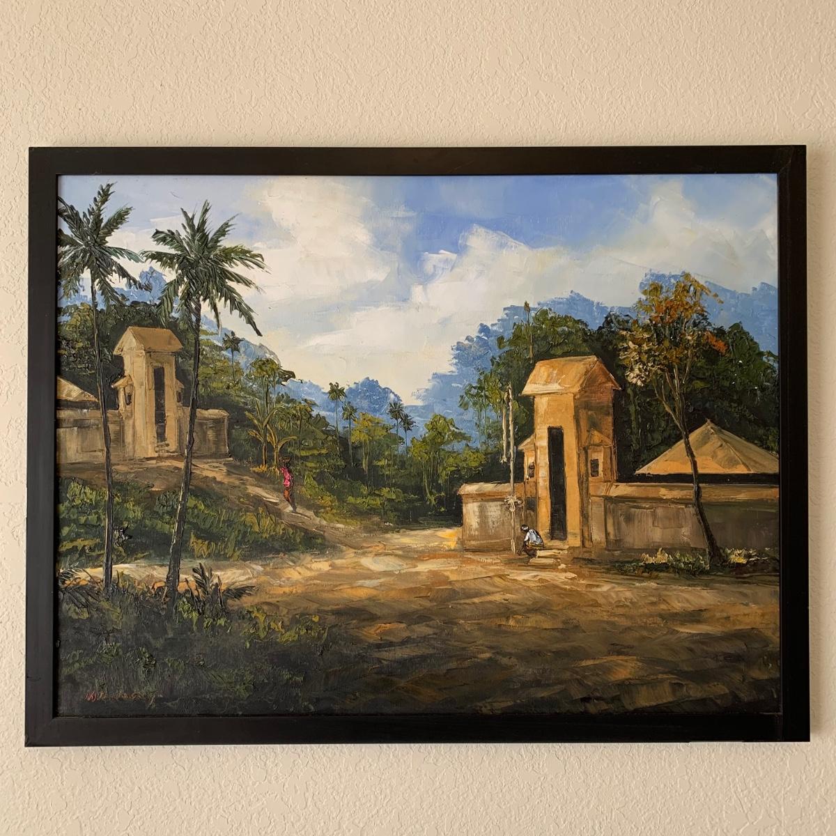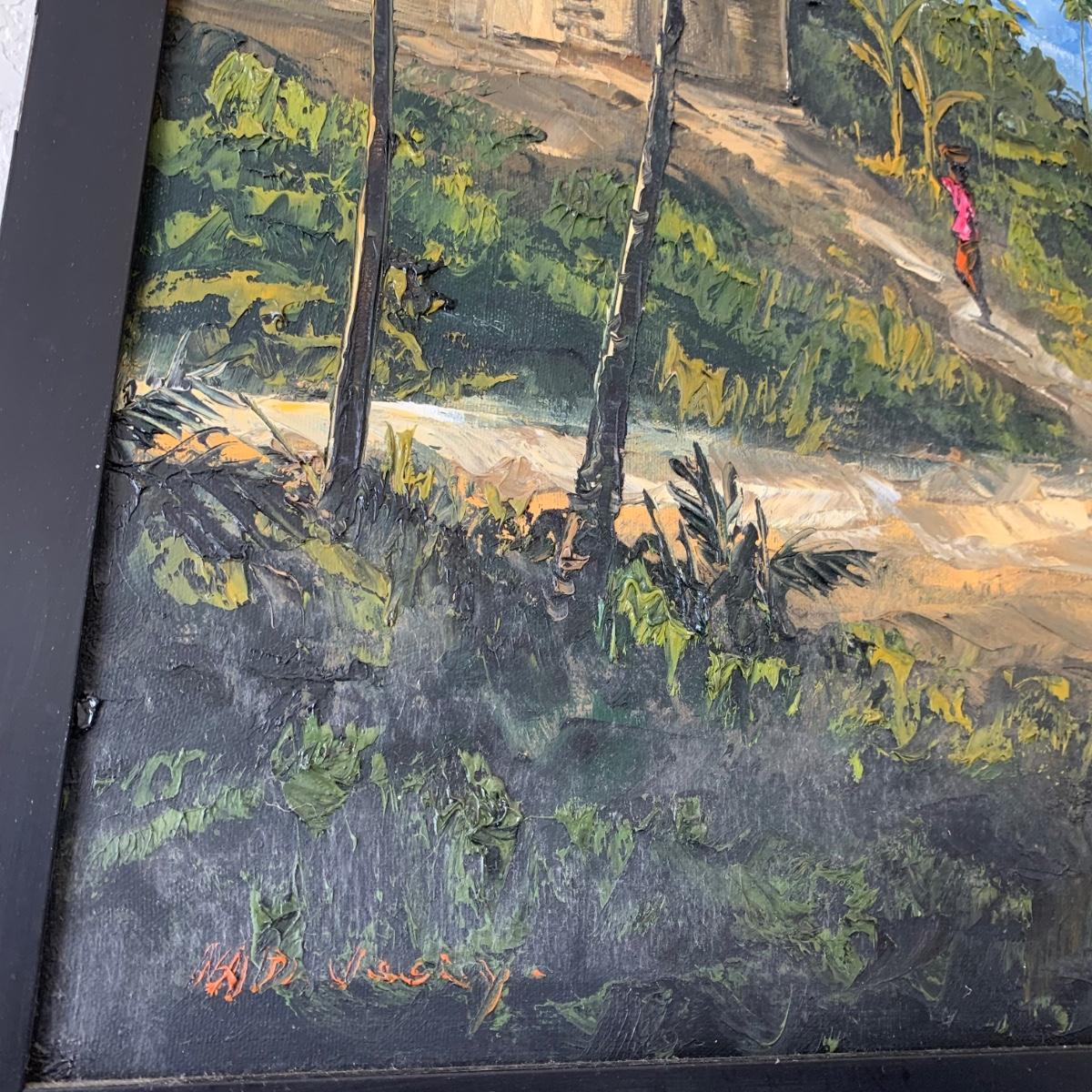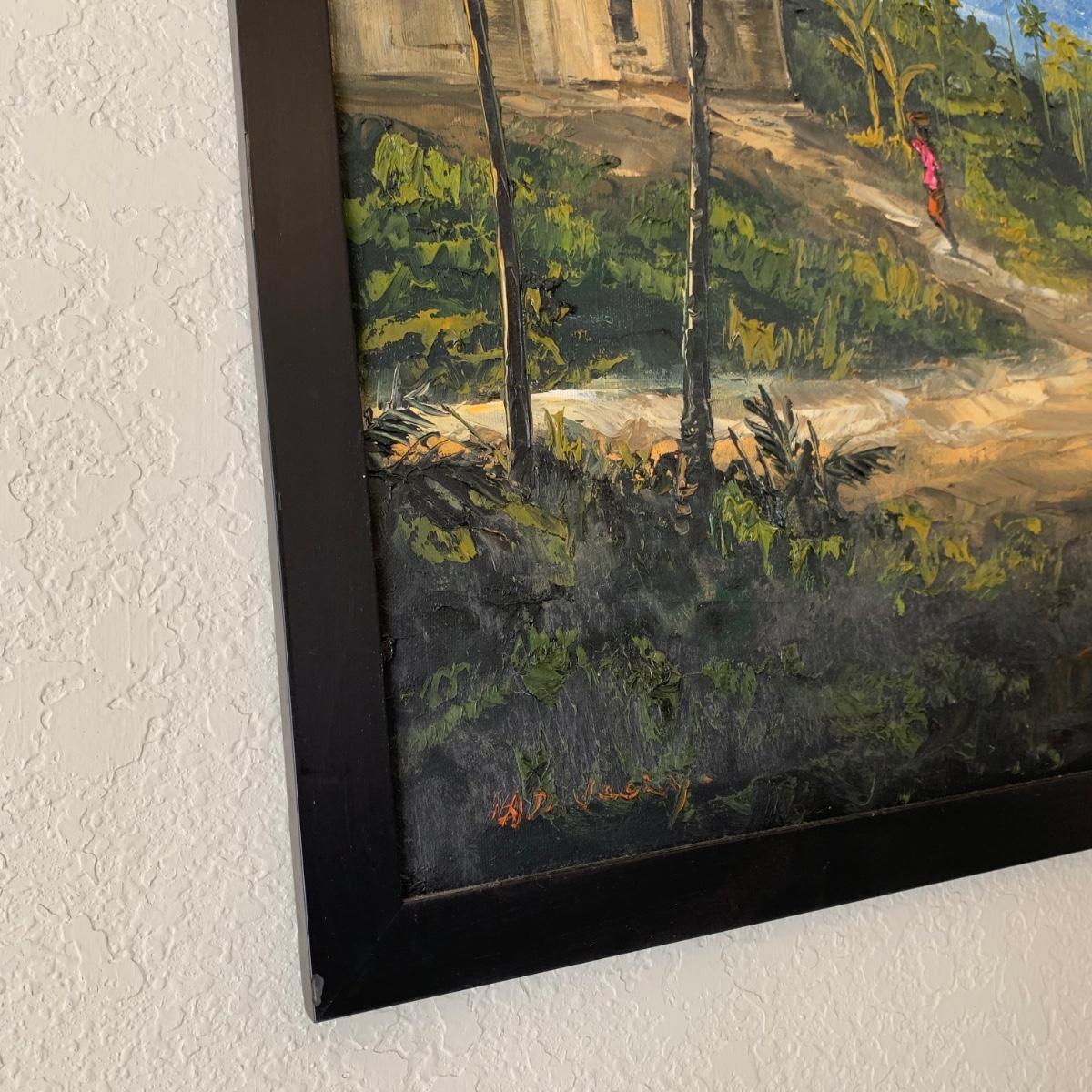 Original Signed Painting Depicting People in a Tropical Landscape (B1-HS)
