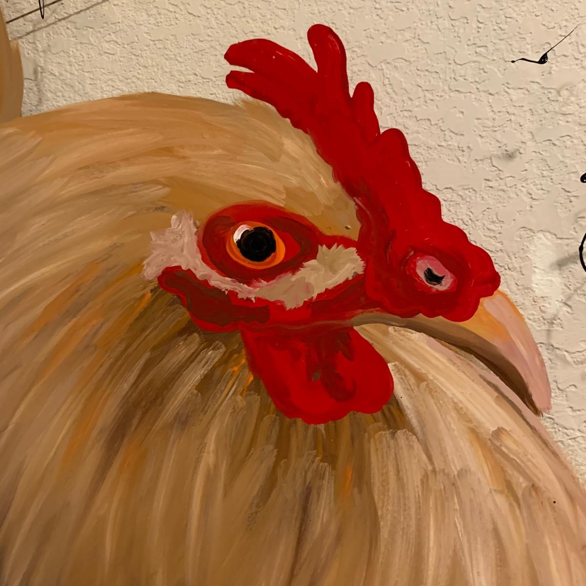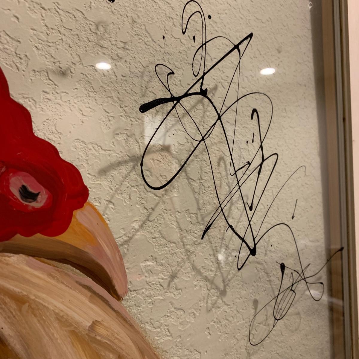 Original Signed Painting of a Chicken on Window Pane by Hamlin (B1-HS)
