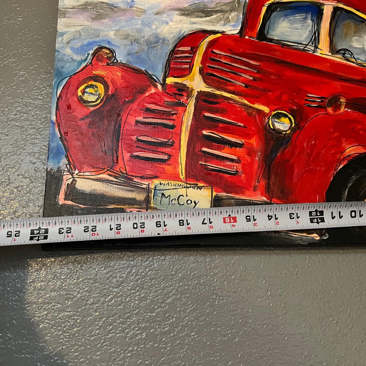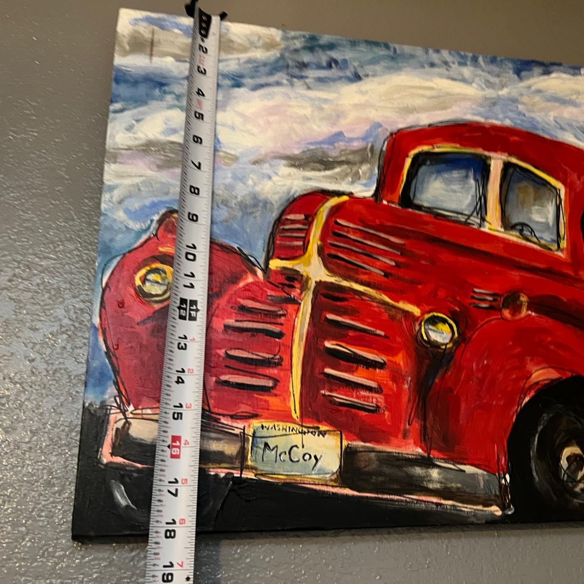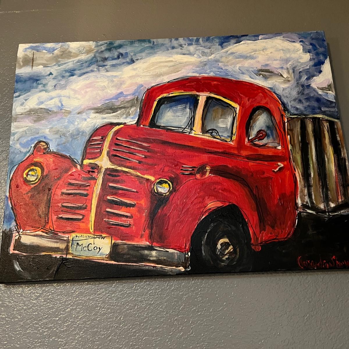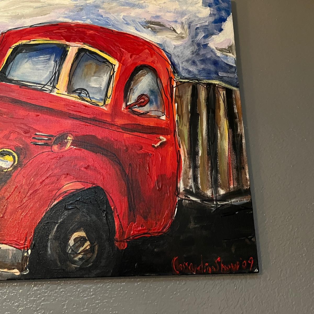 Original Signed Painting of Classic Red Truck by Cassandra Shaw. In good condition, as shown.