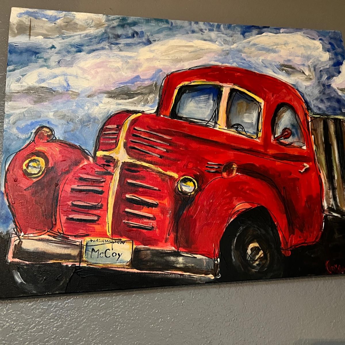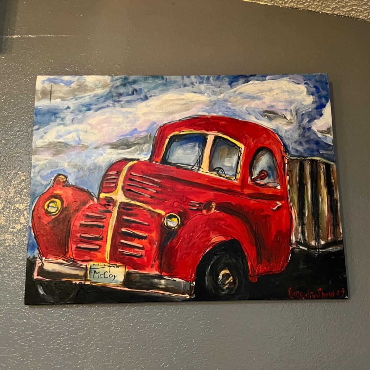 Original Signed Painting of Classic Red Truck by Cassandra Shaw