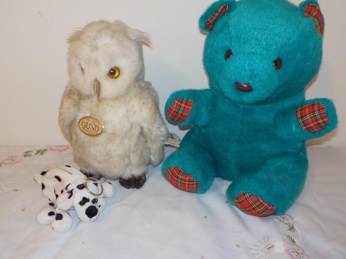"Original Snowy the OWL by Gund, Blue Bear by Nanco.