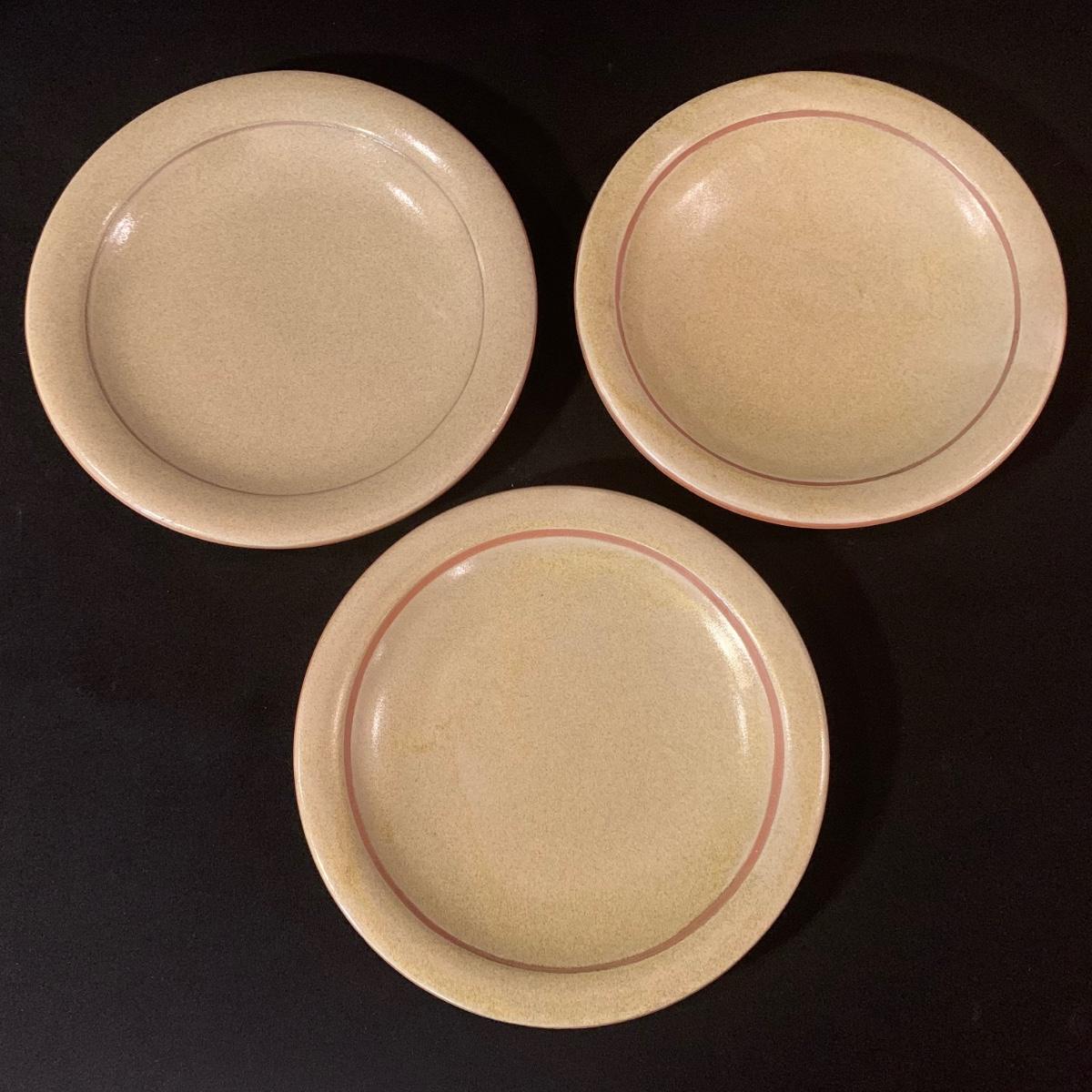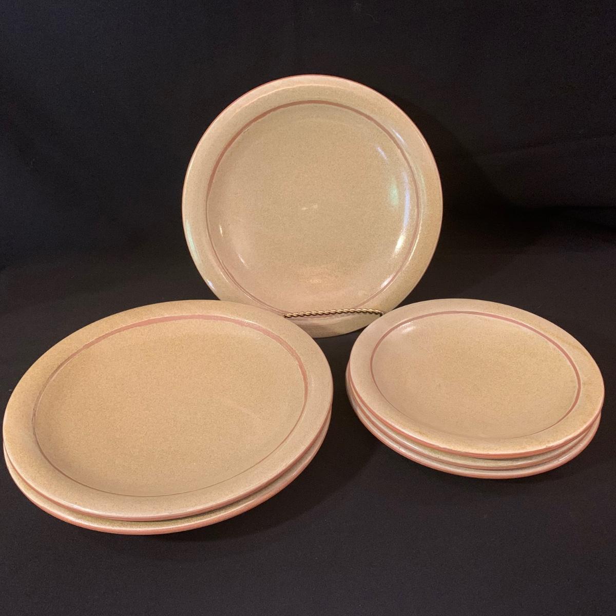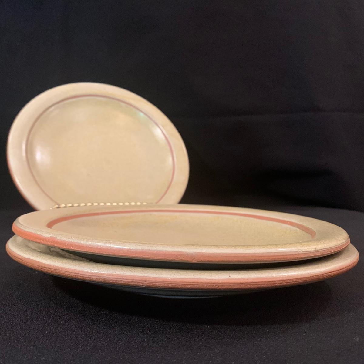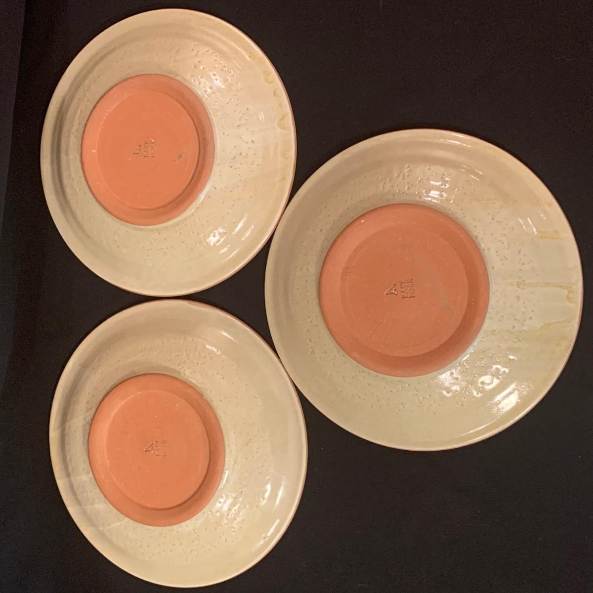 This lot includes original stone colored glazed plates handmade and wood-kiln fired by local potter and founder of East Fork Pottery, Alex Matisse. Lot includes three salad plates and three dinner plates. Each piece is unique and stamped, “A East Fork," the personal stamp of Alex Matisse used circa 2011-2014.