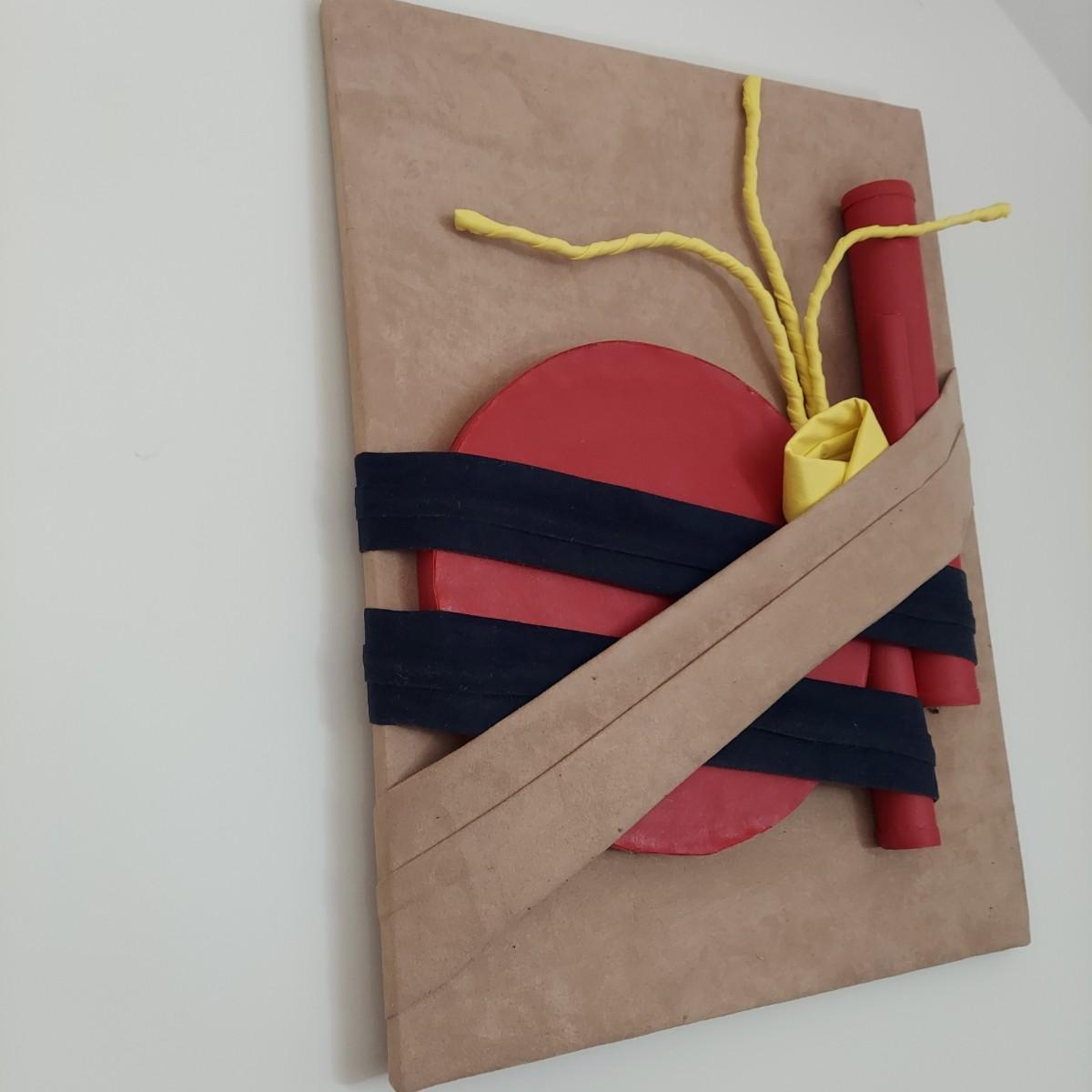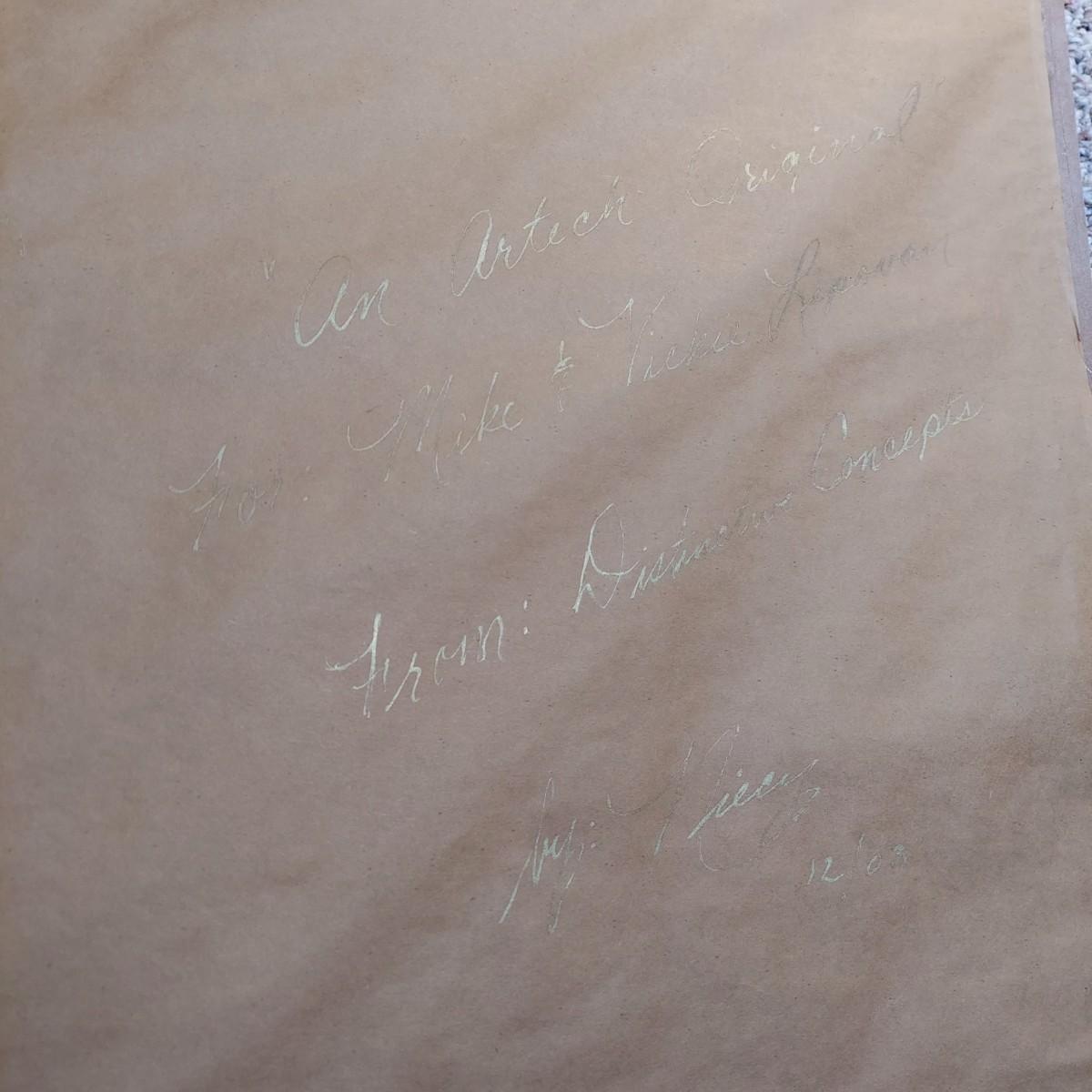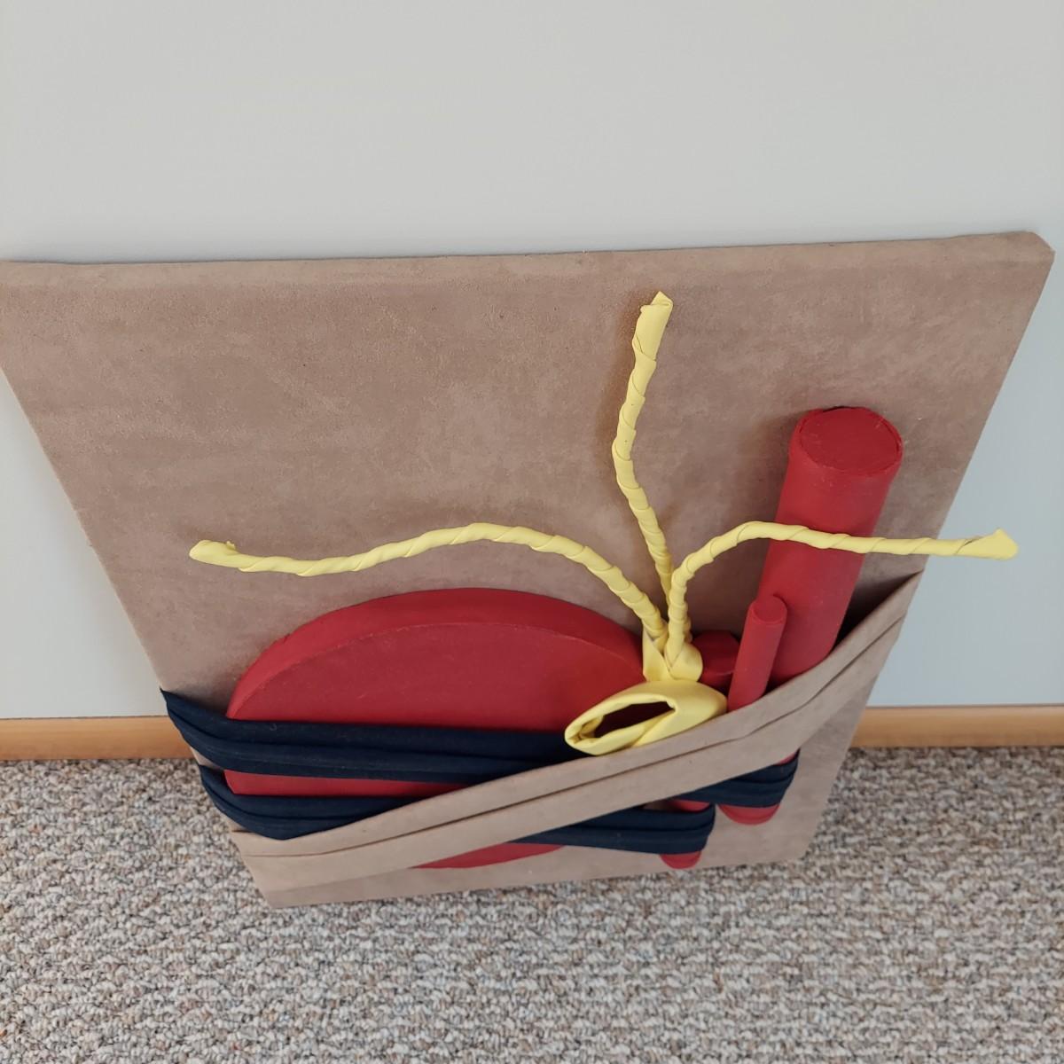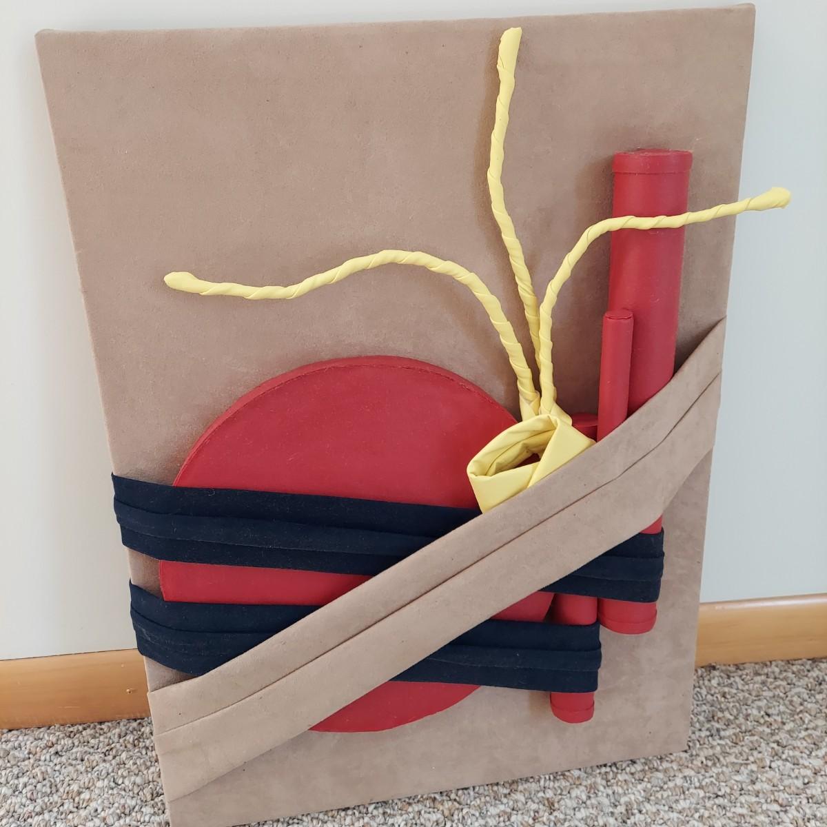 Original textile art by Artech. Mixed media fabric art stretched around frame. Measures 18" x 1" x 24"H. Back reads "An Artech Original" from Distinctive Concepts by Niecy 12/03. Shipping available. Shipping can be costly. We suggest contacting our preferred local shipping provider, Postage Express, with dimensions and getting an estimate before bidding: (828) 670-5501or postageexpress@yahoo.com.