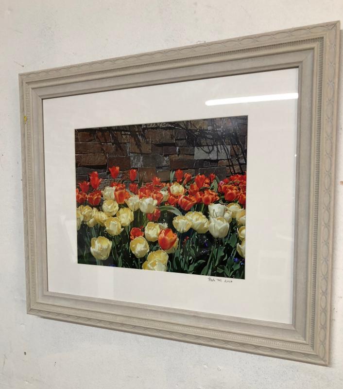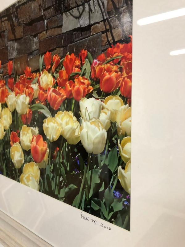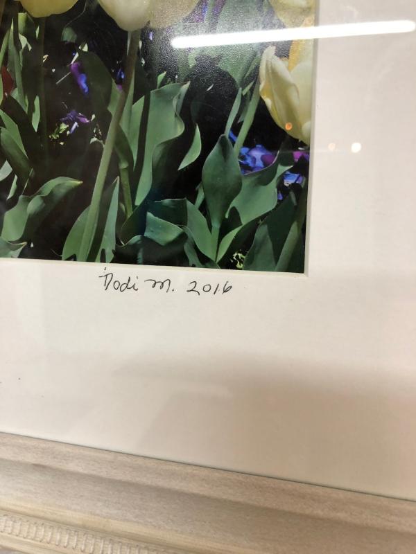 In a burst of colors here is a signed photographic print of a Tulip Field by Dodi M...2016...Framed 24 x 20"