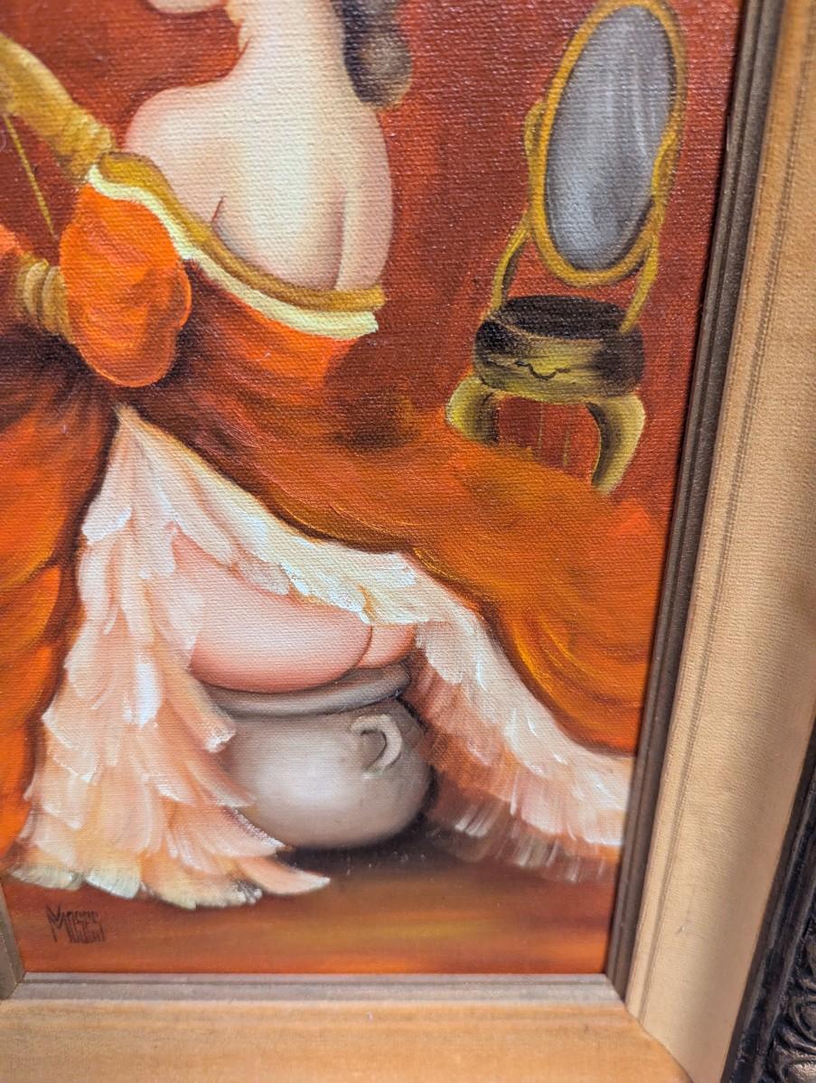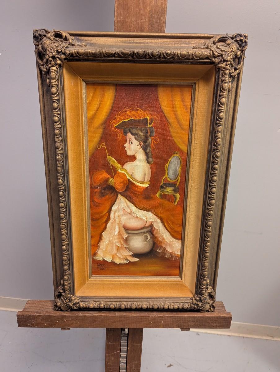 Original Framed Art Painting on Canvas 'The Chamber Pot' by V. Moses