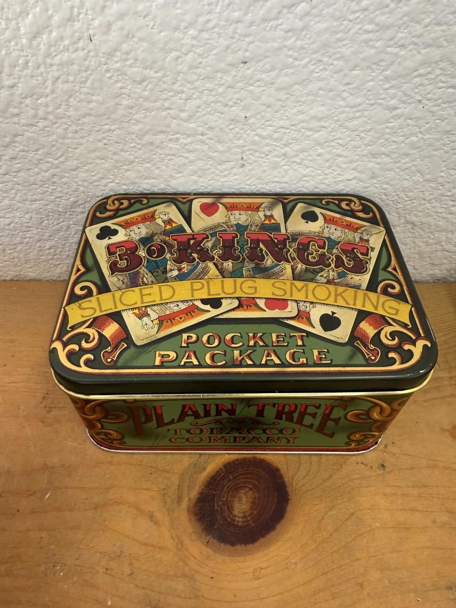 A rare original tobacco tin from the 3 Kings brand, perfect for collectors and adding vintage charm to your display.
