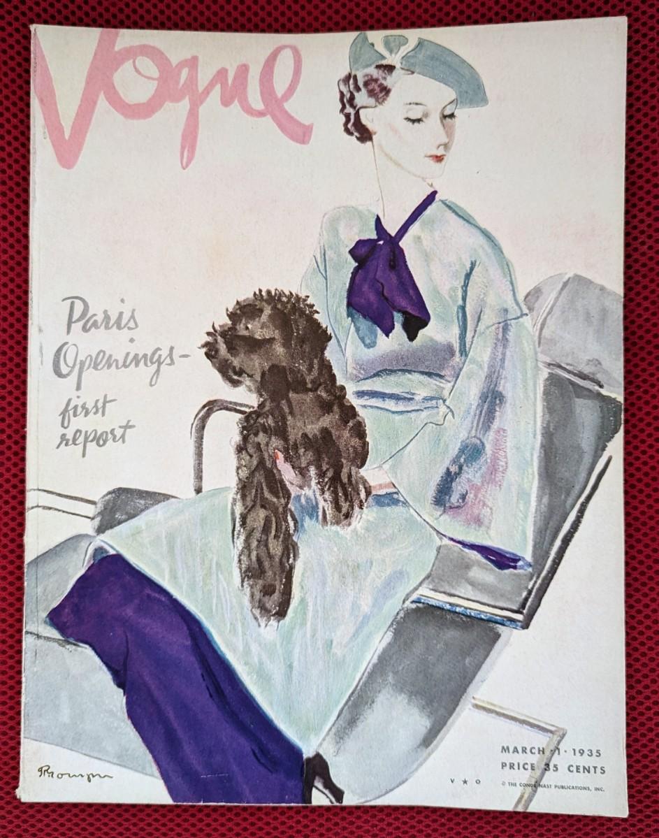 Original vintage copy of Vogue Magazine March 1, 1935 Cover art by Pierre Mourgue