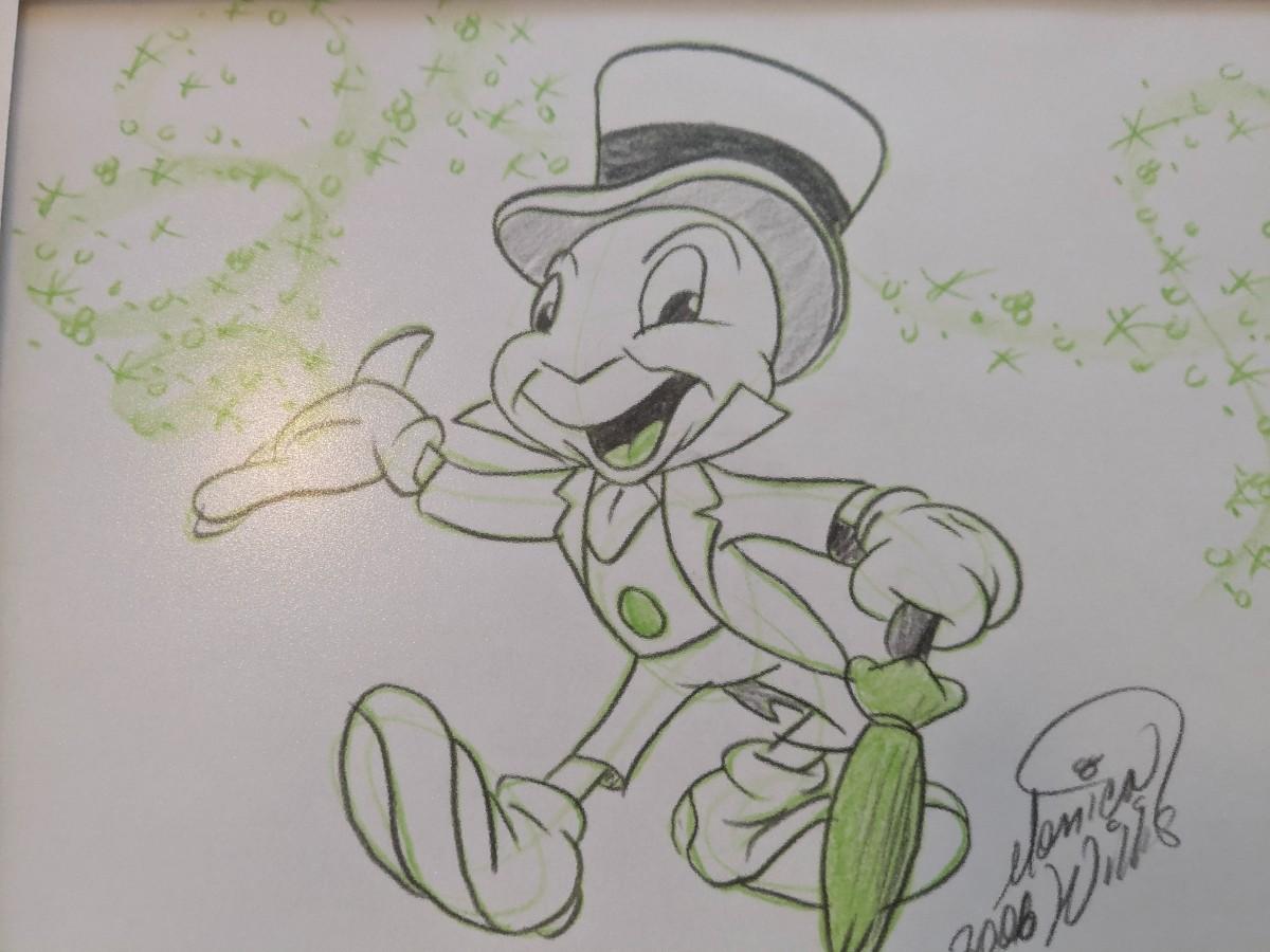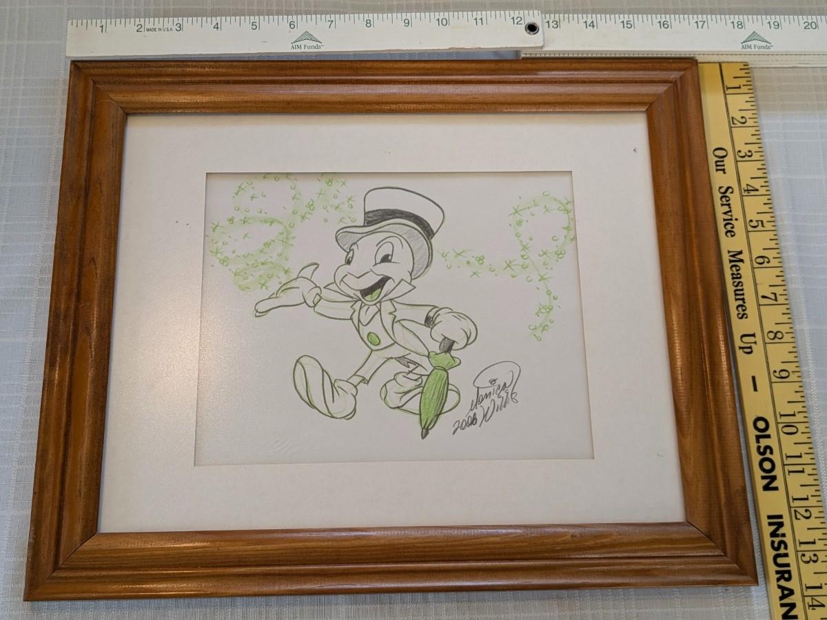 Original Walt Disney Jiminy Cricket Sketch Monica Willis Matted