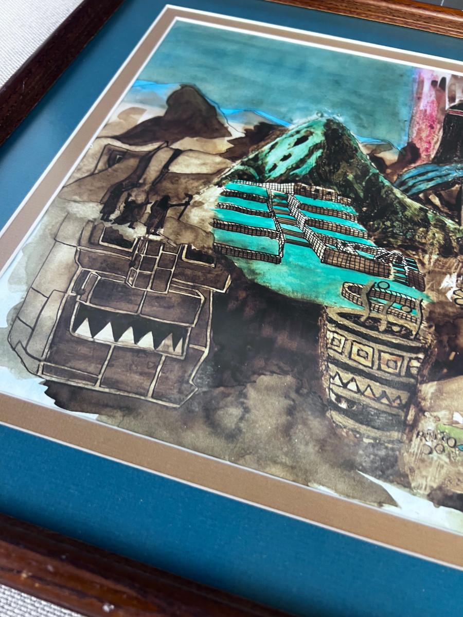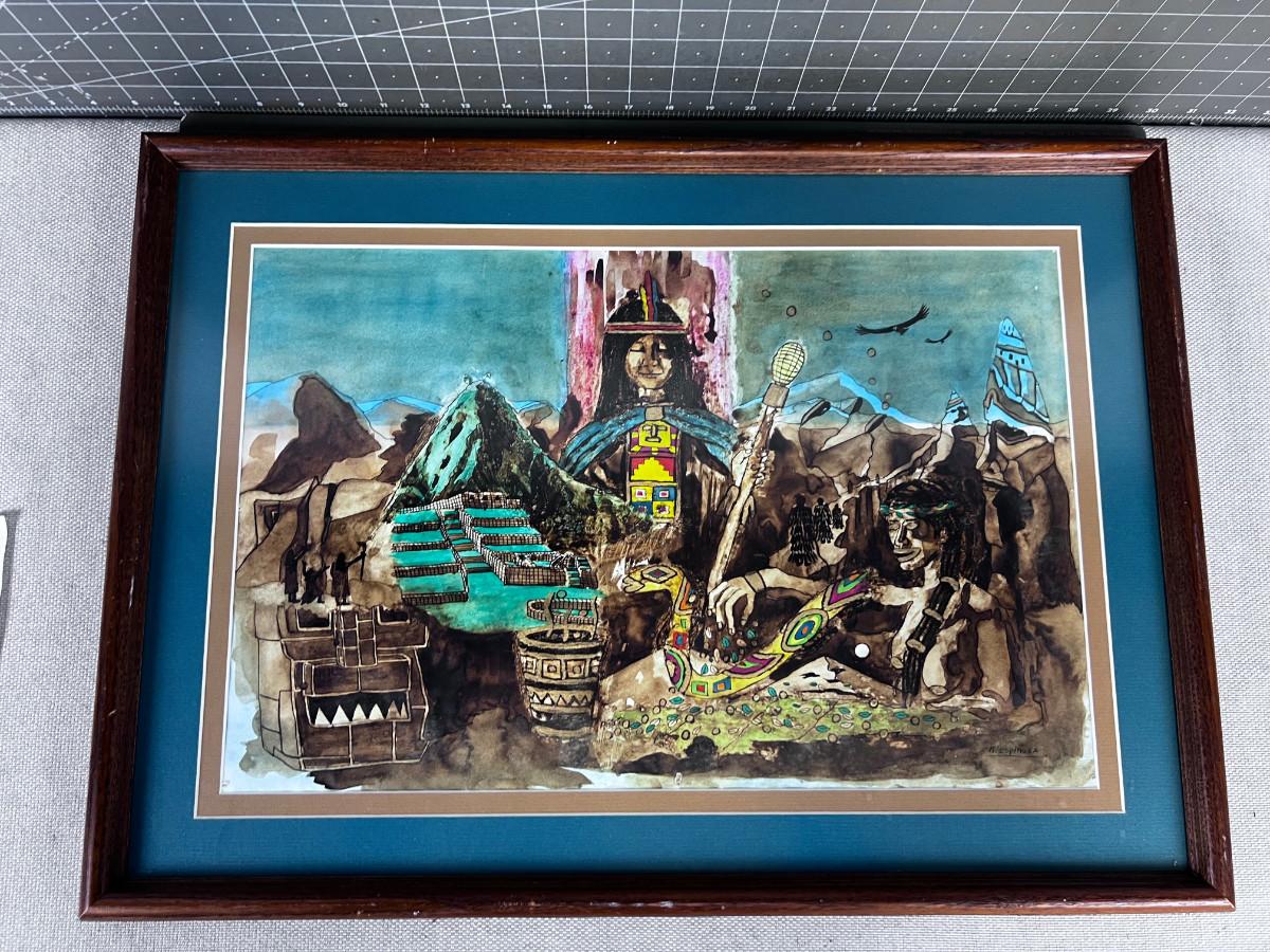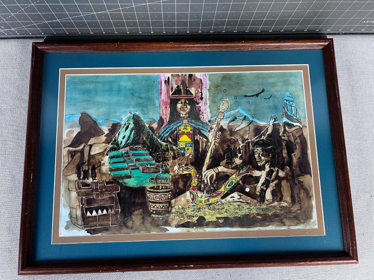 24 x 17 Framed under Glass Interesting. Vibrant Colors.