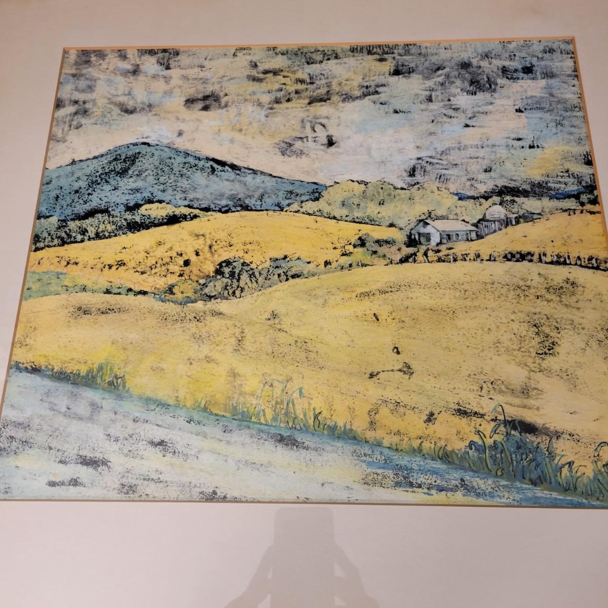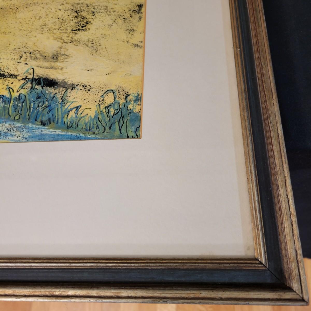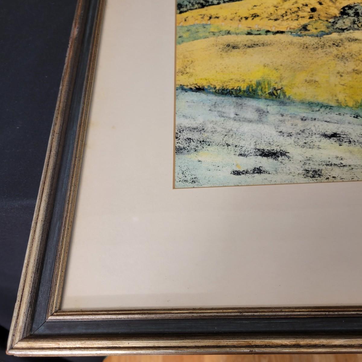 An original watercolor by local artist Bettie Pritchard in excellent condition. This piece is custom framed in a wooden, black and silver frame and a white mat. This piece measures approximately 26" x 24" x 1" Shipping available. Shipping Art can be costly please call UPS store at 828-252-6930 for quote