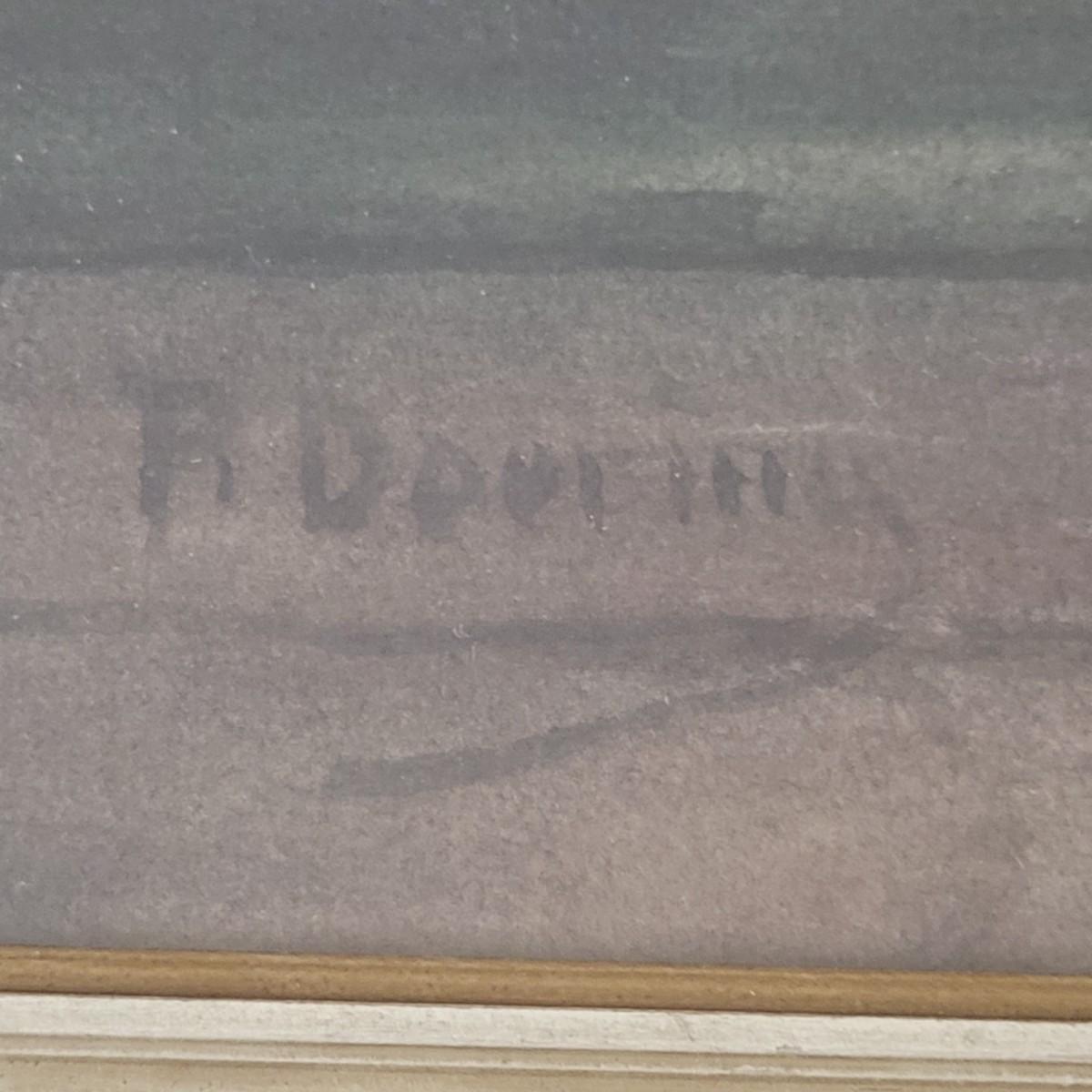A framed original watercolor painted by Paul Doering in good condition, but there are some minor blemishes on the frame. This piece has a wooden frame that is distressed white with gold trim and measures approximately 20.5" x 27" x 1" Shipping available. Shipping Art can be costly please call UPS store at 828-252-6930 for quote