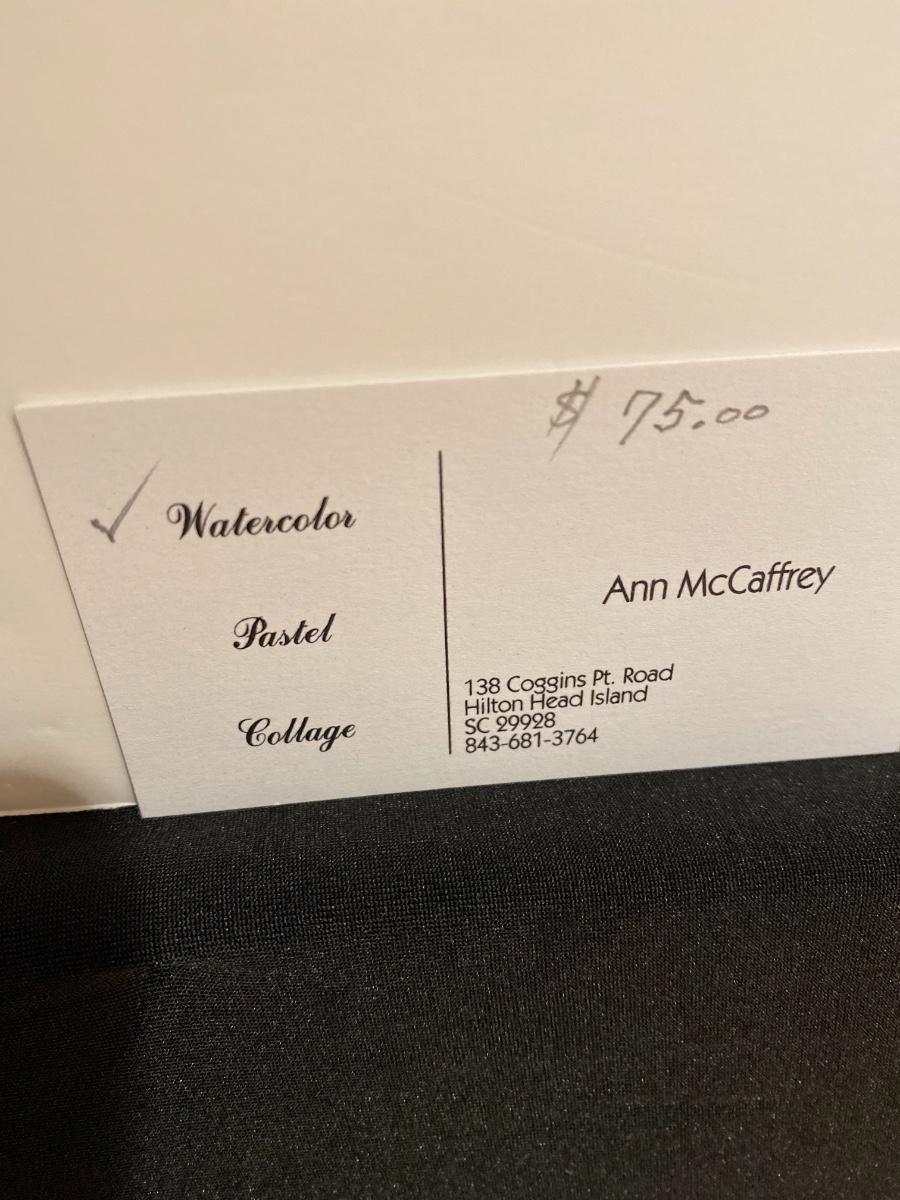Pick Up will be on Monday the 21st at the Art League of Hilton Head at 14 Shelter Cove. A sign up list to sign up for a pick up time slot will be emailed to you at the close of the sale. Shipping is an option. If you would like your art shipped you can choose to forfeit the frame to save on shipping costs. The item will be packed and shipped by UPS at the cost to the buyer.