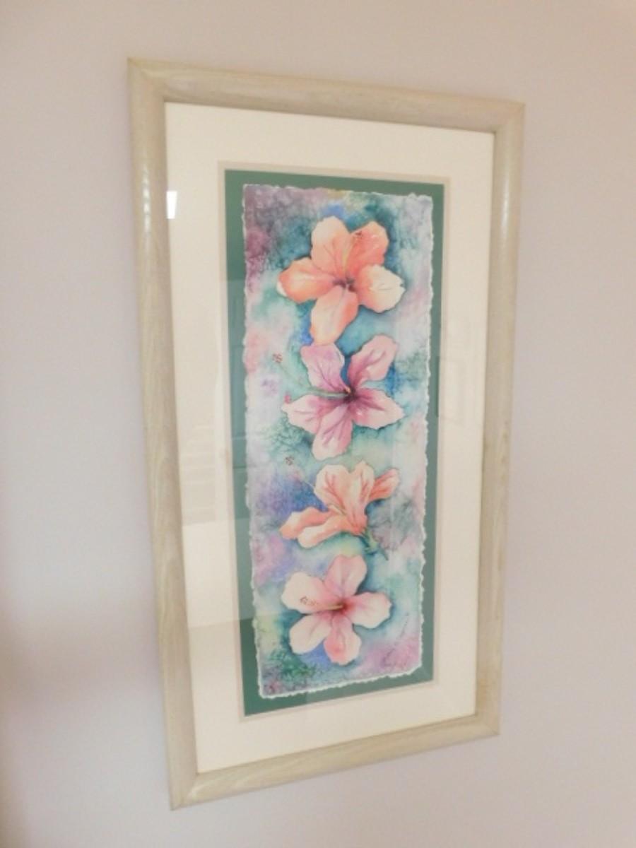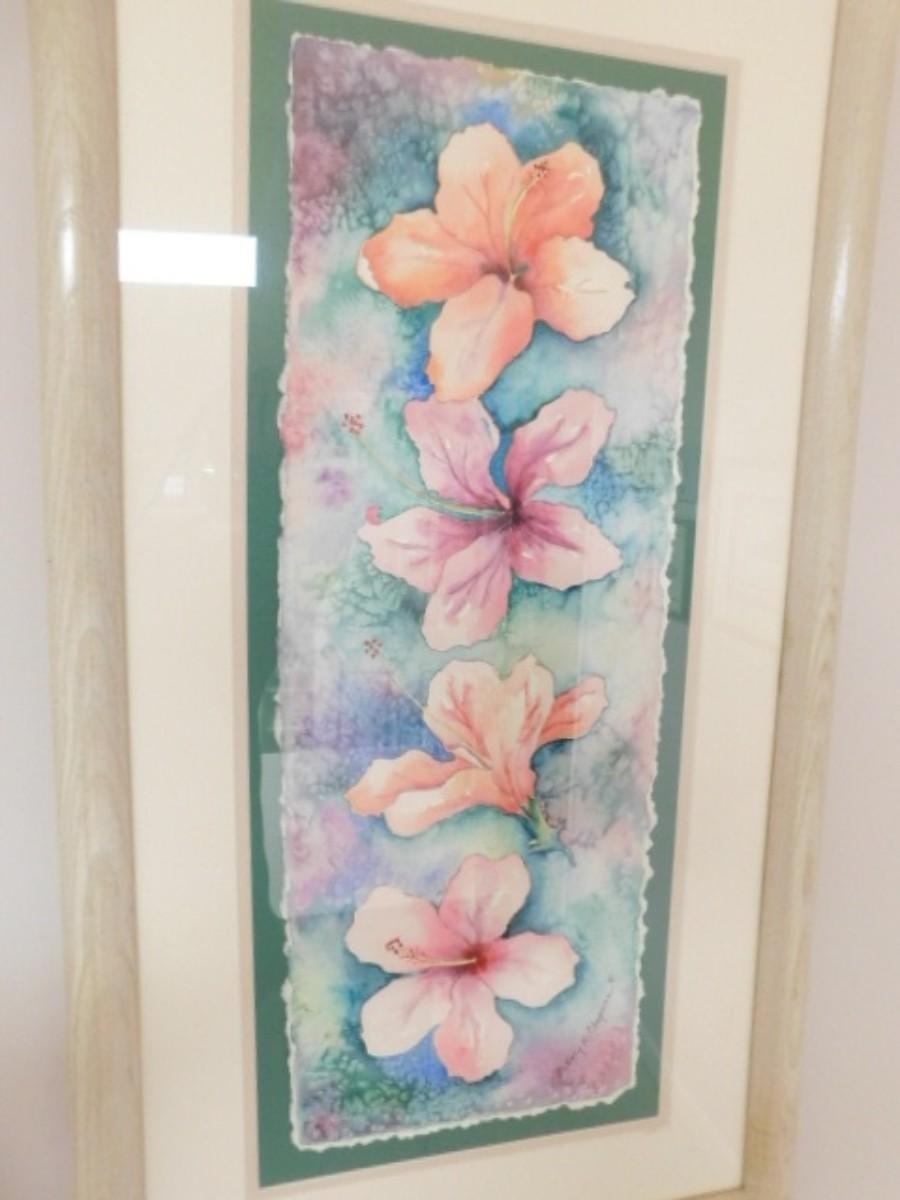 Original Watercolor Framed Art 'Hibiscus' by Marcy R. Chapman Shipping by third party such as UPS Store or Frontier Packing. Auction house will not personally ship. We will ensure item gets to the shipper of your choice.