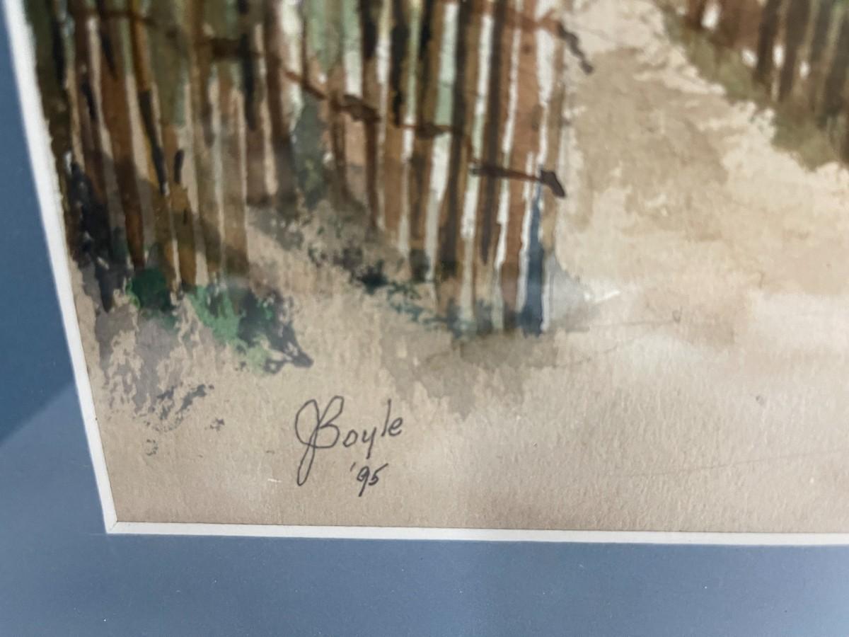 Original watercolor signed J Boyle, 1995. Excellent condition, custom framed. Frame 21" x 28.