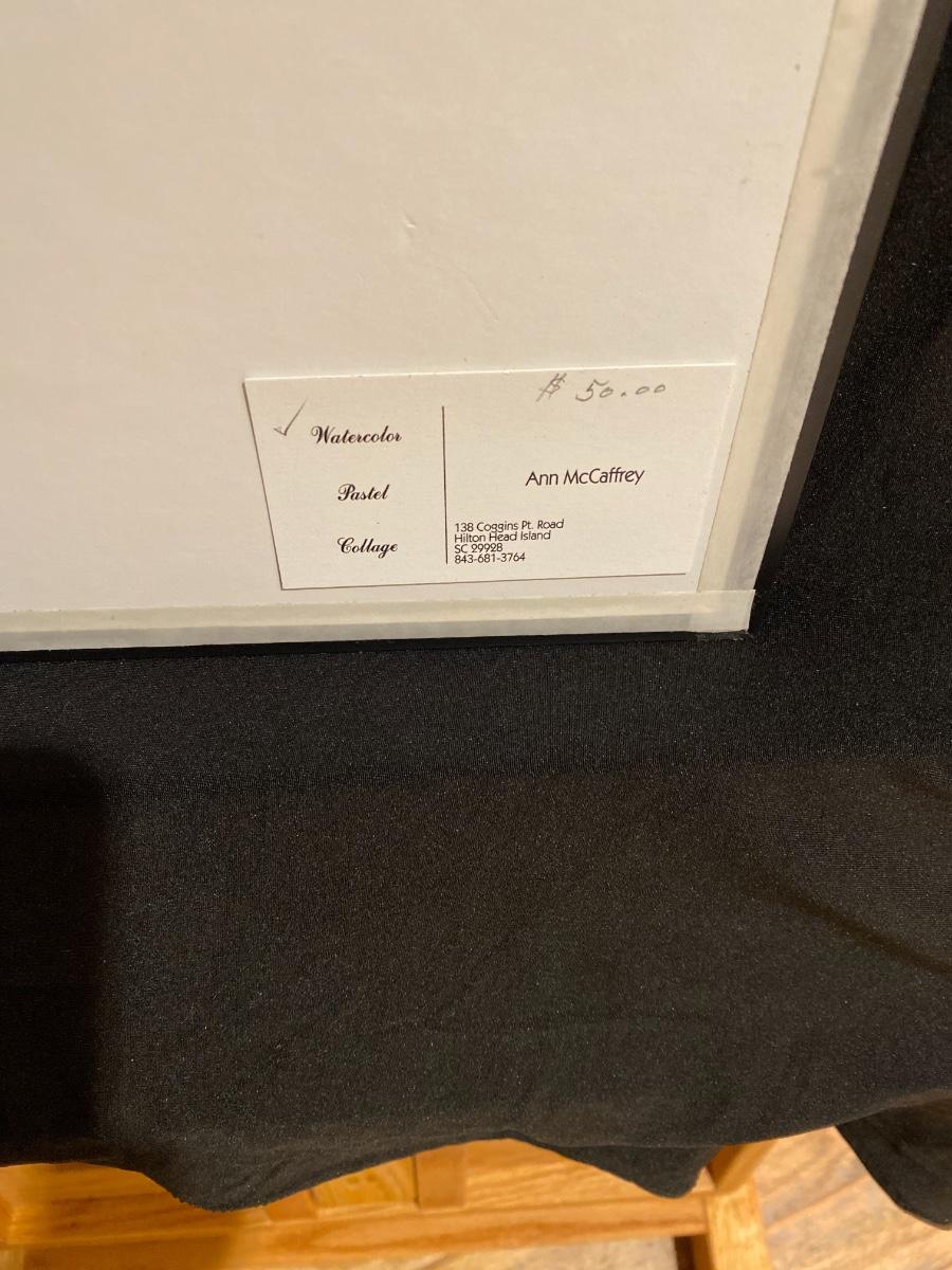 Pick Up will be on Monday the 21st at the Art League of Hilton Head at 14 Shelter Cove. A sign up list to sign up for a pick up time slot will be emailed to you at the close of the sale. Shipping is an option. If you would like your art shipped you can choose to forfeit the frame to save on shipping costs. The item will be packed and shipped by UPS at the cost to the buyer.