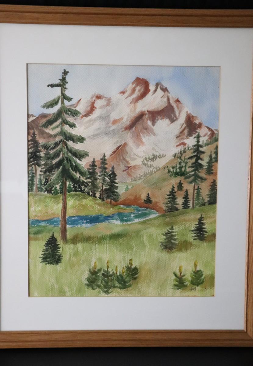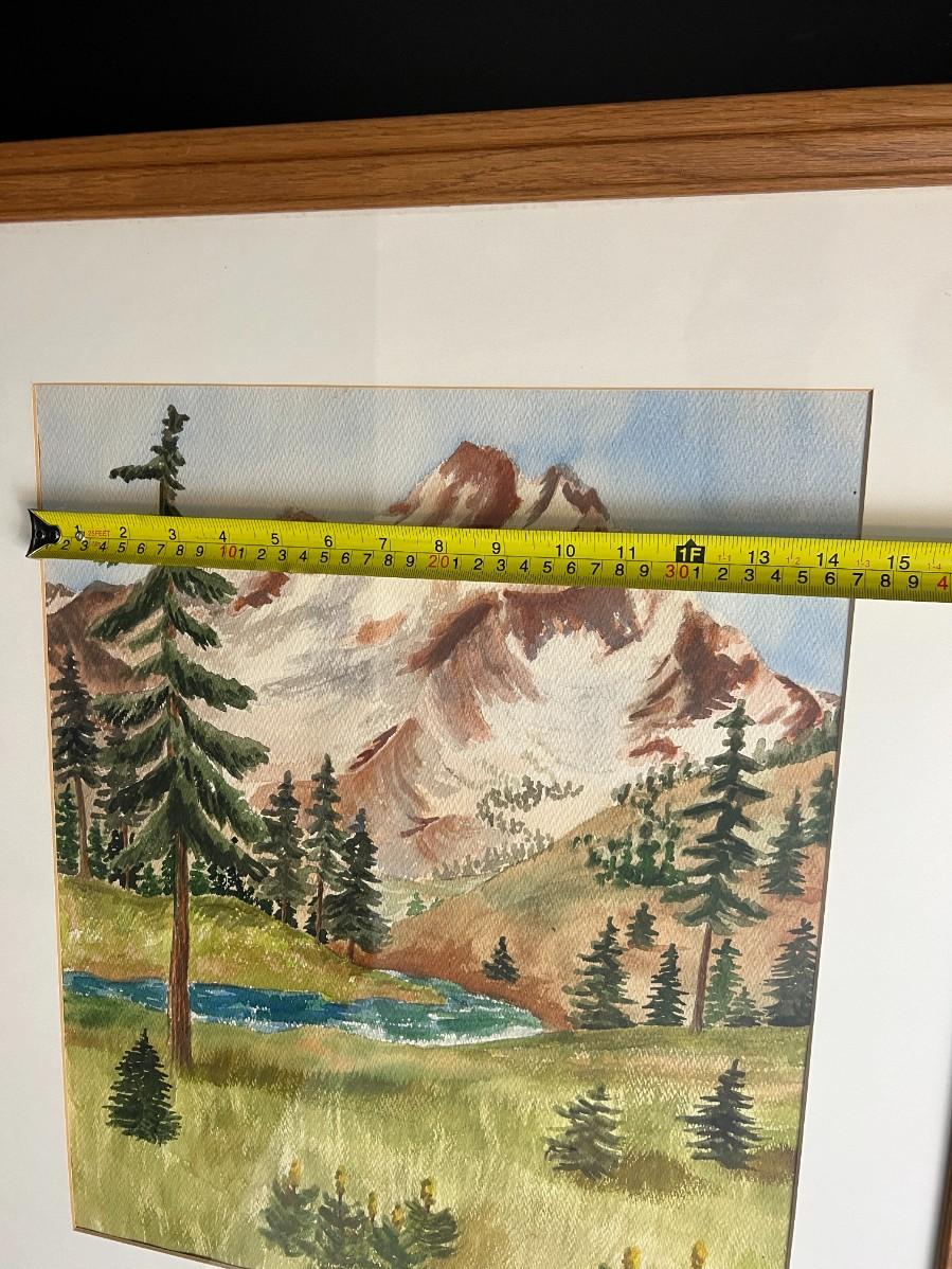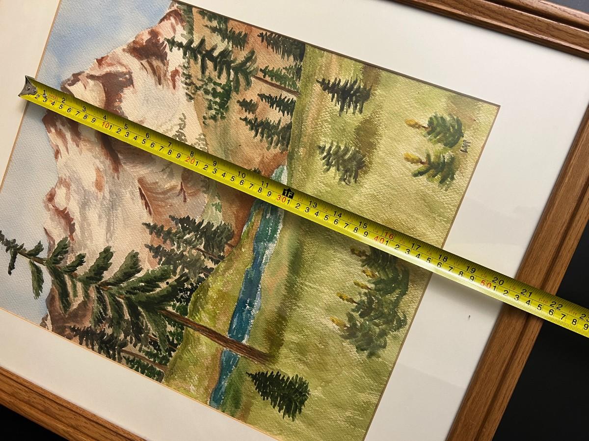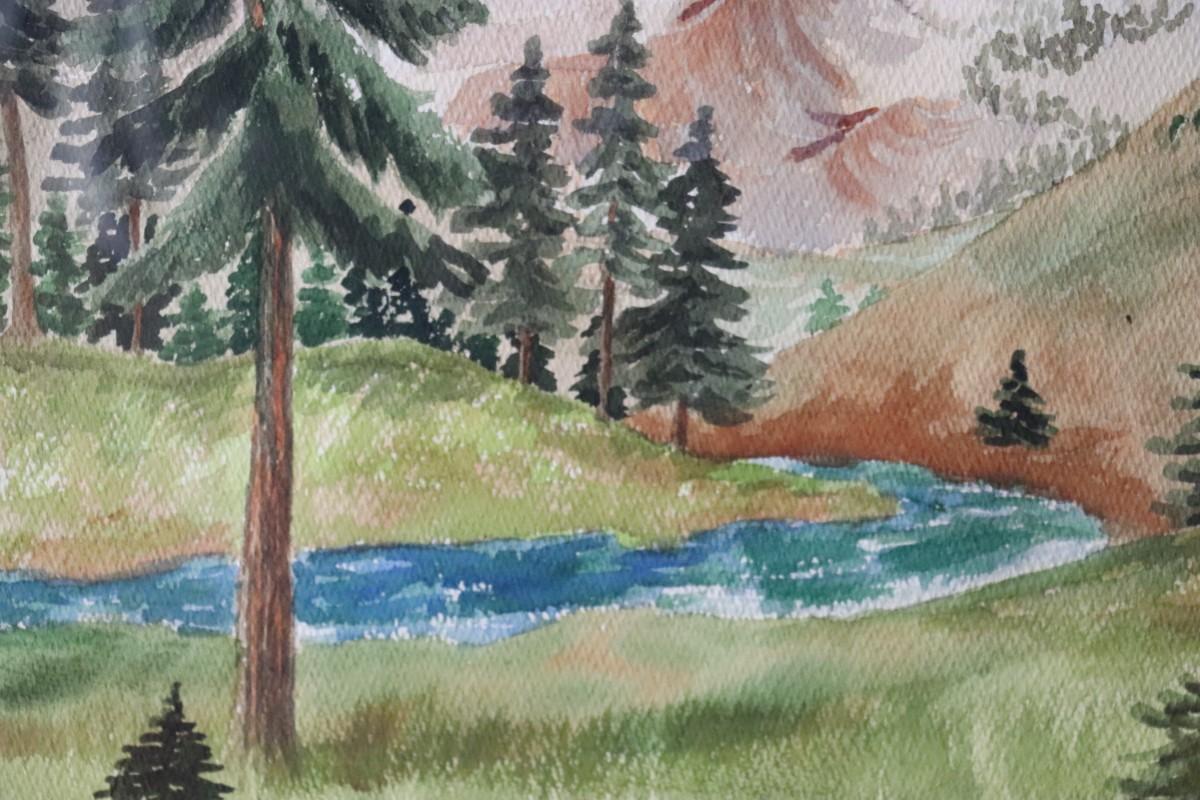Original Watercolor Painting of Mountain and River Scene Signed by Lopp
