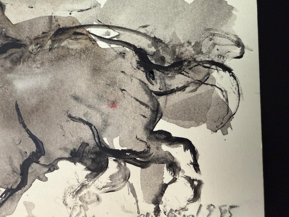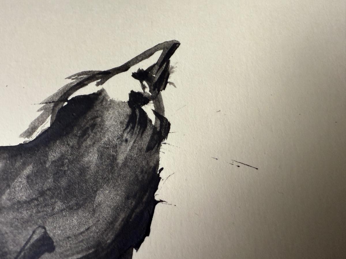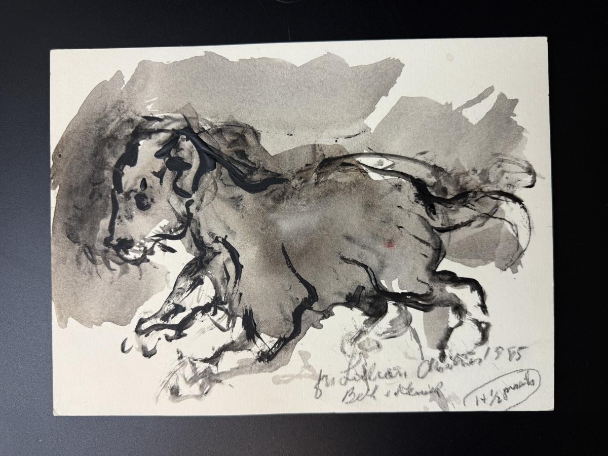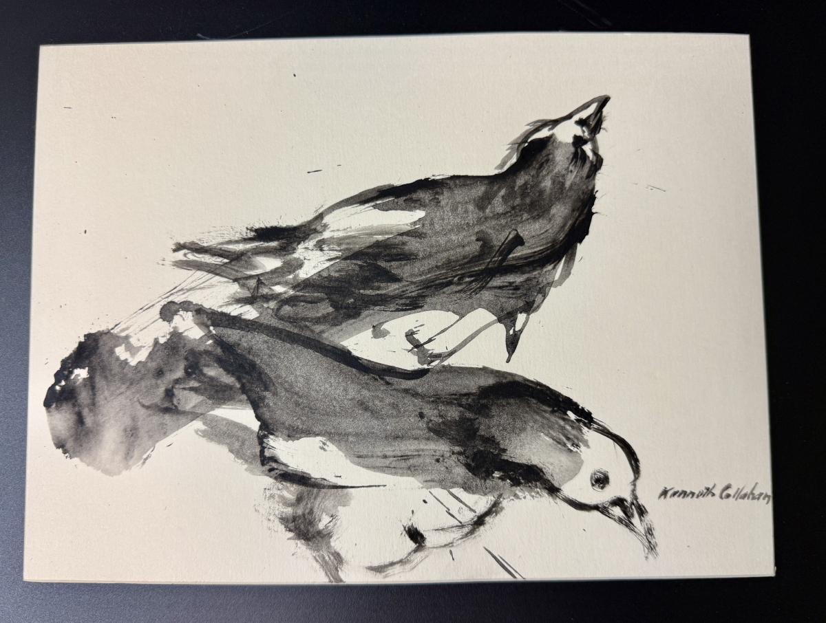 Art pieces painted on the same art panel as mentioned. One side is his famous crows and the other horses with a personal message to the friend.