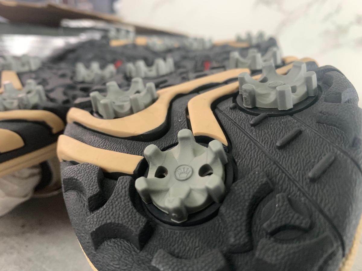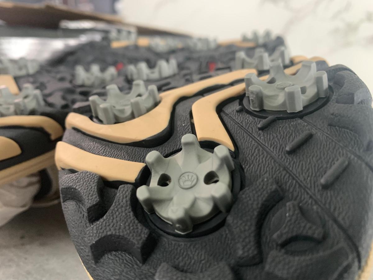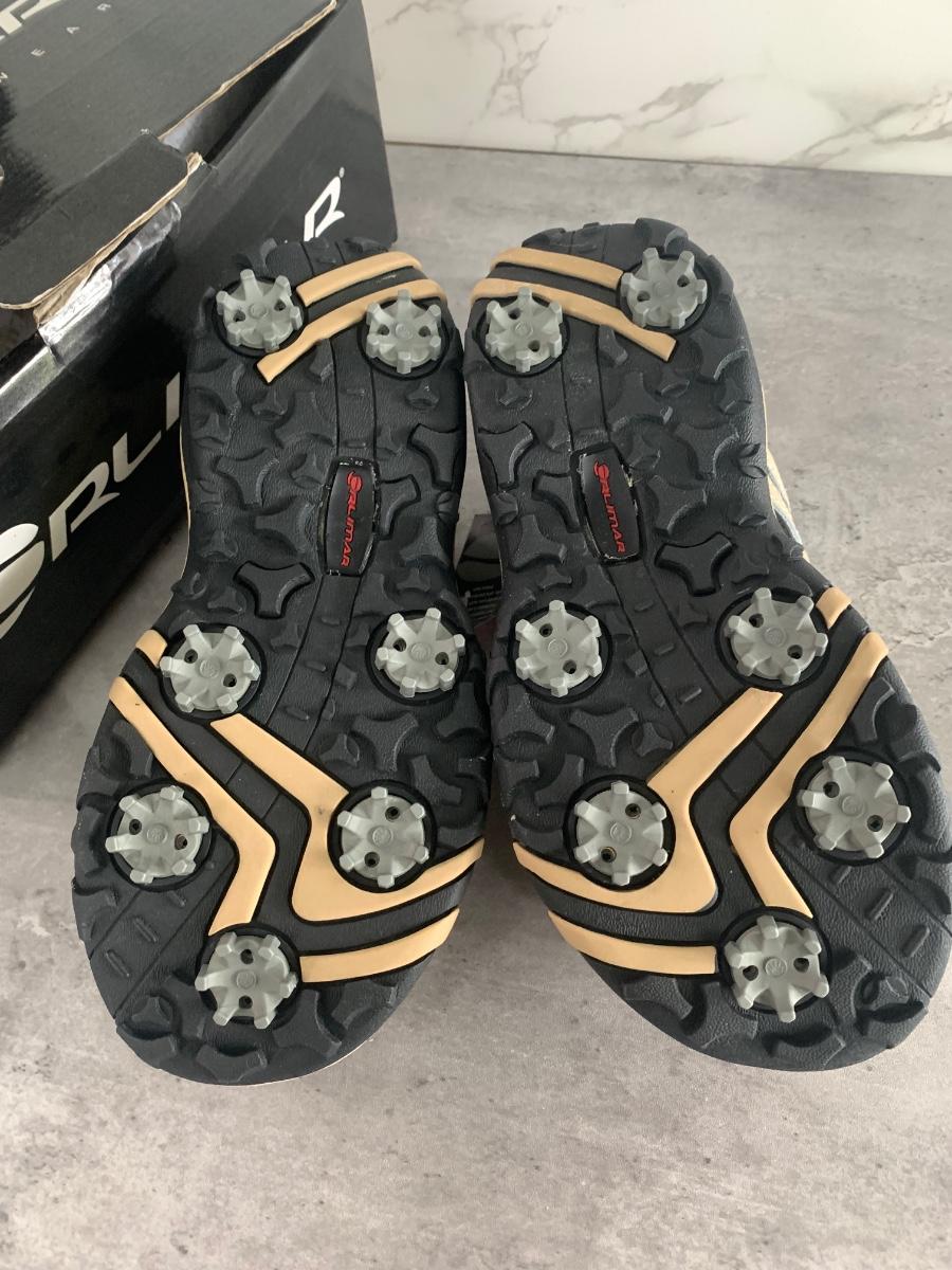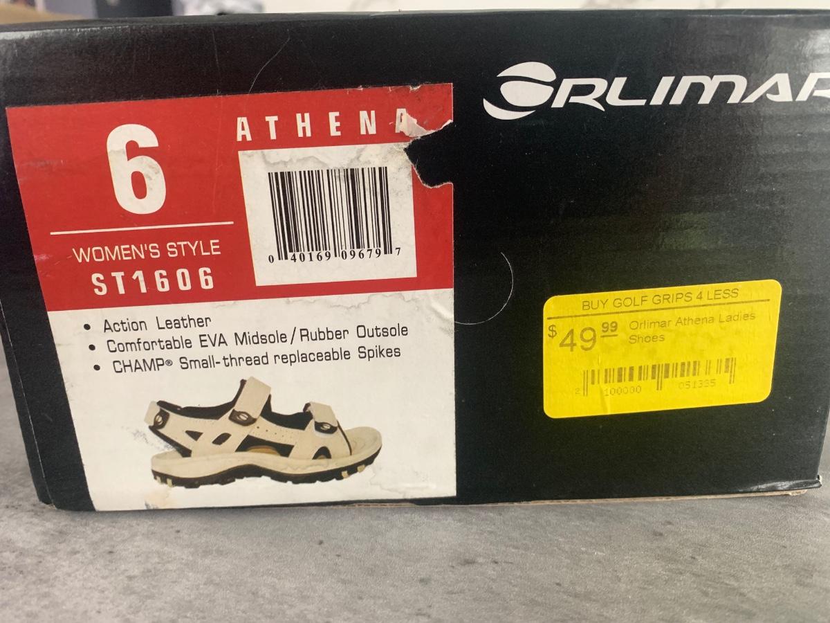 brand new pair of leather golf shoes from Orlimar, in original box - action Leather Molded Traction-Added Outsole and Water Resistant. Comfortable, EVA, midsole/rubber, outsoles, CHAMP small-threaded replaceable spikes.
