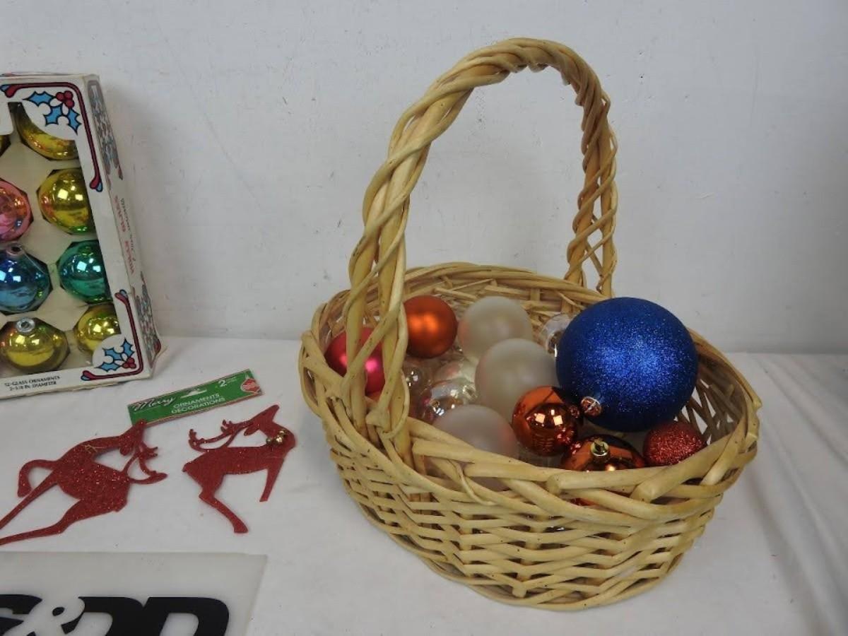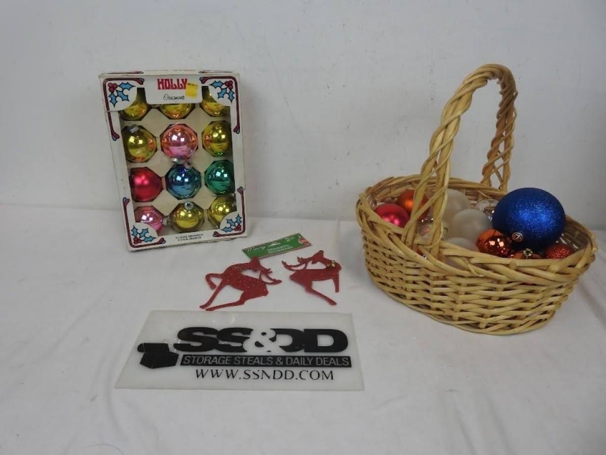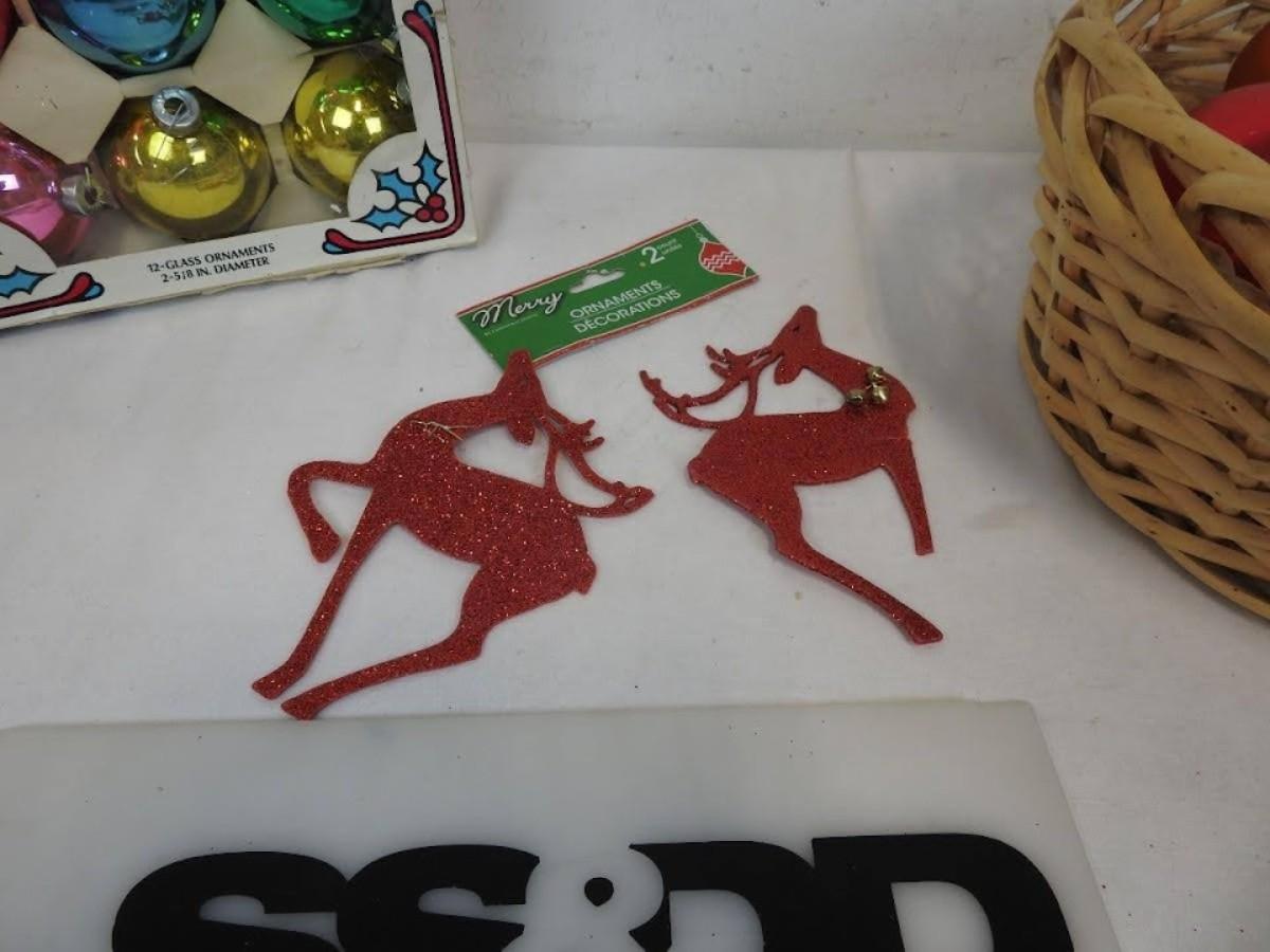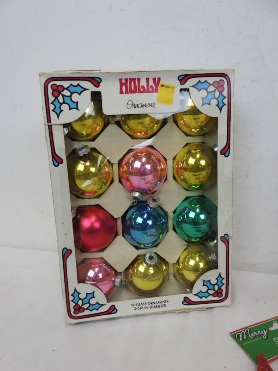 Ornament Lot: Holly Ornaments, Assorted Glass Ornament, Two Reindeers