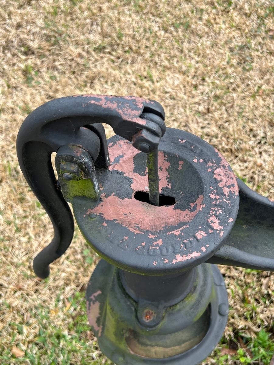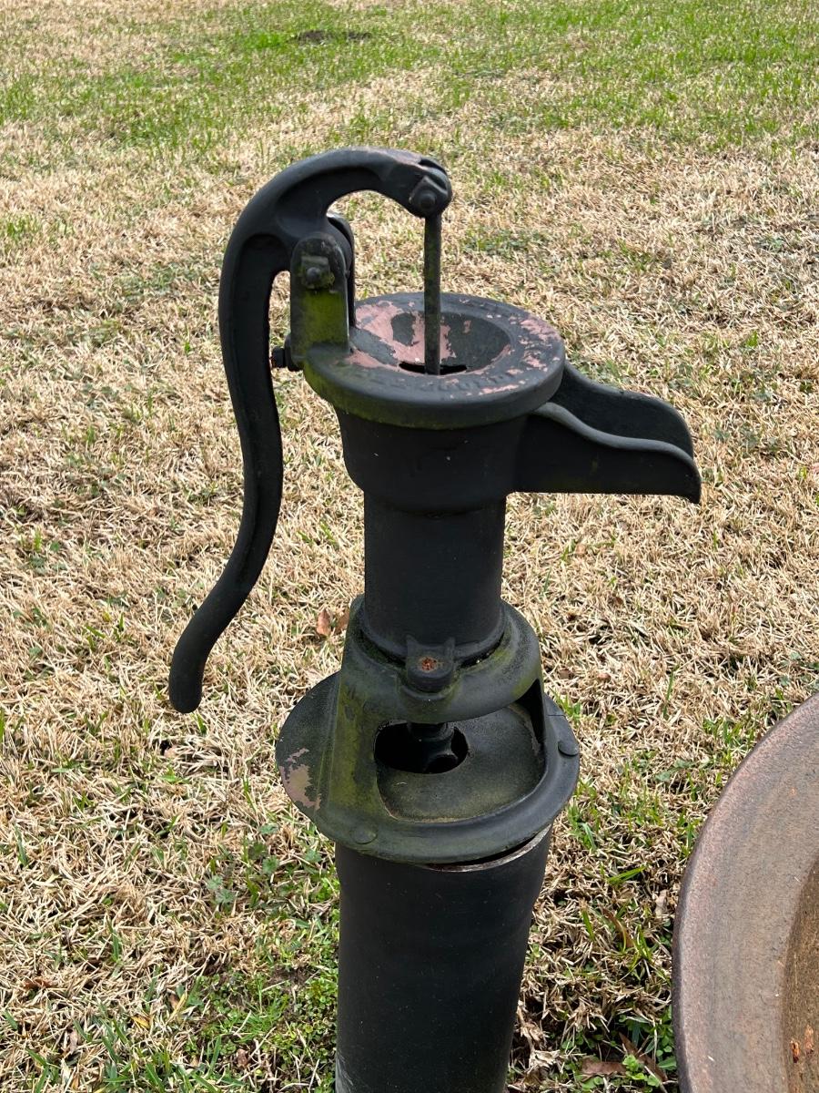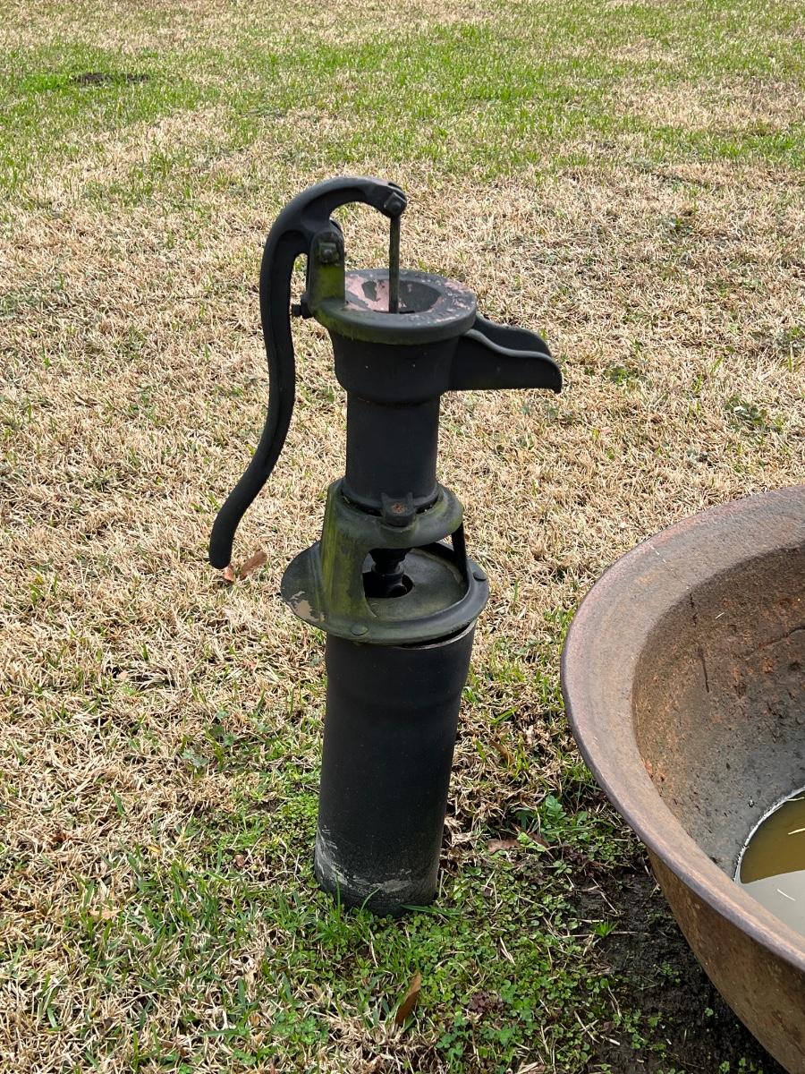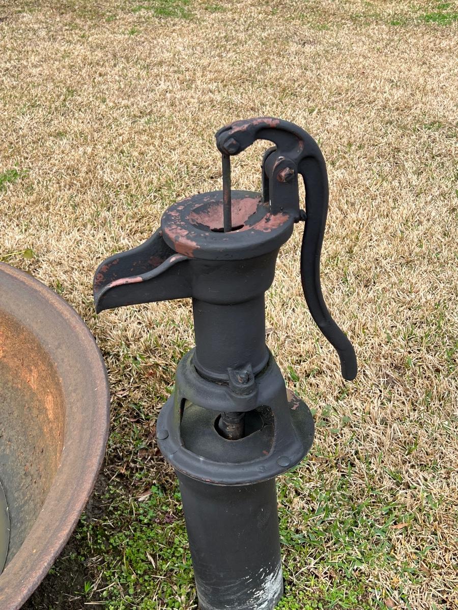 Non-working ~ used as a lawn ornament ~ The pvc pipe that’s hiding the bottom of the pump is yours to take ~ 19” H x 14” W x 9” D