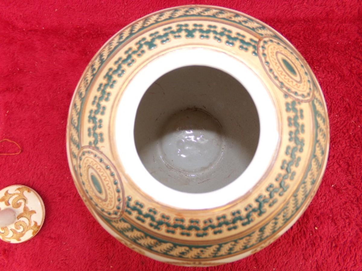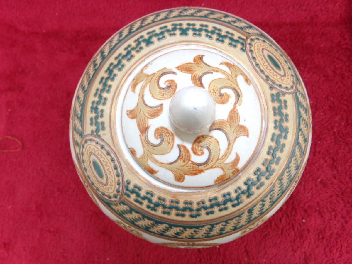 An ornamental urn w/lid. Middle Eastern appearance. For decorative use only. About 16-1/2" tall.
