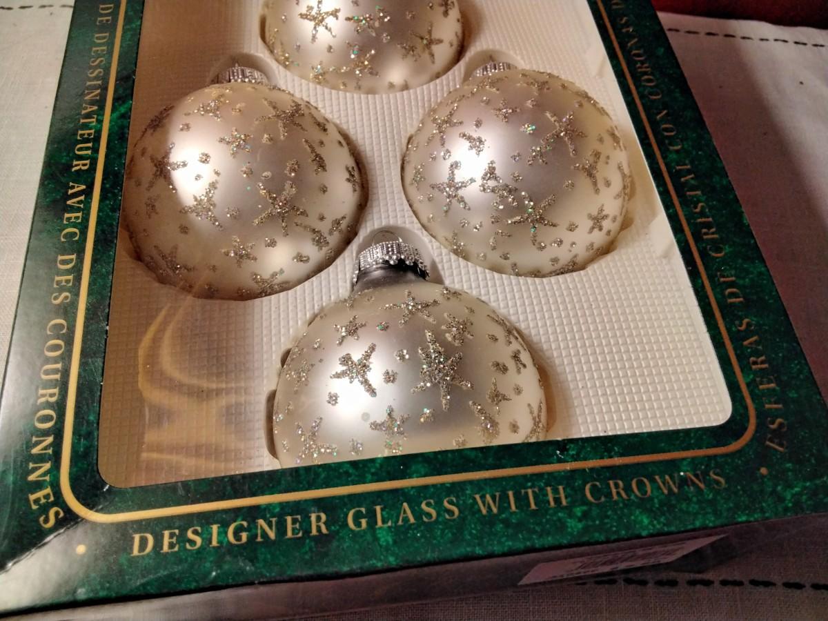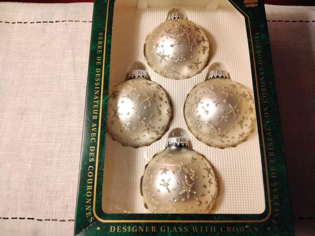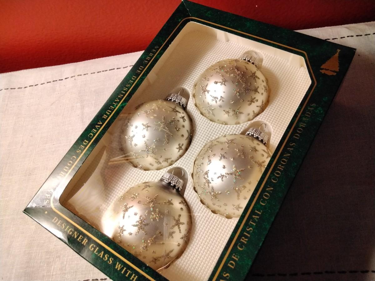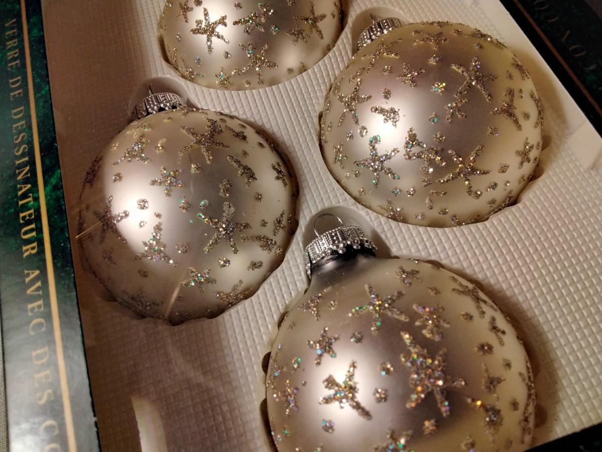 4 silver ornaments that are new in box. They were bought at Toys R Us.