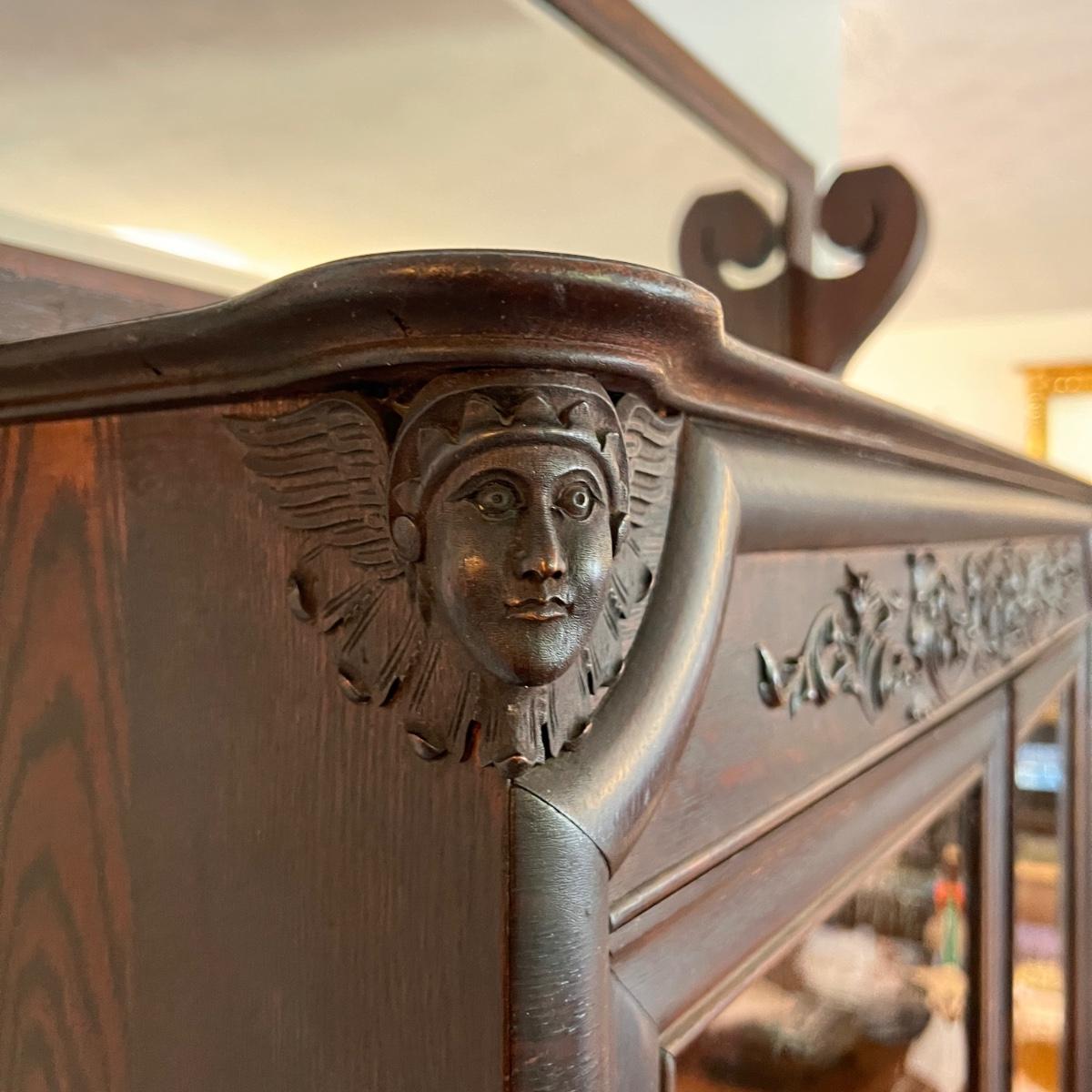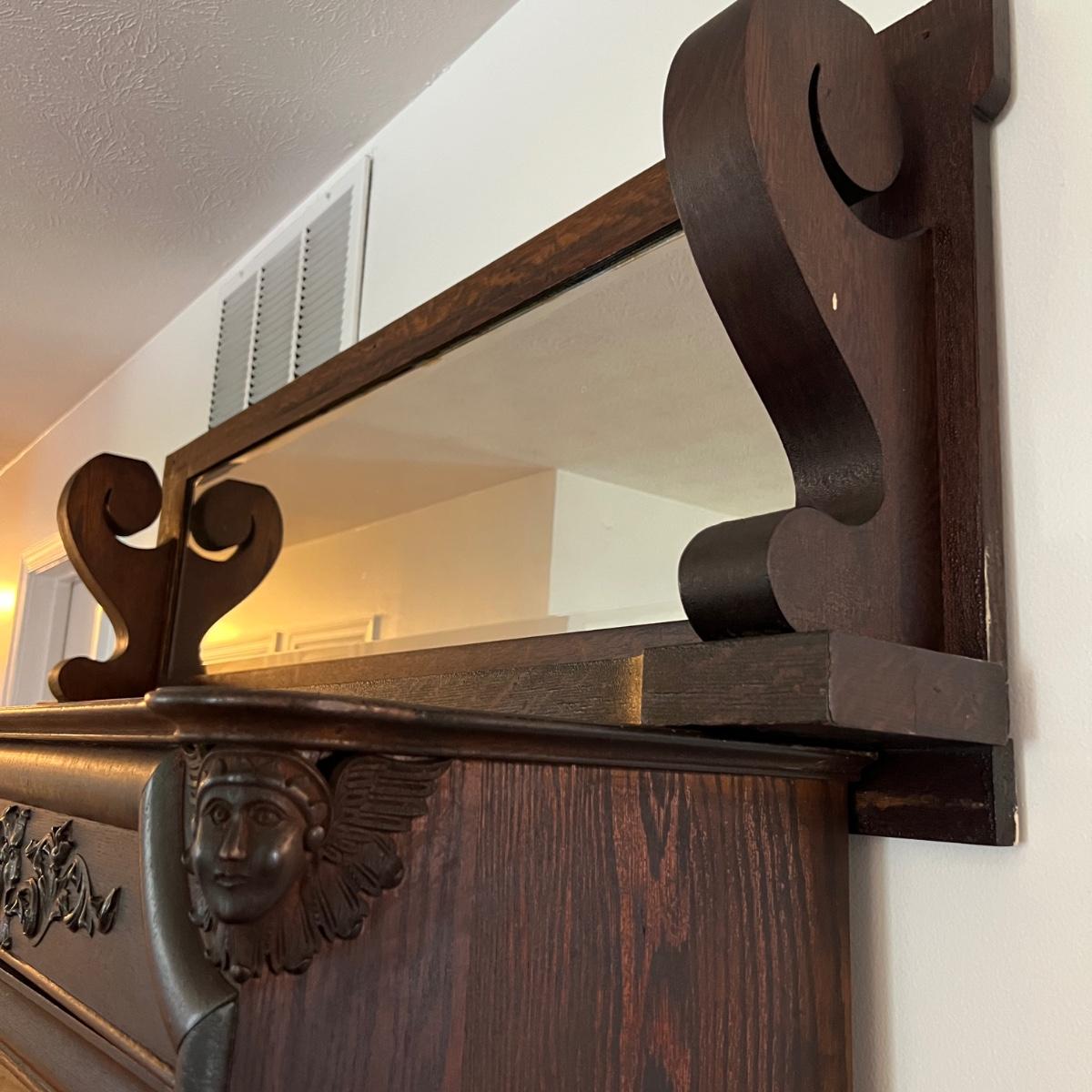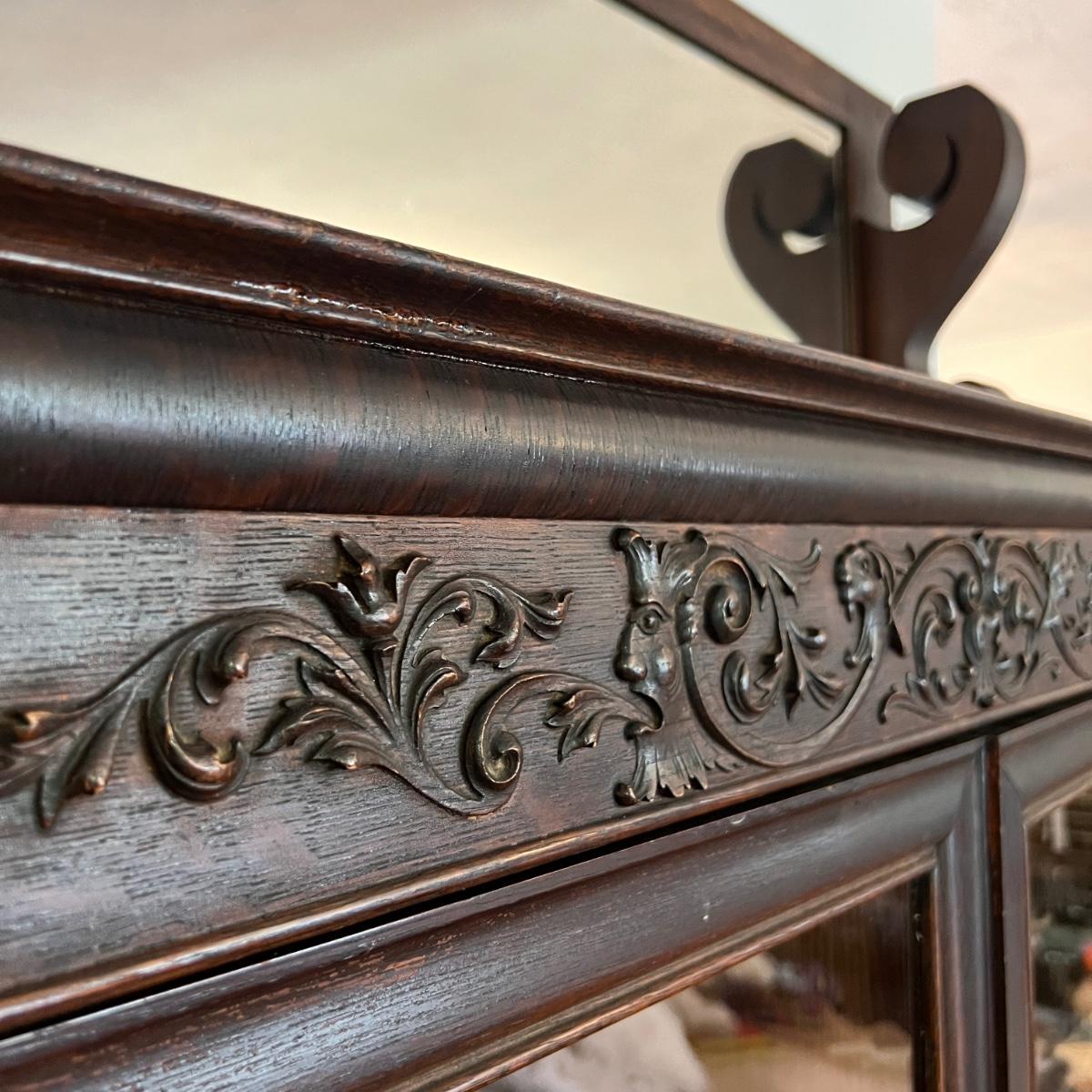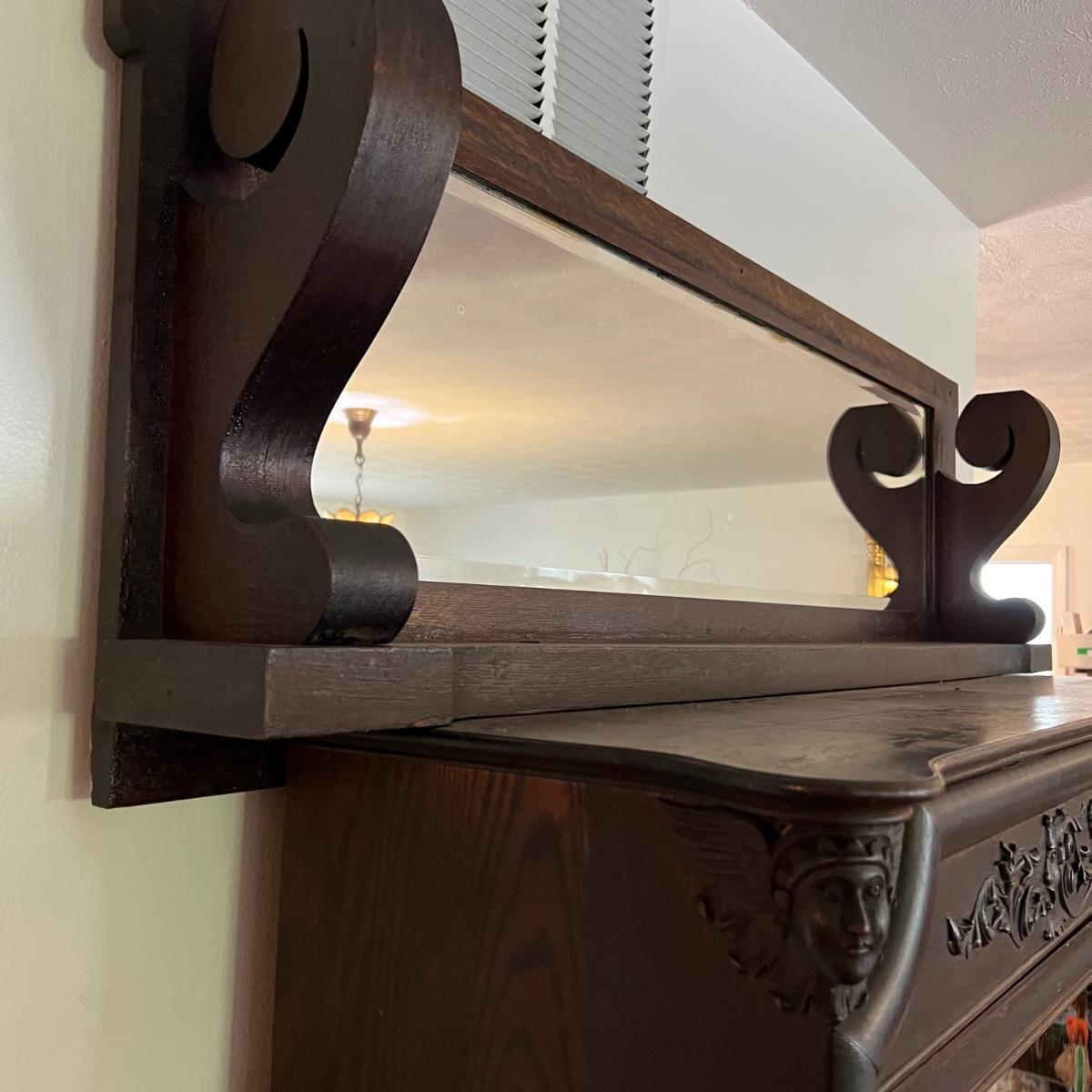 Antique Ornate Carved Wood Cabinet w Mirror Mantle
