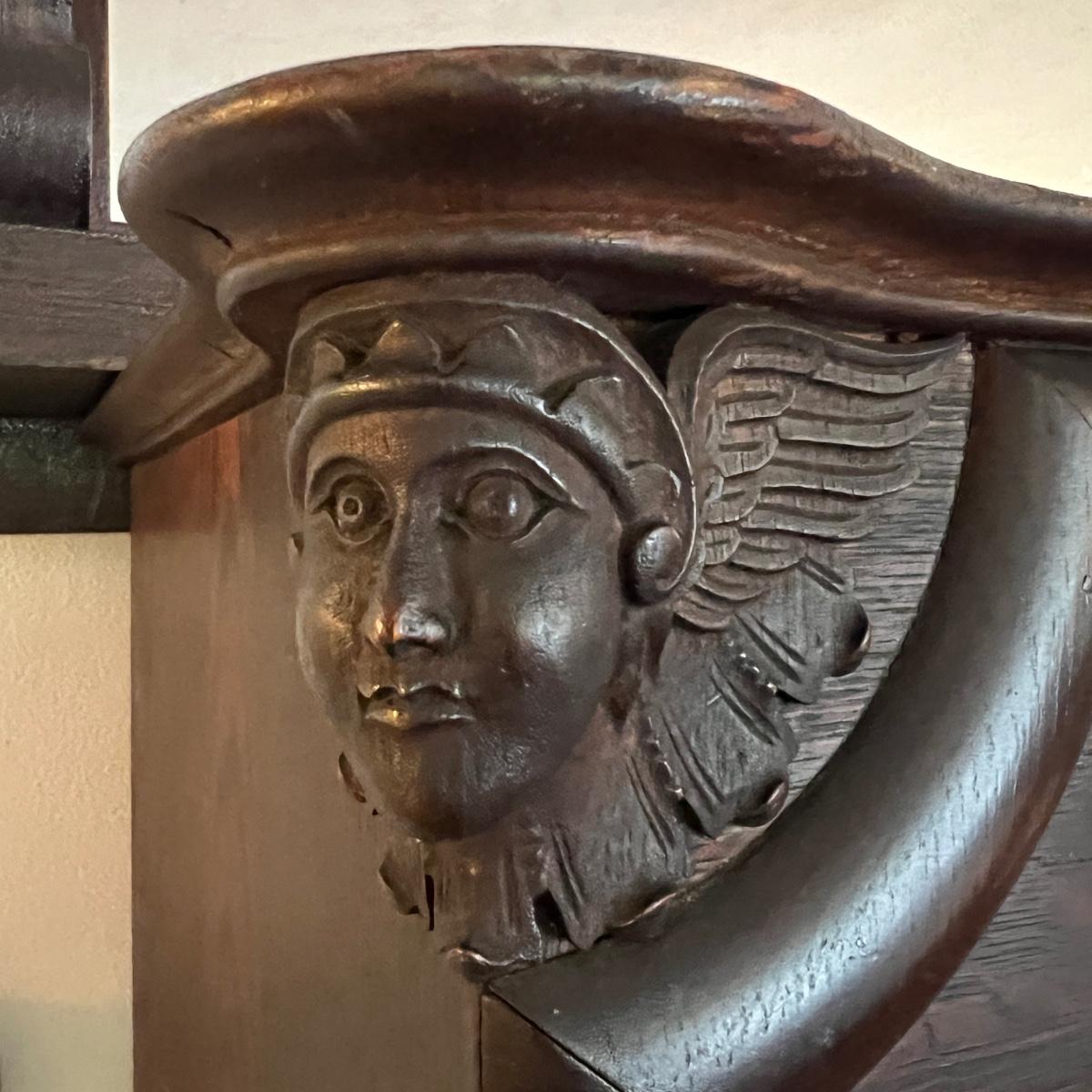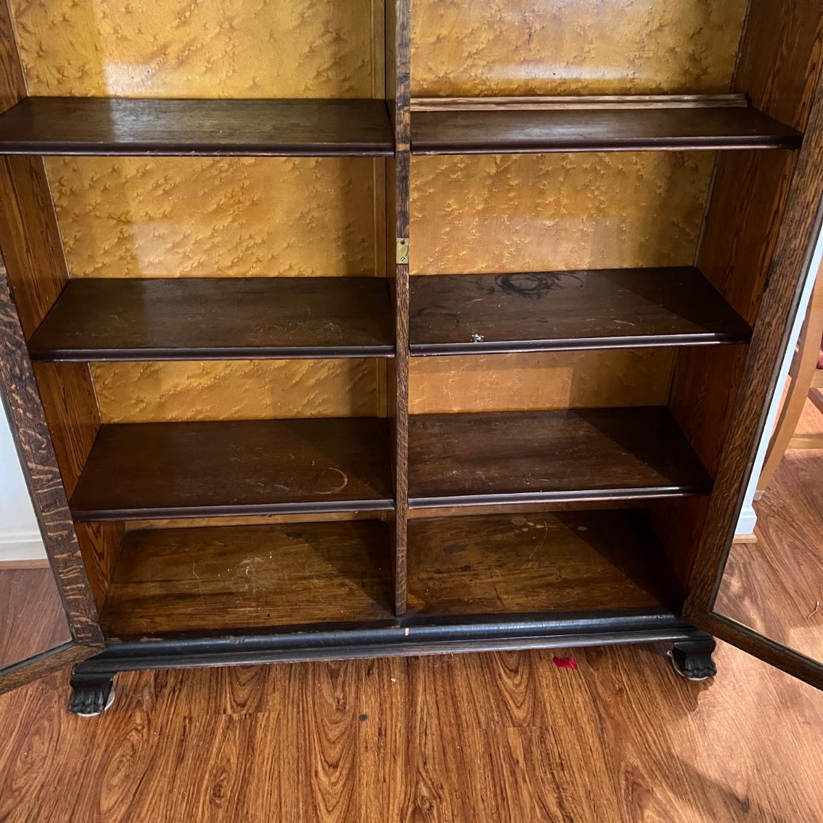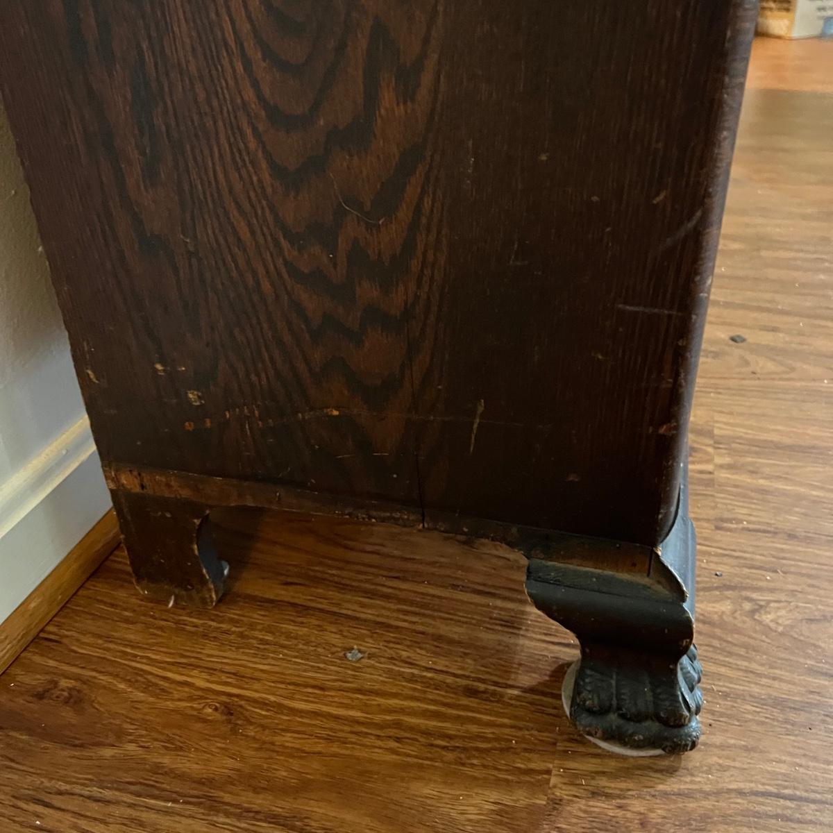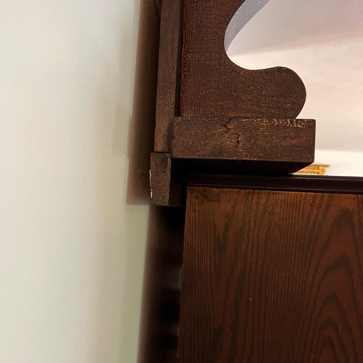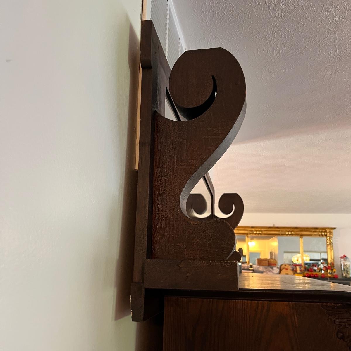 Antique Ornate Carved Wood Cabinet w Mirror Mantle