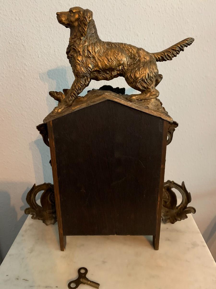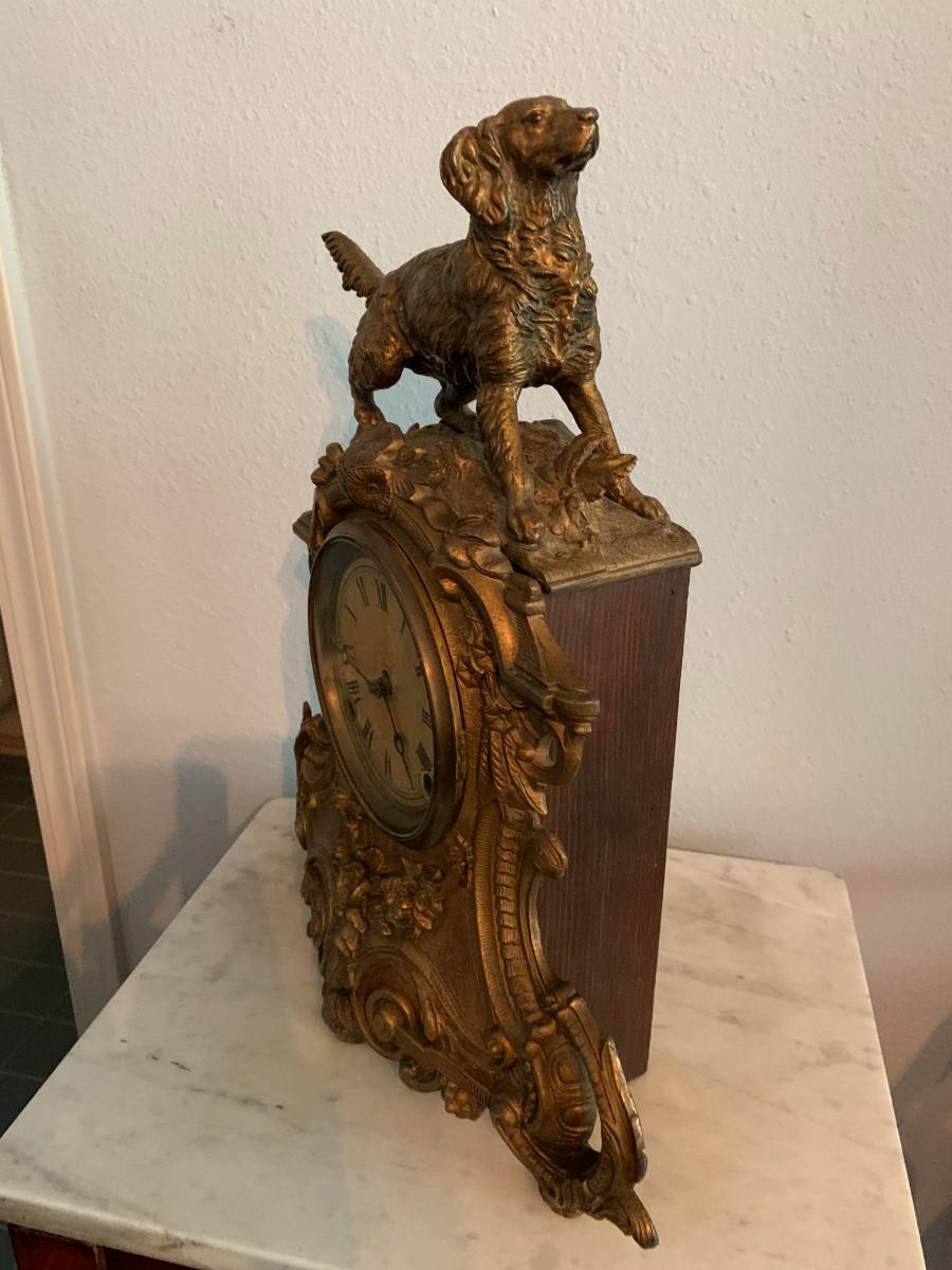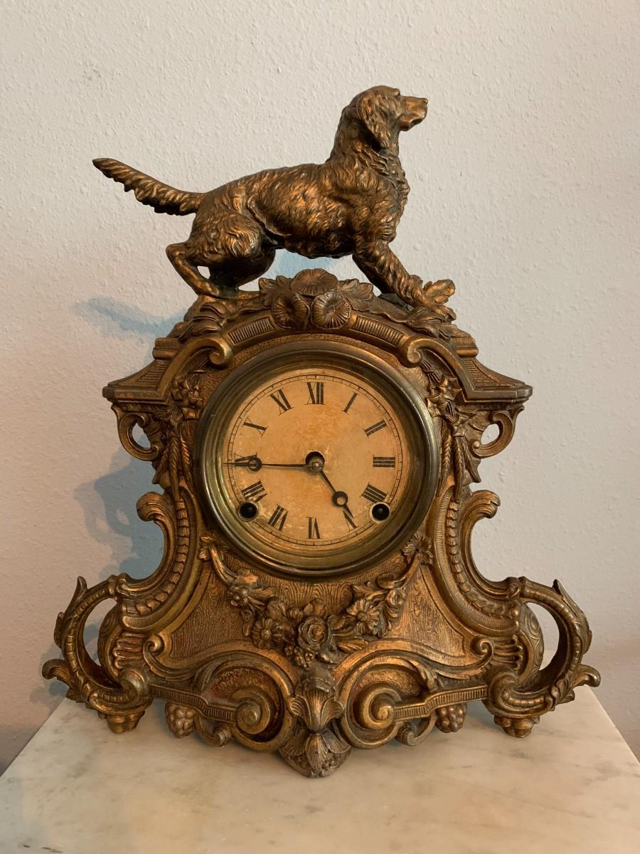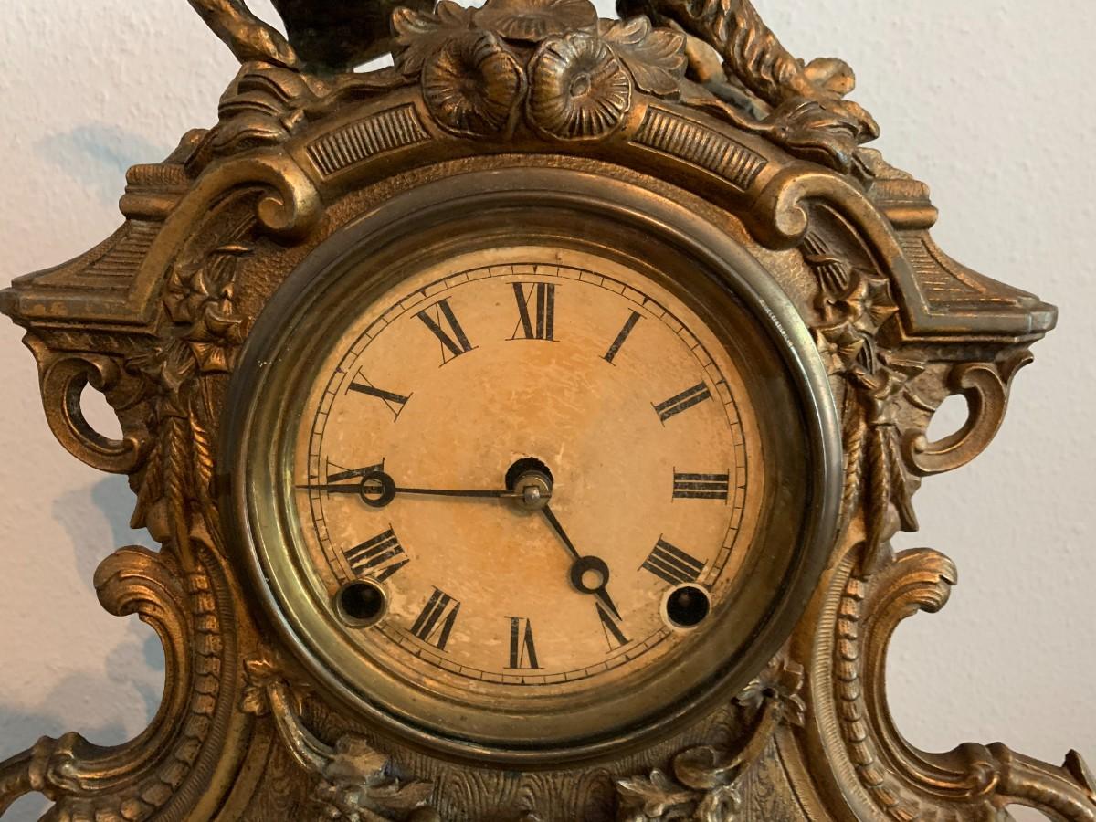 Wow! What a great find! And somewhat rare! This gorgeous ornate brass parlor clock is still ticking! What a wonderful asset to bring to the fireplace mantle or the shelf in the gentleman's quarters of the hunting lodge. Late 19th or early 20th century.