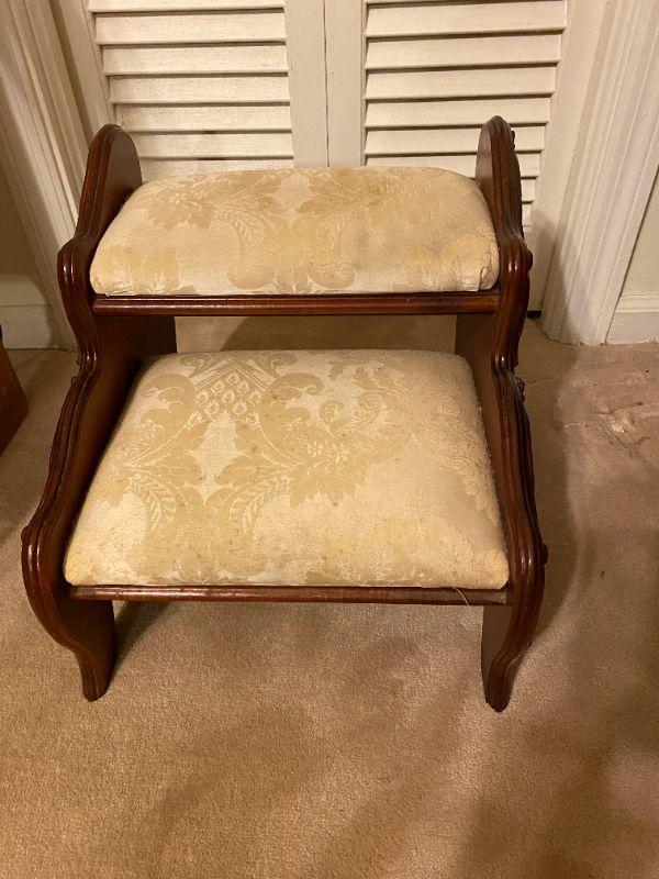 Ornate Bed Steps upholstery is dirty 13.5x16