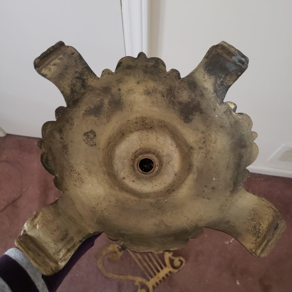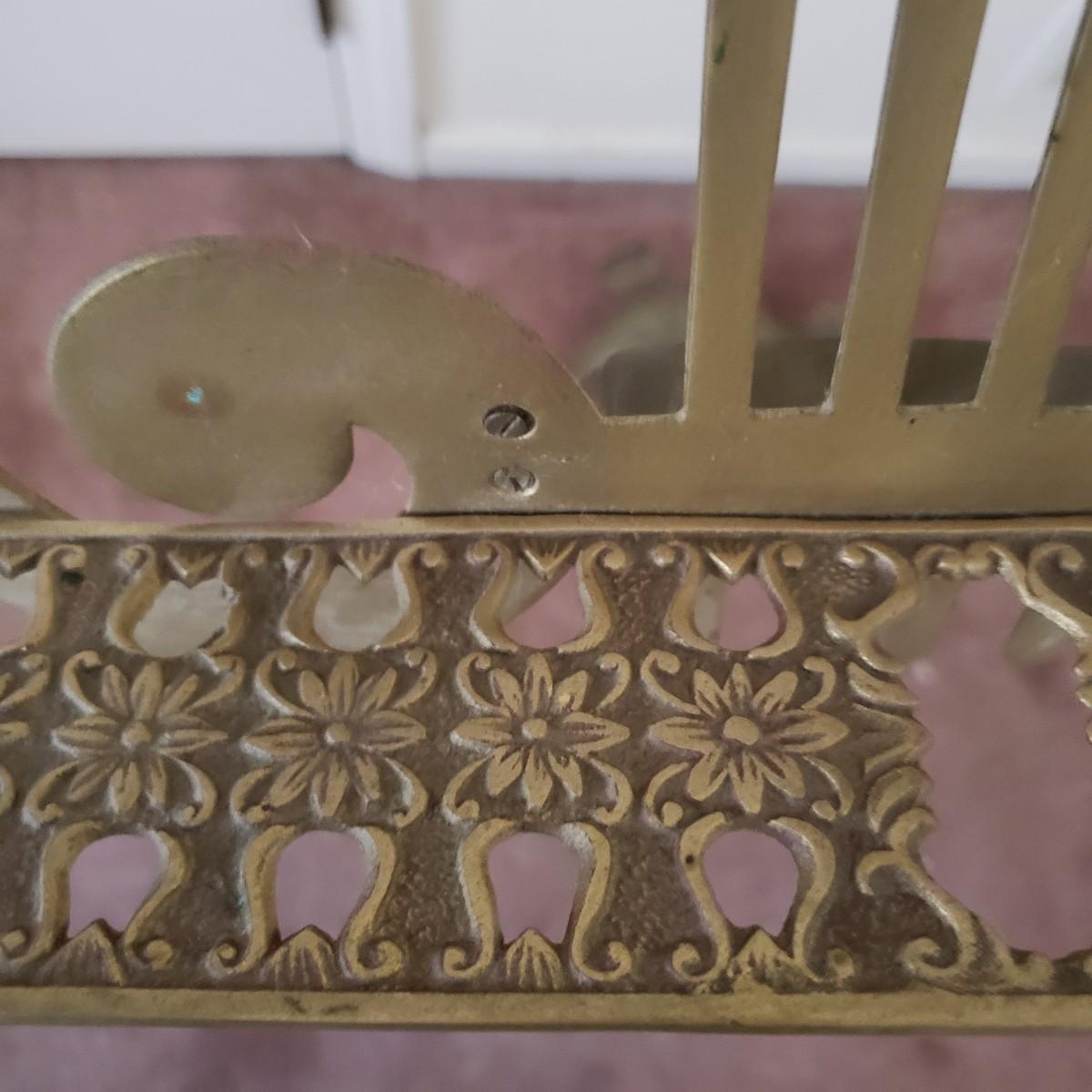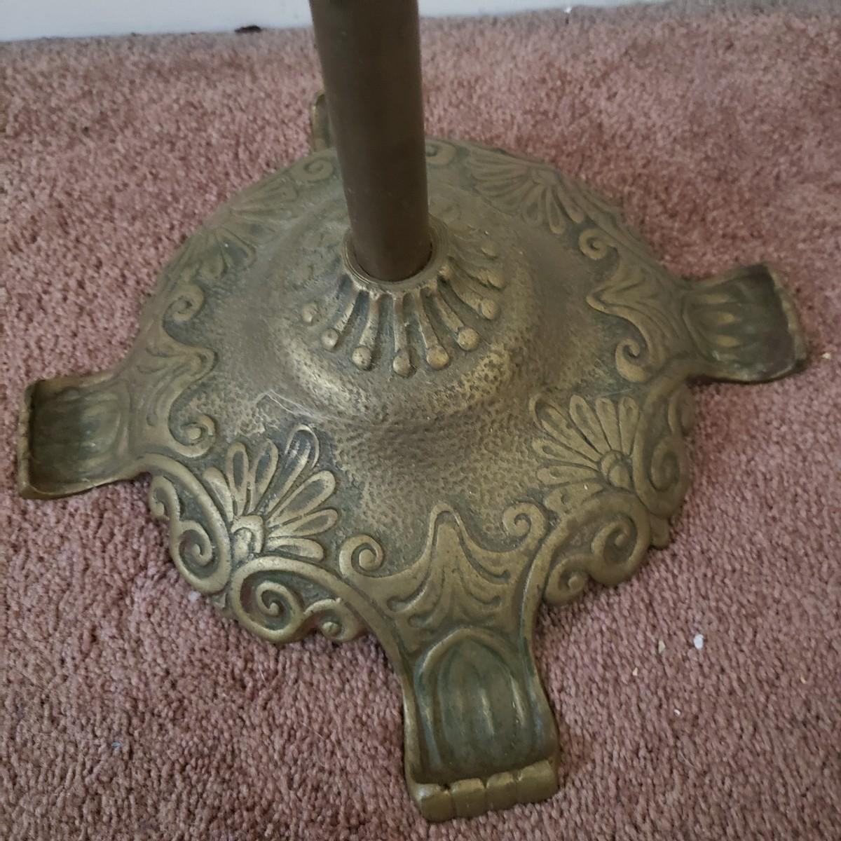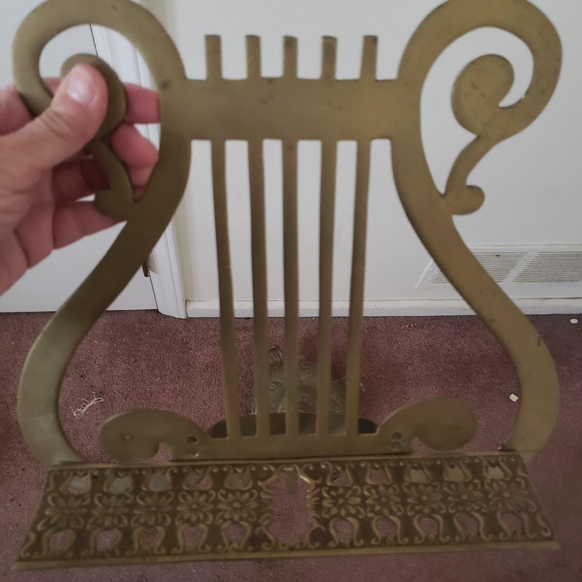 This brass music stand (12" x 13" x 42"H) features ornate craftmanship on the base and ledge for holding music sheets. The stand is adjustable and can reach 55"H and the lowest is 42"H.