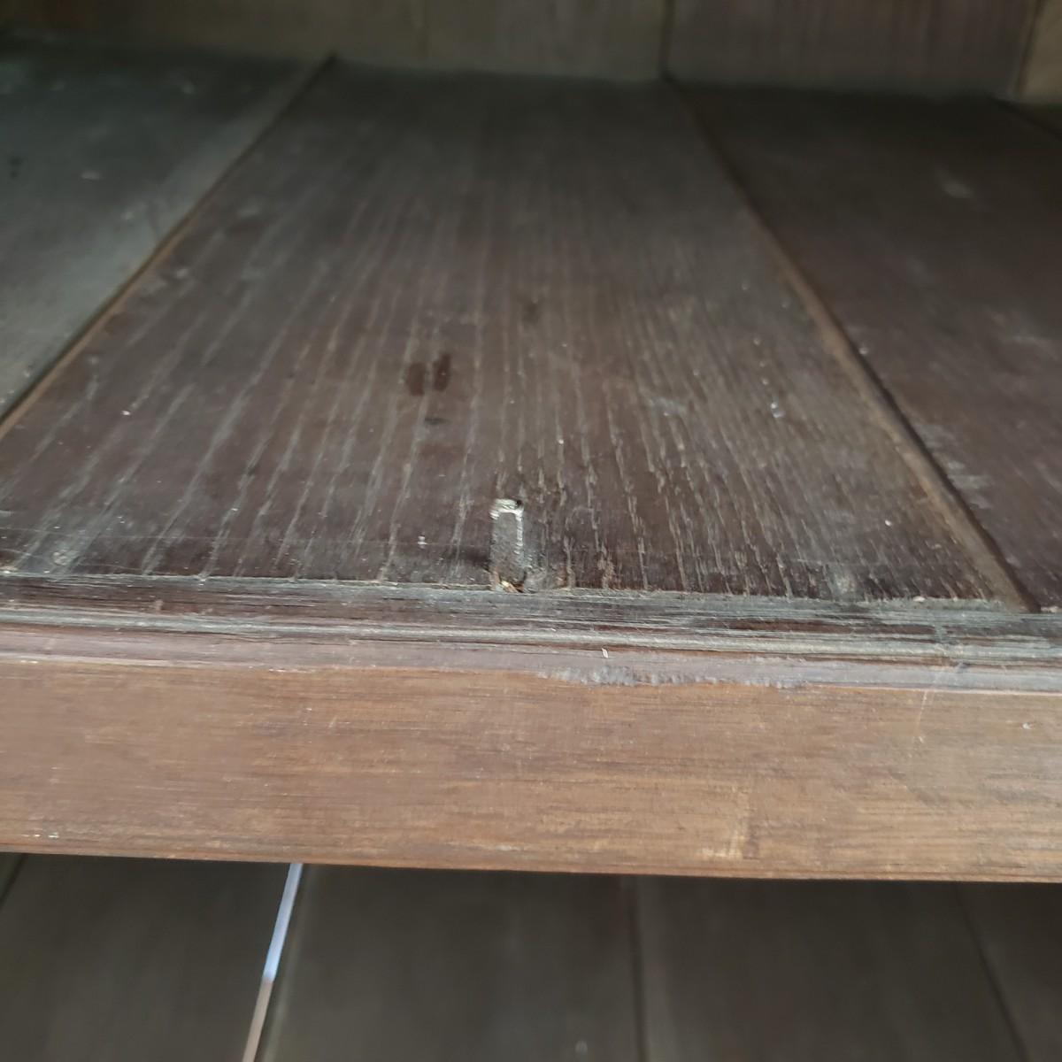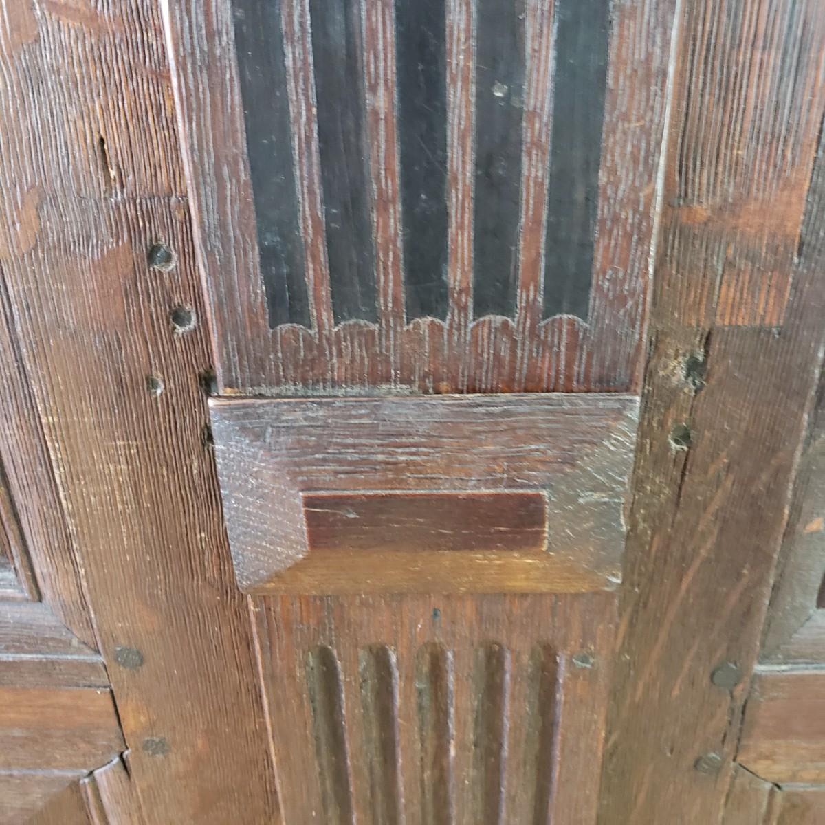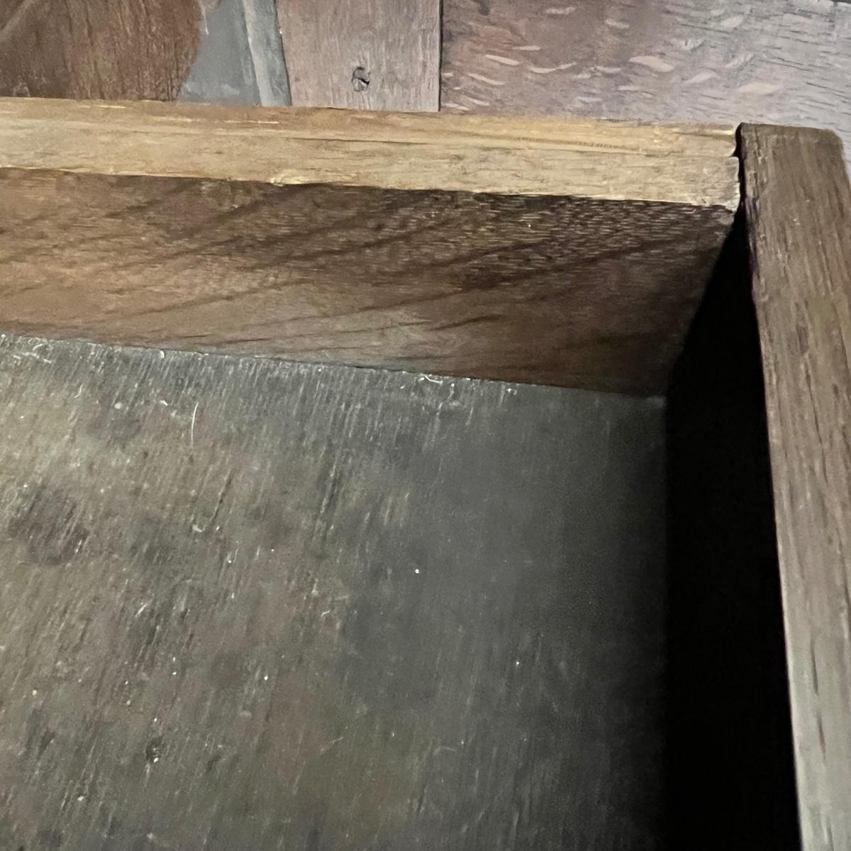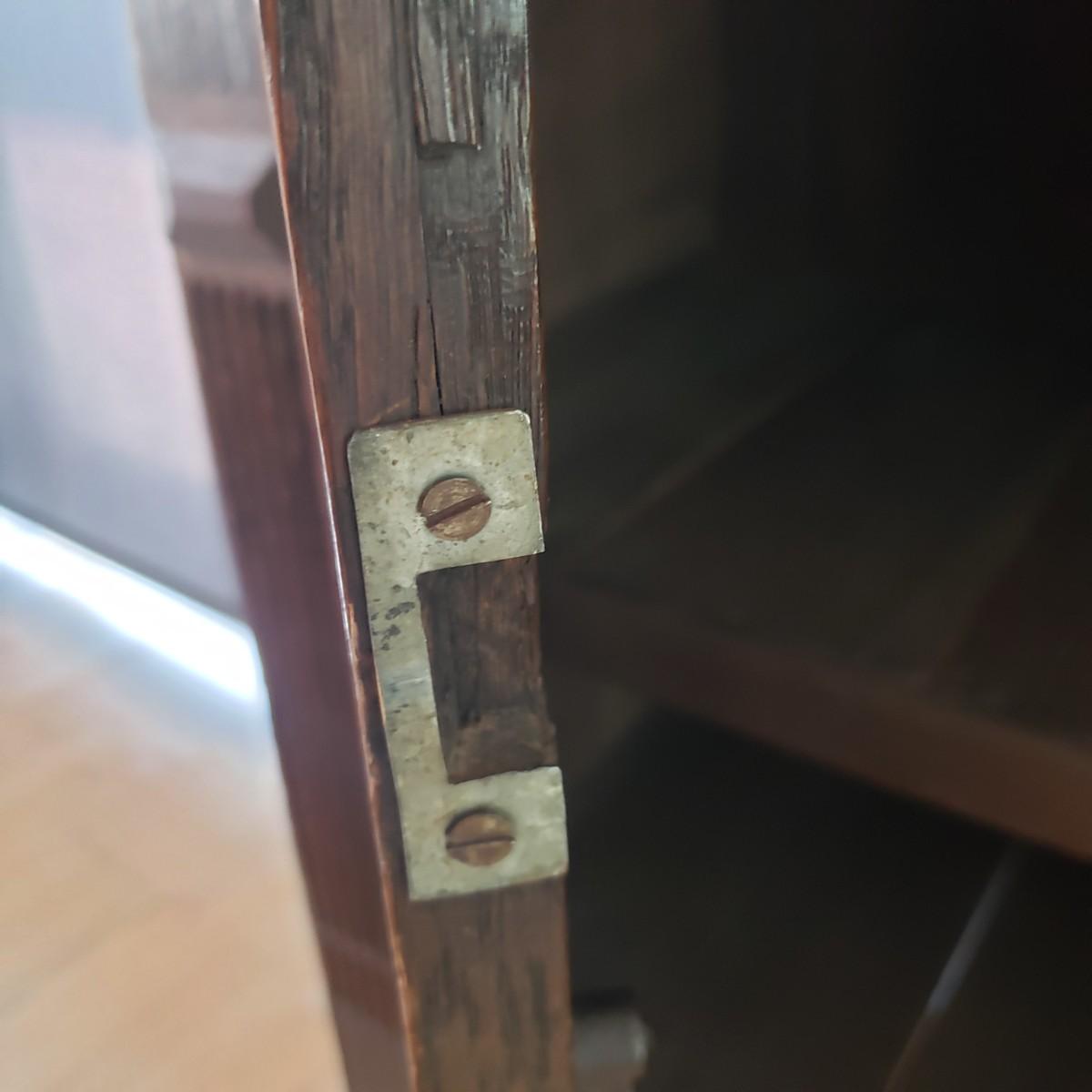 This fine crafted cabinet measures 41" x 22" x 70"H. The doors each have locking mechanism on them. note photographs of joint in drawer. Square ornament above doors is wood. There is no key. There is a drawer inside that measures 22" x 3". The latch with the hidden keyhole once closed is hard to open, take note when closing it.