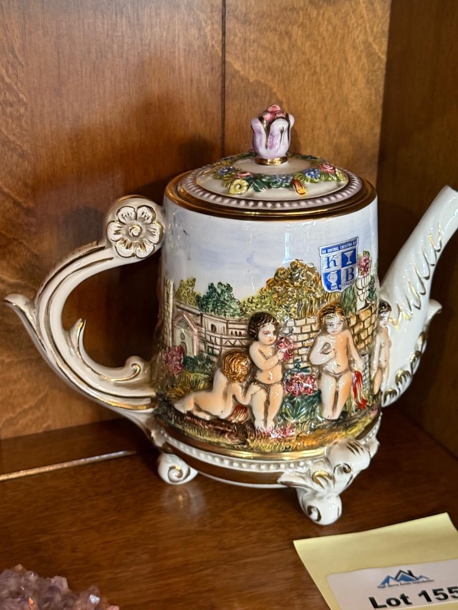 Ornate ceramic Teapot KB Capodimonte made