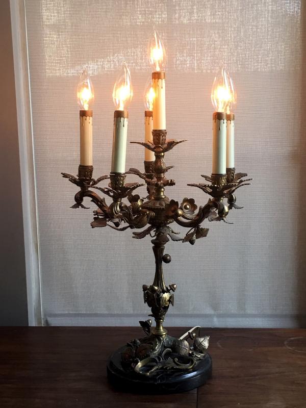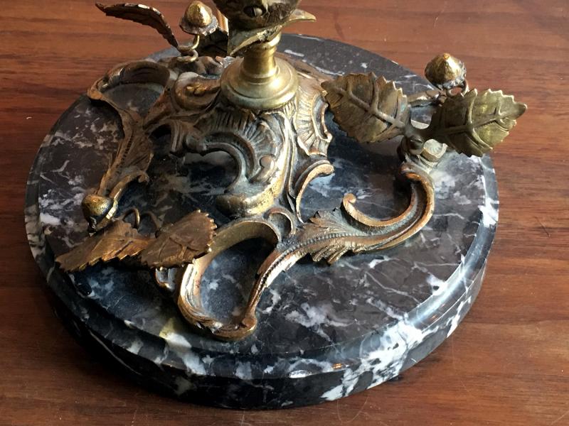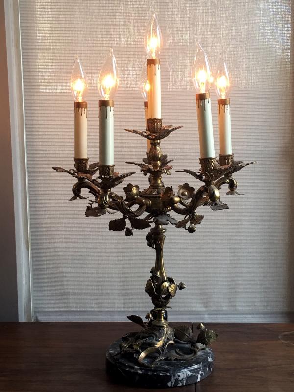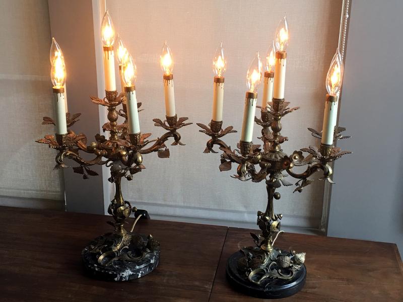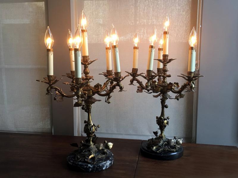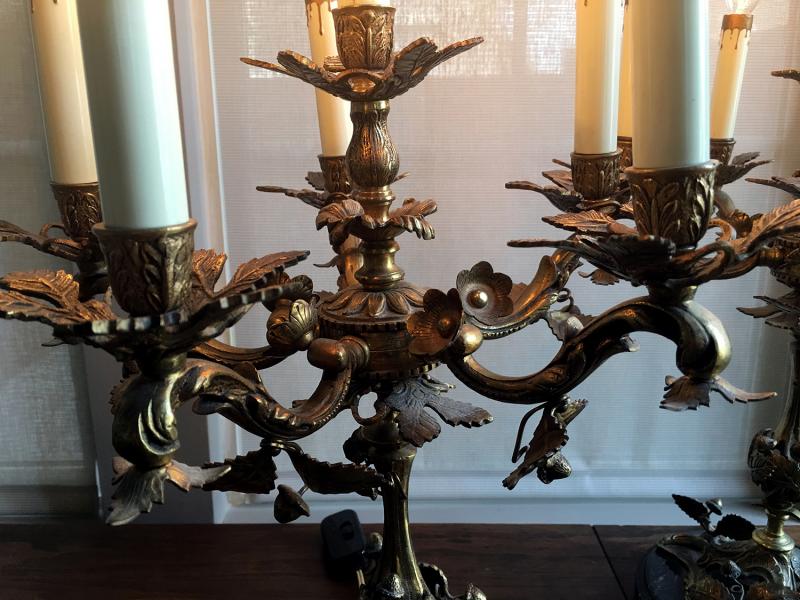 Ornate French Victorian Bronze Candelabra Set of 2 with Solid Marble base and Electric Light Dimmer Switch