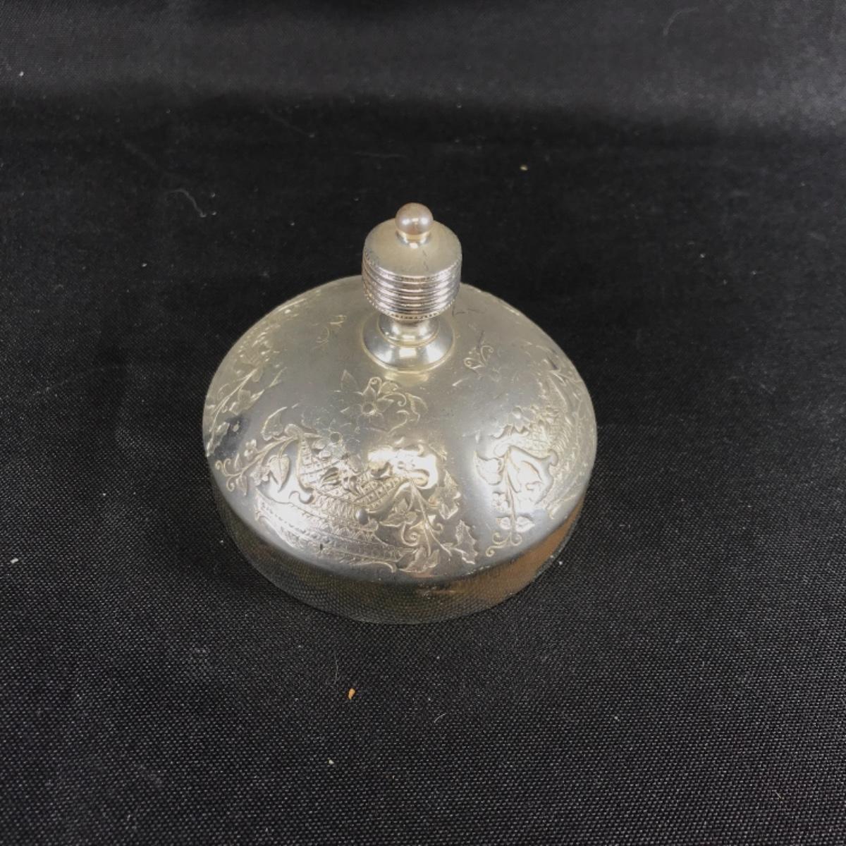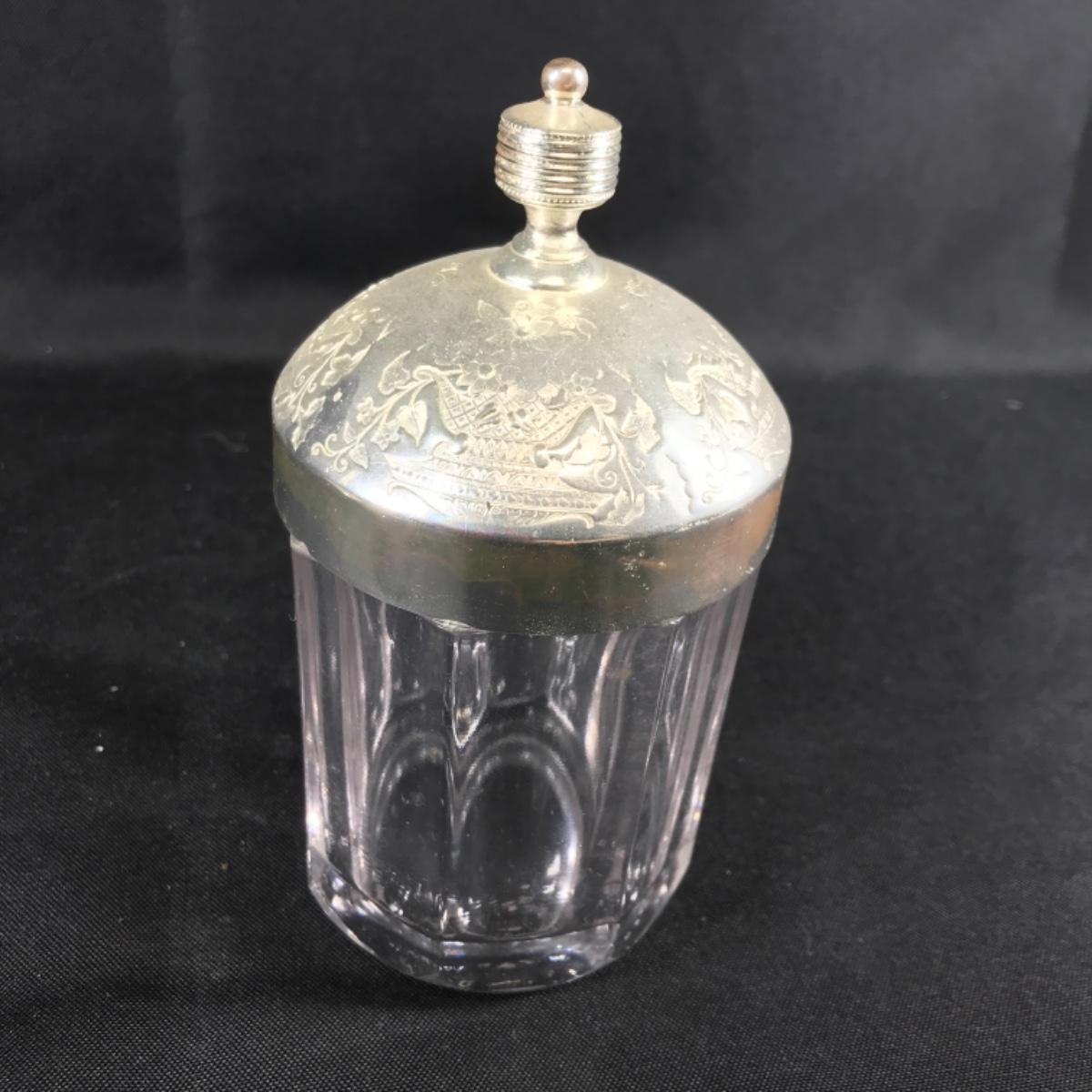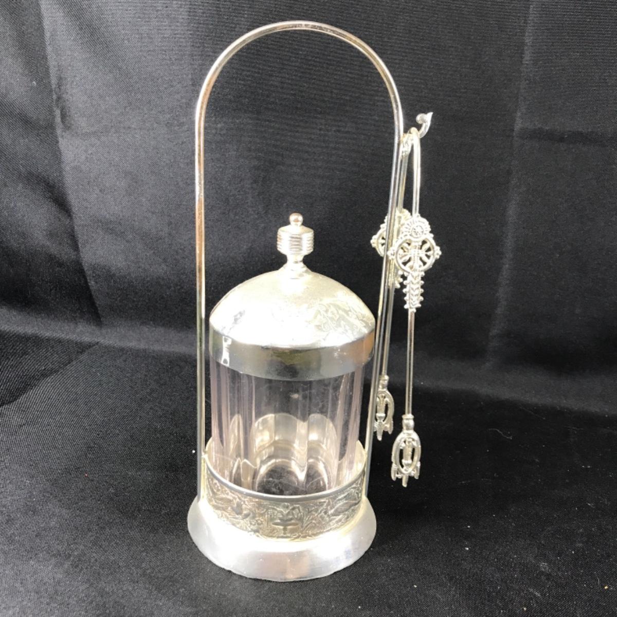 Ornate Glass/Metal Pickle Caster Olive Caddy w. Tongs & Lid